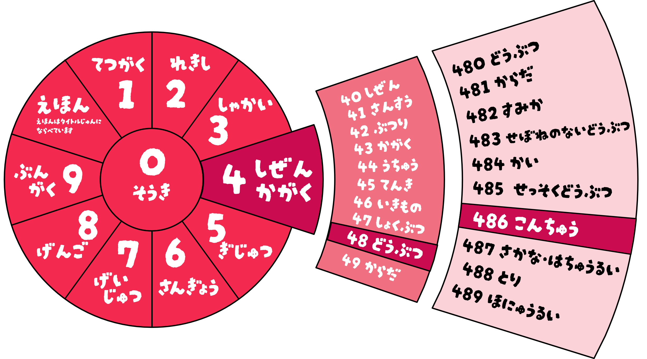本のないようをこまかくわけて3ケタのばんごうにするよ