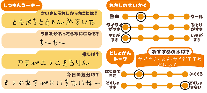 「なんかおもしろいことないかな~」「学校にいきたくないな…」「どこかあそびにいきたいな☆」「いまはなにもかんがえたくない…」