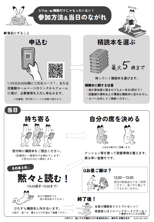 持ち物:積読本(他の参加者に読まれてもよい本。5冊まで。書店のカバーは外してご持参下さい)