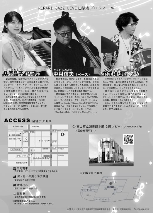 出 演:桑原晶子さん(ピアノ)、中村信夫さん(ベース)、中井和也さん(ドラム)