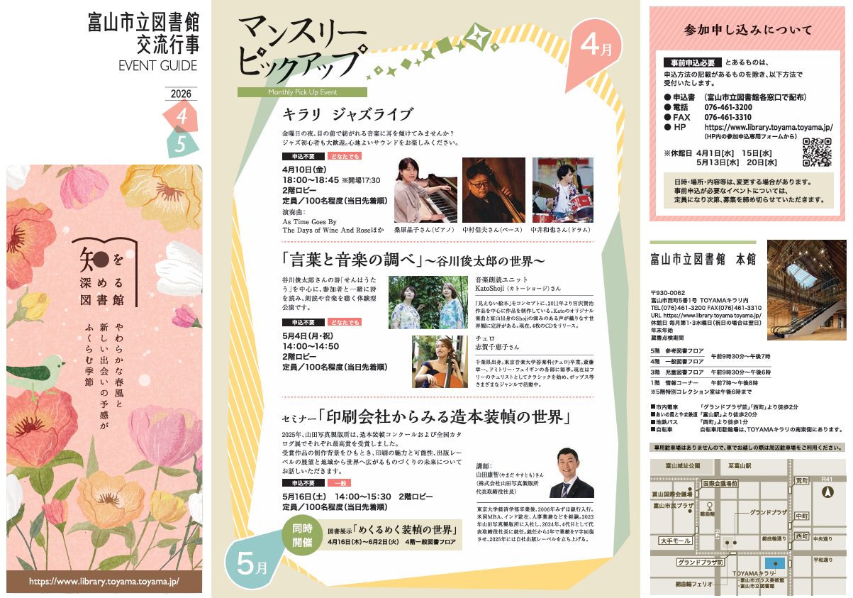 本館で開催する行事をおもに載せています📝 ※紙版は市立図書館全館の窓口で順次配布しています👀