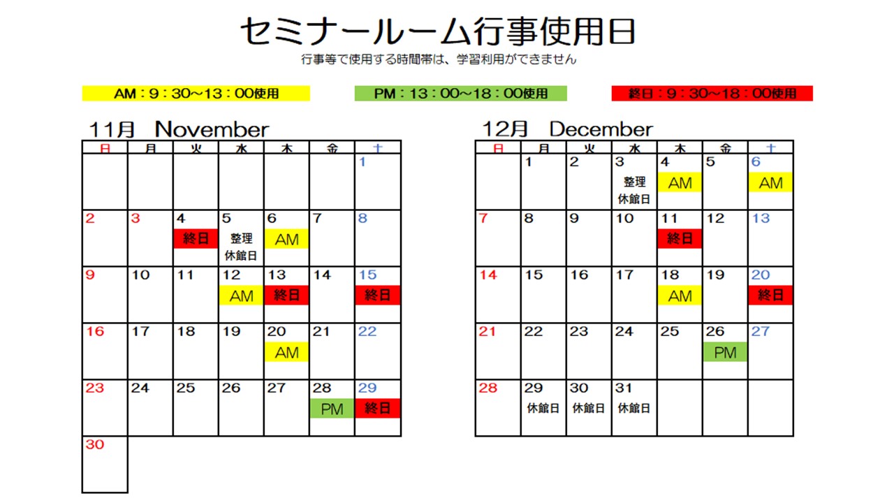 【変更】本館セミナールーム学習可能日✎