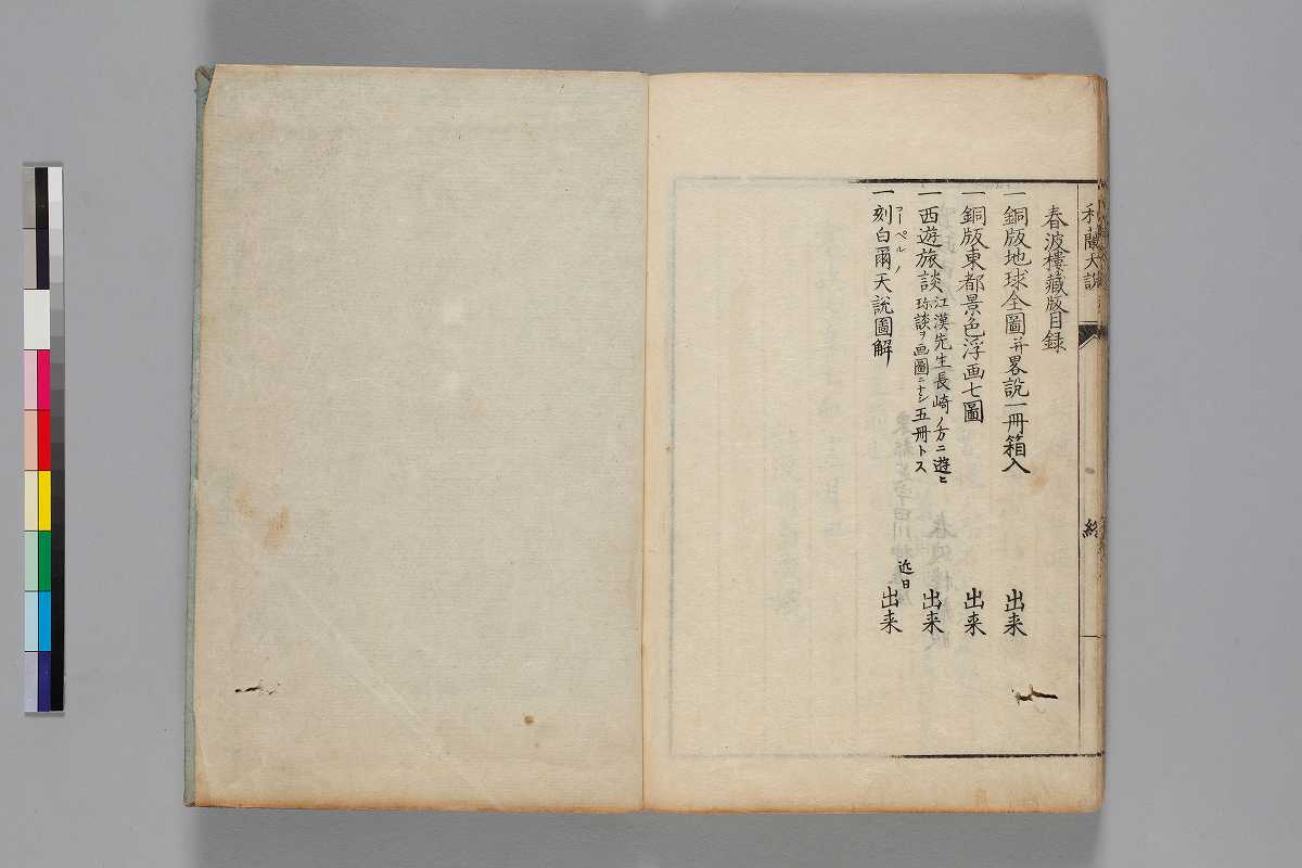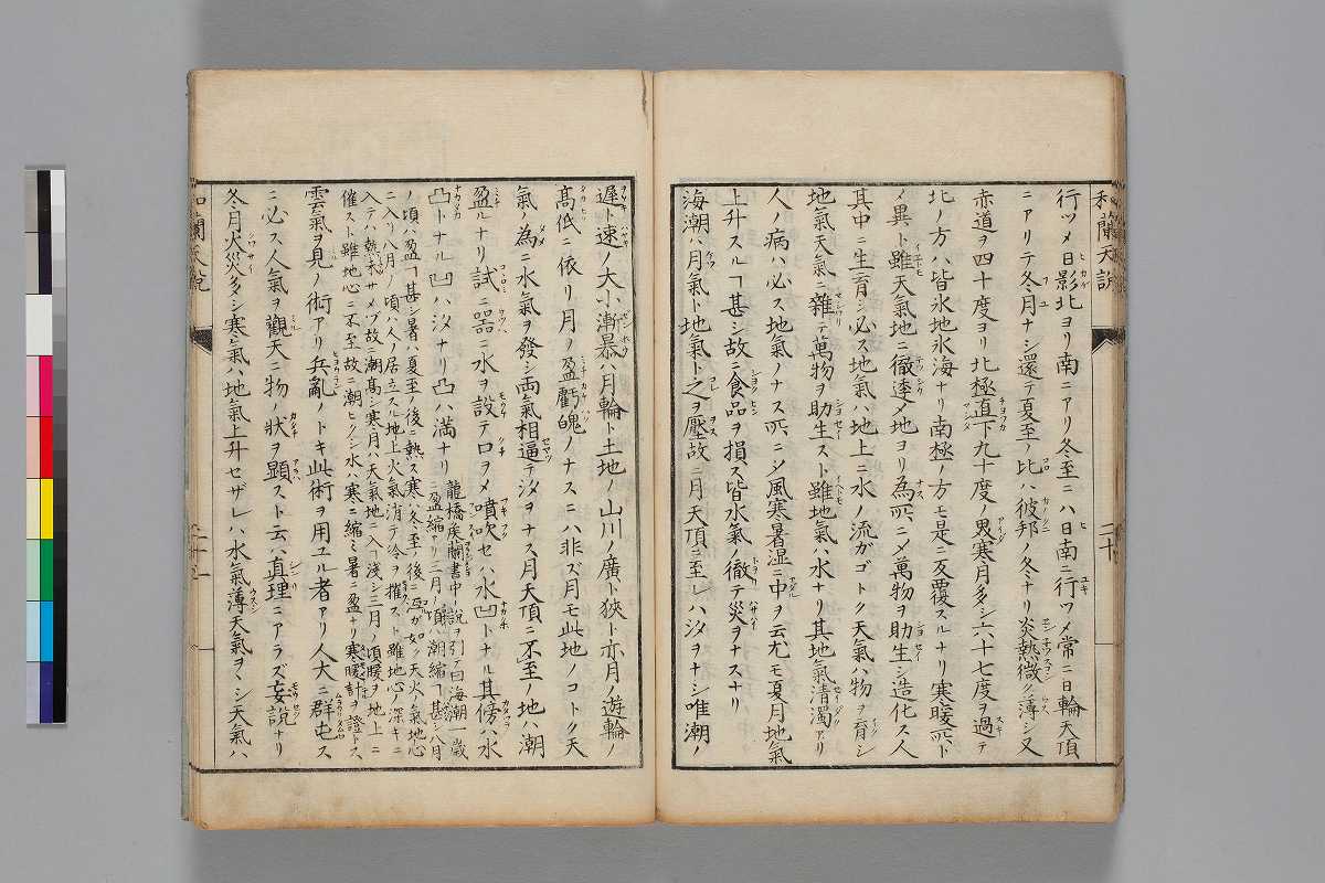 序:「寛政乙卯十二月太田叔龜識」自跋:「寛政七年乙卯十二月日/江漢司馬峻識」奥附:「寛政丙辰正月上旬/東都芝宇田川神僊座/春波樓藏版」