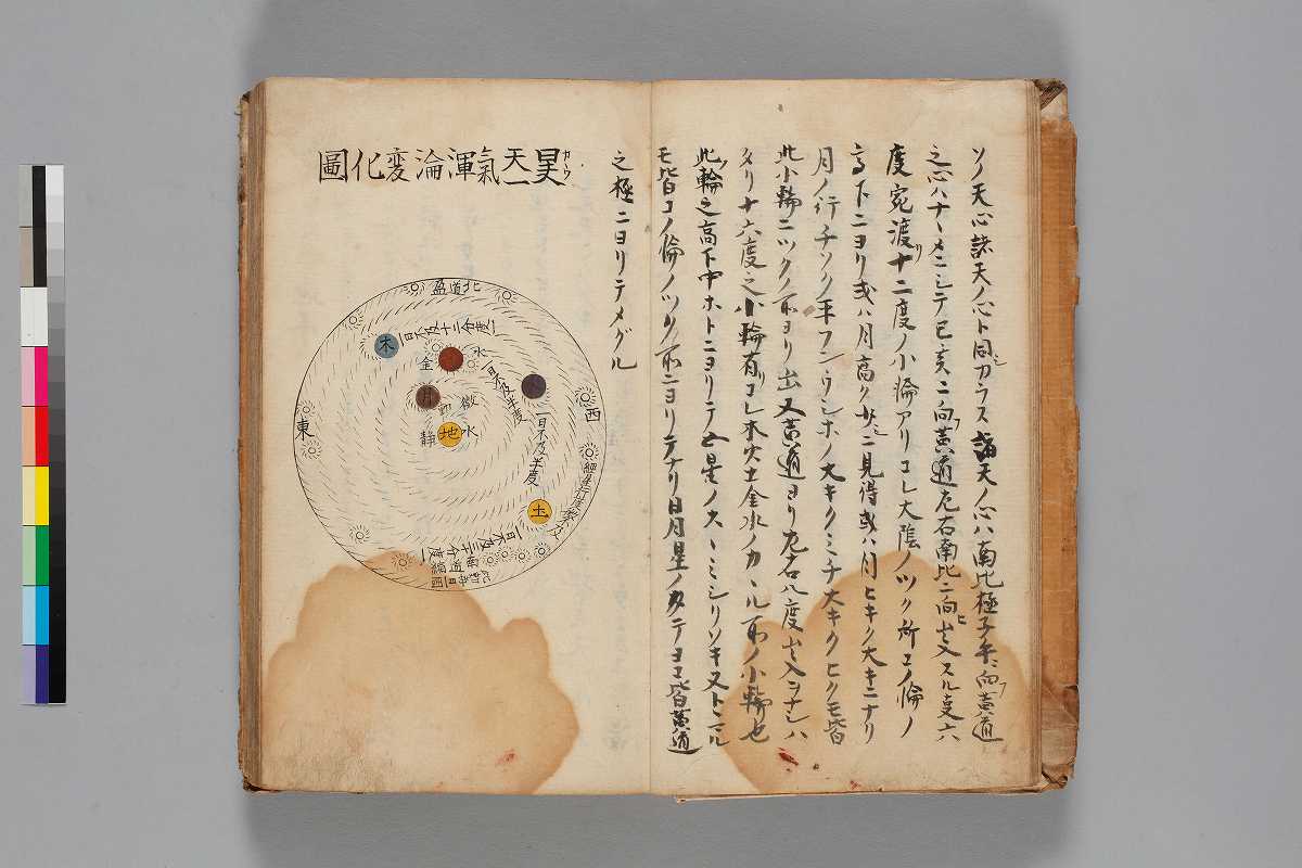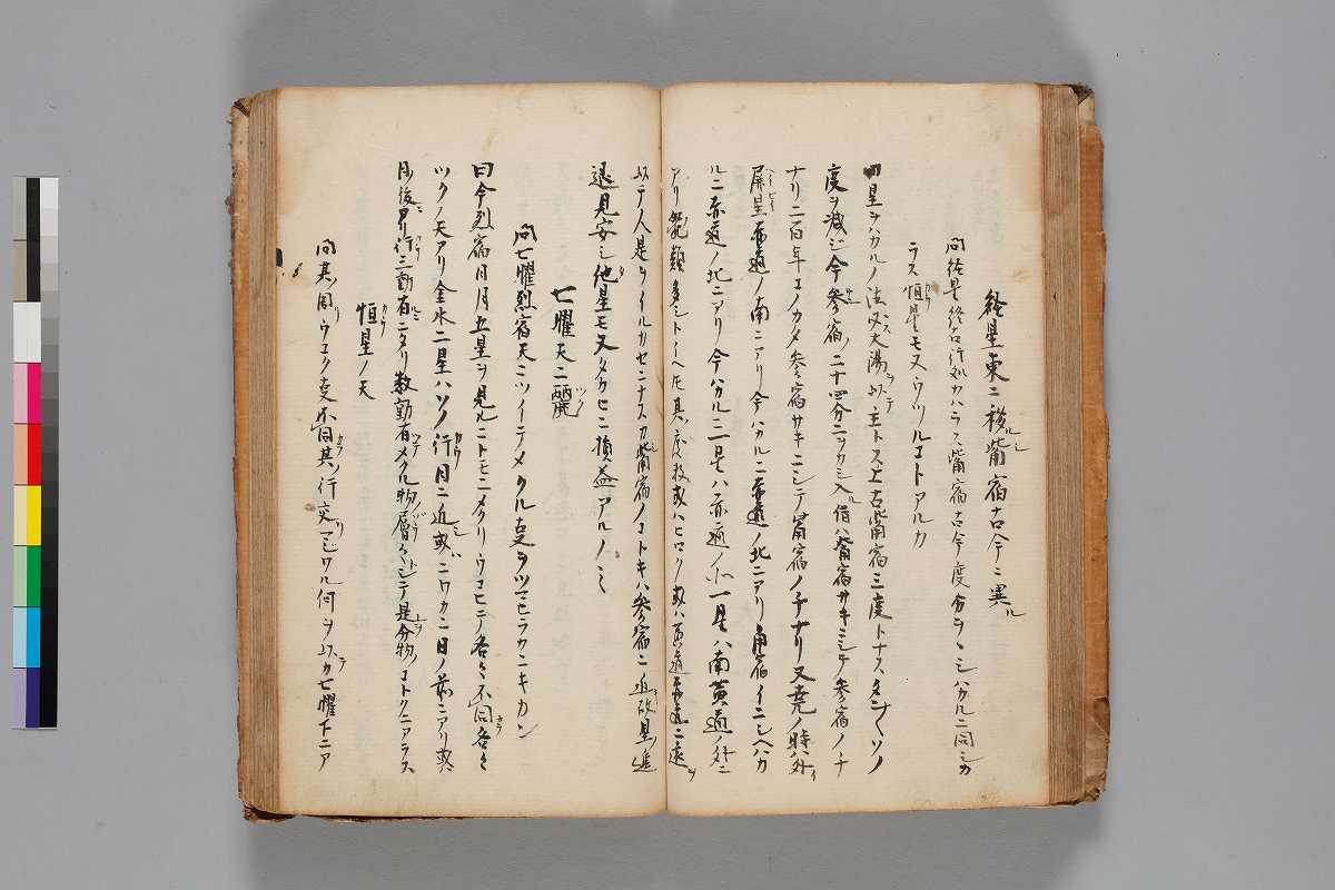 - 序:「正徳四年甲午暮春上皖蜂屋可敬序」「天文秘抄一冊者葛西重方自書以所傳賢子重舊也〔中略〕/正徳(乙/未)之暮春初五日/遊佐藤好生」奥書:「父重矩/正徳四年正月日/葛西久三郎殿/御本書通奉拜写者也〔以上本奥書〕/この御書は松音院様御直筆の書し/たまひ数年無御他見もたせ給に/寛保三年六月六日大友理丹と拙者被/召出此御書御傳授なしおかれて/ばつそんのために写しとるへきよし/蒙御免奉拝写ものなり於末孫に愚学/のともからよむことを得すといふとも深く/ひそうあるへきなり/佐府屋平七事/喜七郎/くはんほ三年文月日」