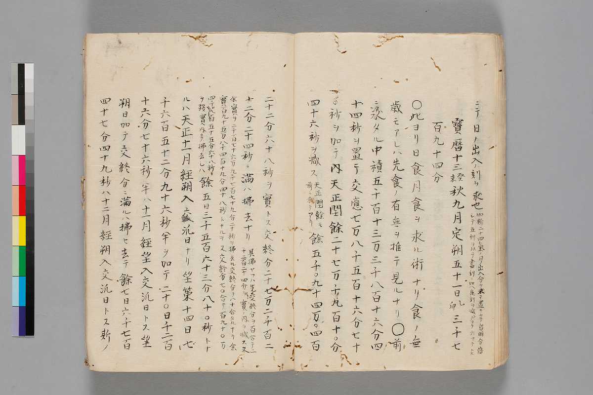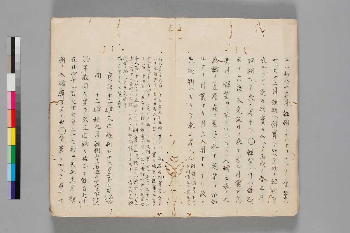 共紙表紙仮綴巻頭の著者表示:「国字暦/羽州最上滕明卿撰/江都雲潤先生鑒定」印記:「金澤□書」上巻:38丁、中巻:29丁、下巻:17丁