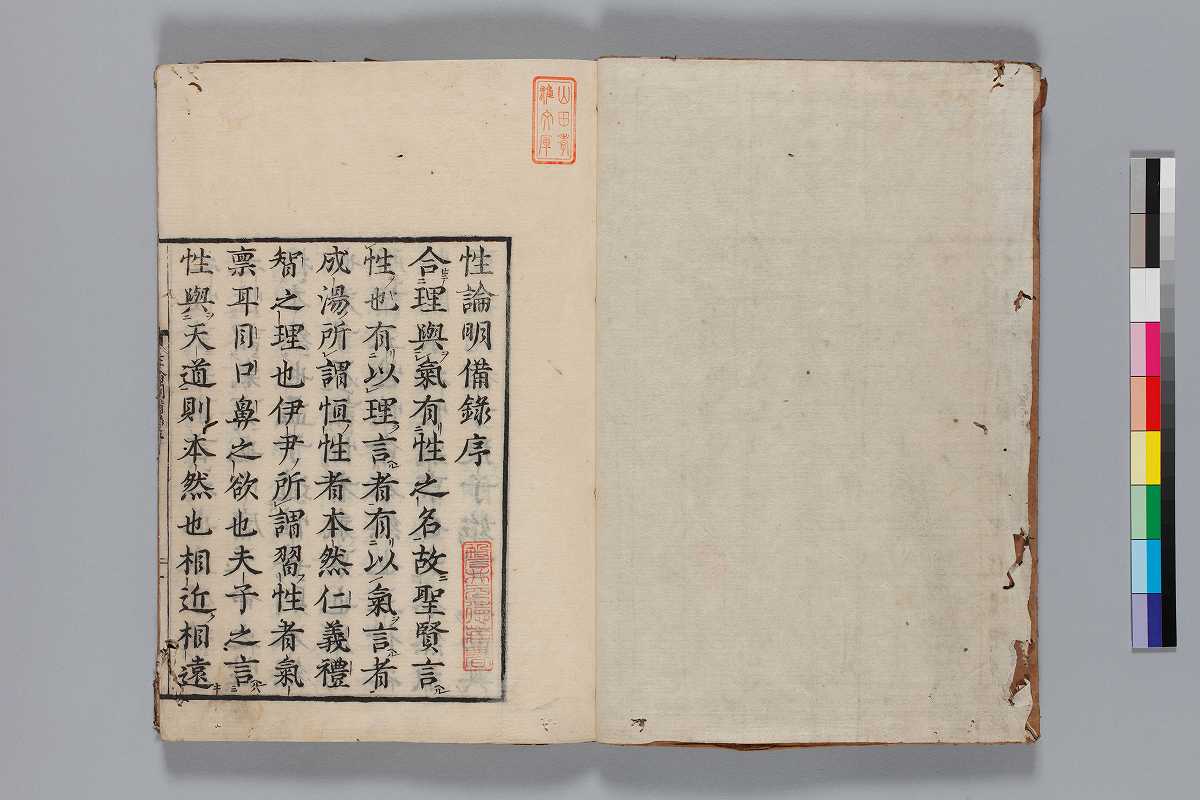 序:「寛文十二年六月七日/山崎敬義序」刊記:「二條通松屋町武村市兵衛刊行」印記:「磐井元徳藏書」