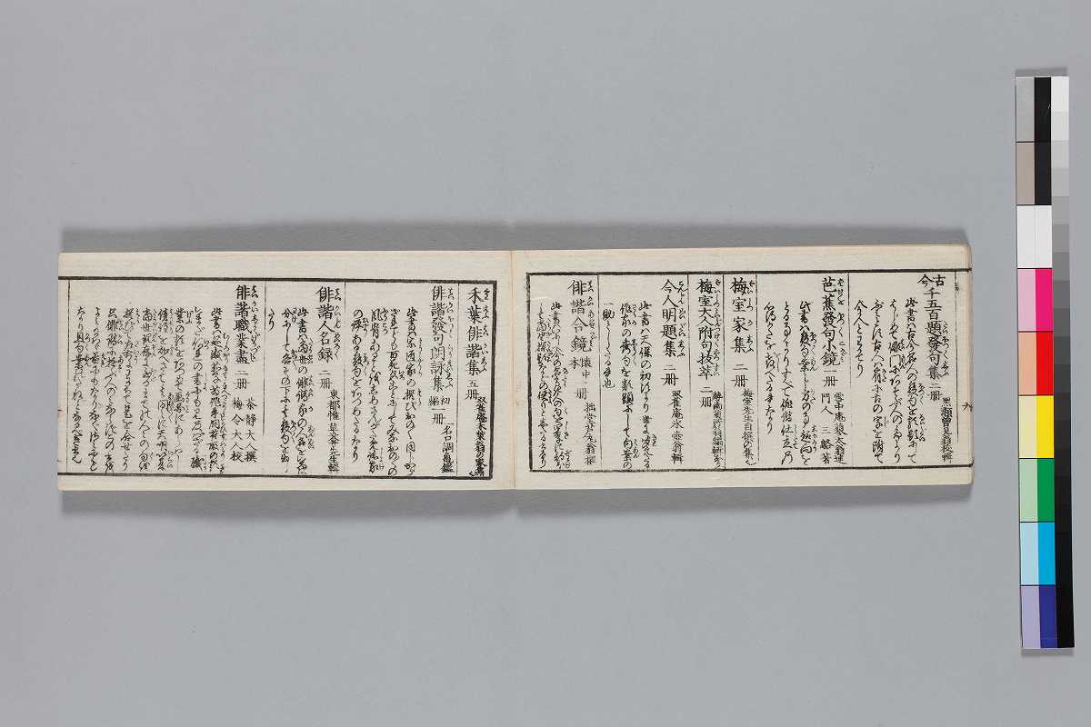 横本表紙色刷裏表紙欠仮綴冒頭:「金花堂藏板目録日本橋南四町目須原屋佐助」