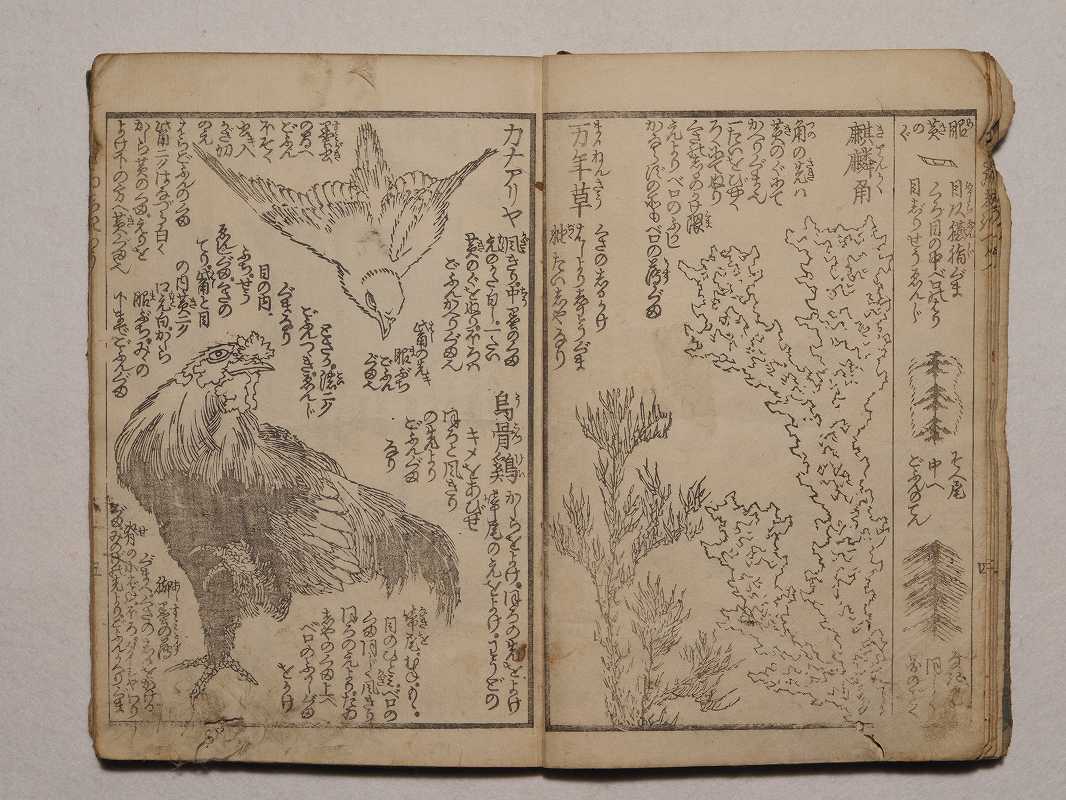 - 見返:「画狂老人卍筆/(繪/本)彩色通/初編/戊申端月發兌/山口藤兵衞/小林新兵衞/和泉屋市兵衞」扉:「(画/本)彩色通」奥附:「弘化五申年正月發行/京都三條通升屋町出雲寺文次郎/大坂心齋橋博勞町河内屋茂兵衛/江戸芝神明前和泉屋市兵衛/同日本橋通二丁目須原屋新兵衛/同馬喰町二丁目山口屋藤兵衛」