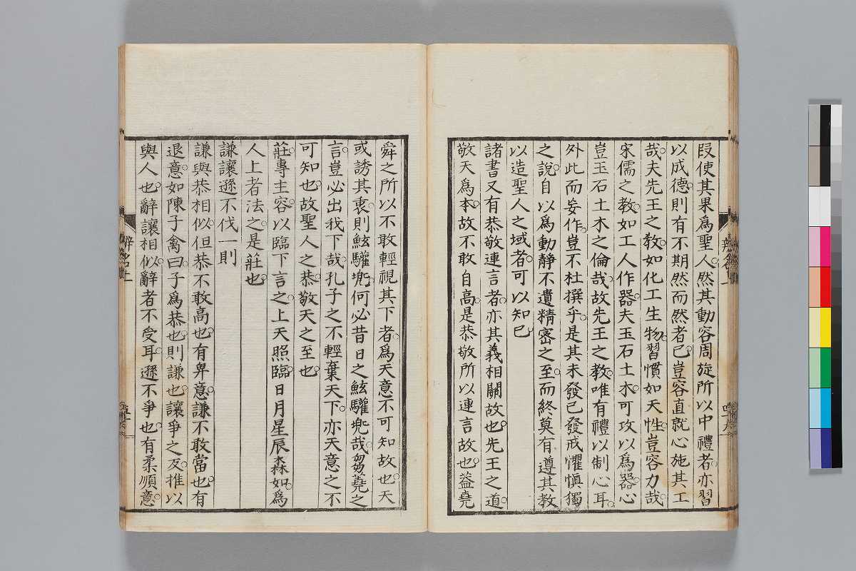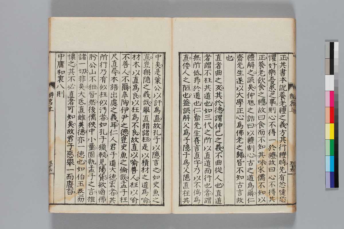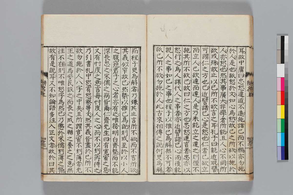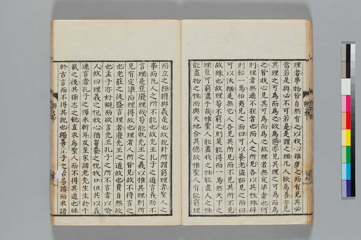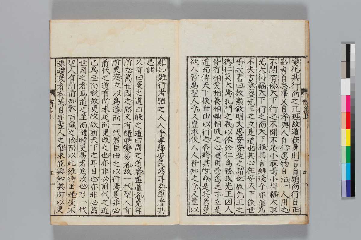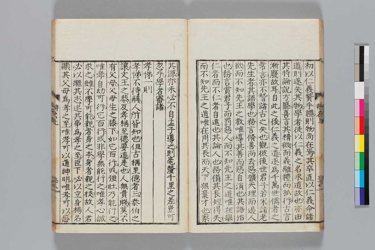 - 辨道1冊、辨名2冊「辨道」に朱・墨書込あり辨道末尾:「享保丁酉秋七月望/物茂卿」辨名下冊裏表紙見返蔵版目録:「辨道辨名(徂徠先生著/三冊)」「東都書林(松本新六/同善兵衞)」印記:「櫻廼舎」「尚友亭藏書」ほか印文未詳印1顆辨道:22丁〔23丁目は裏表紙見返に張付〕、辨名上:1、61丁、辨名下:58丁