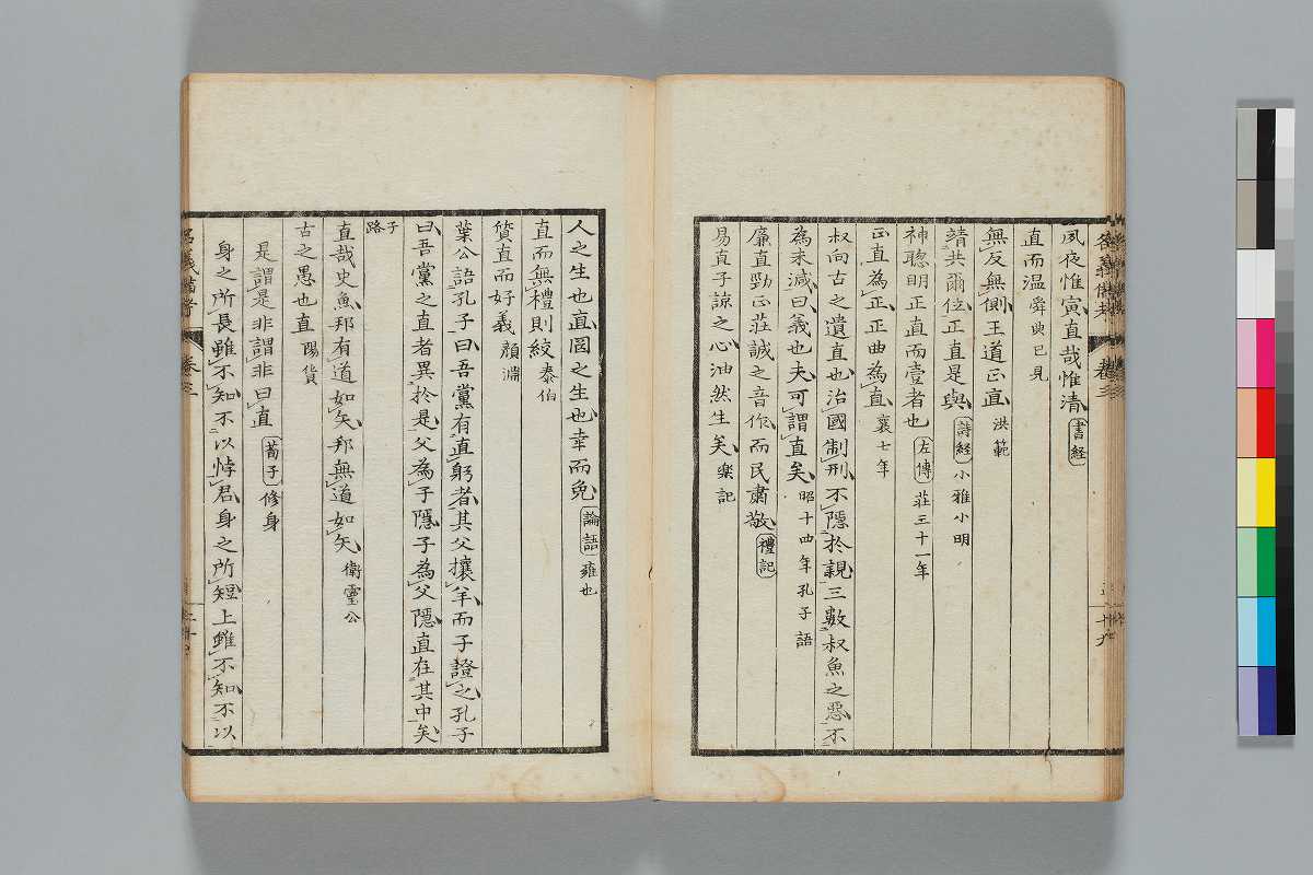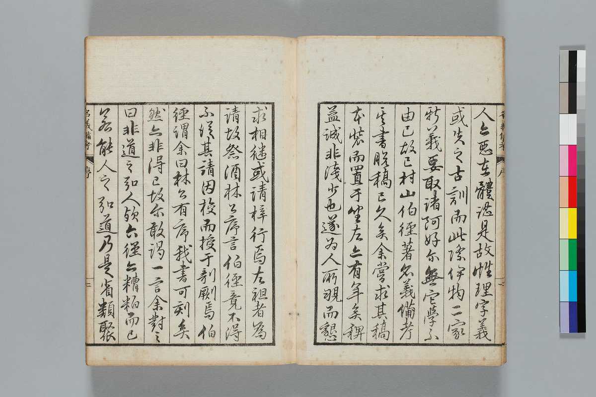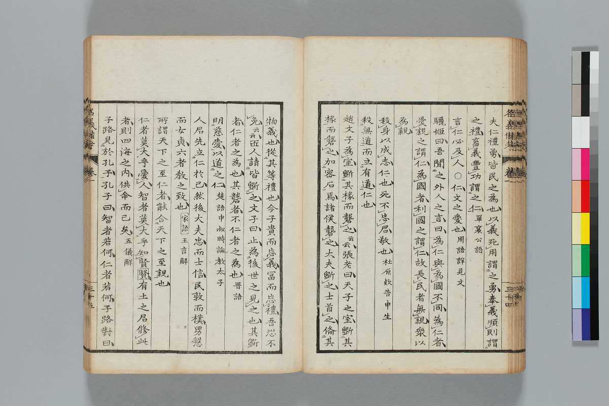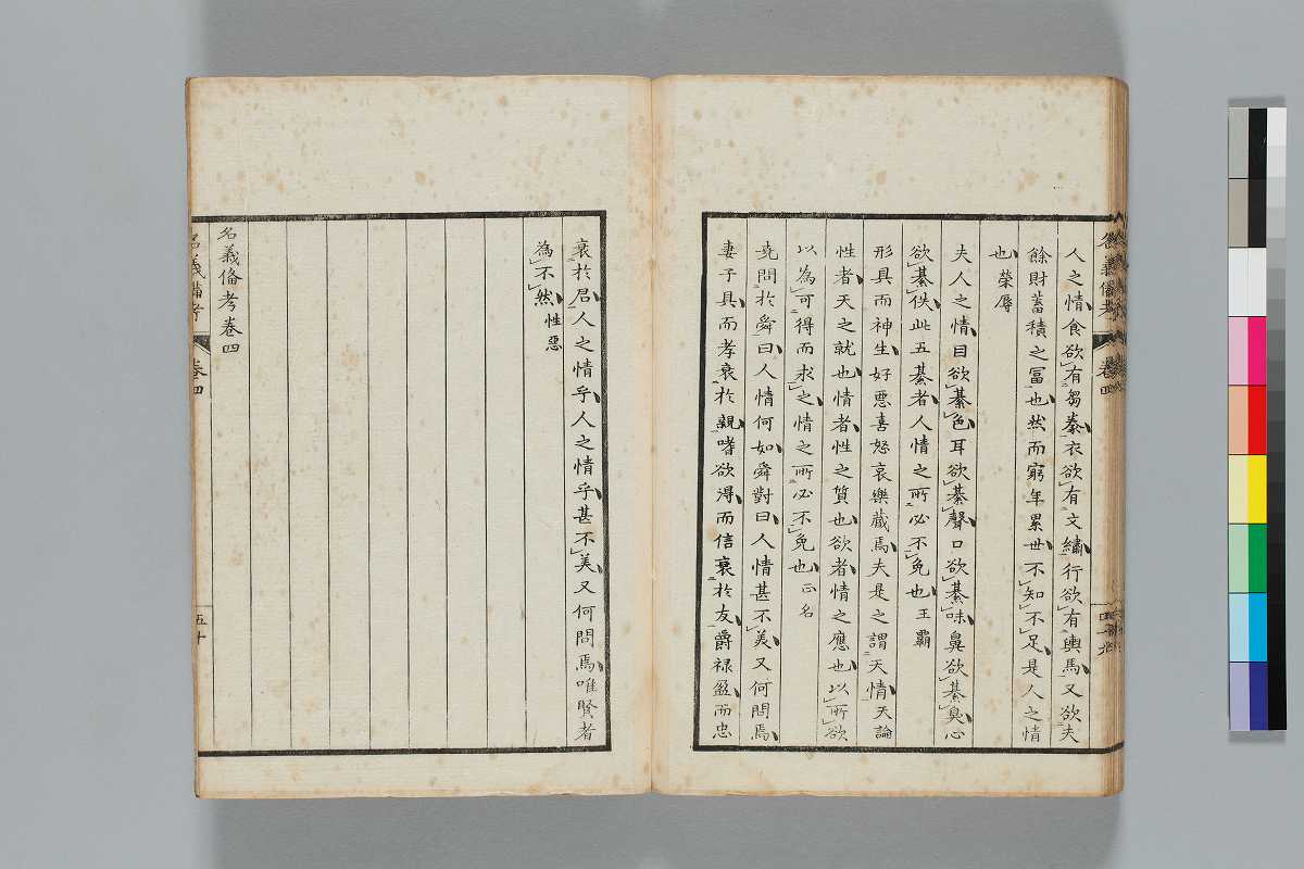 - 序:「天明丙午冬/大學頭林信徴撰」刻名義備考序:「天明丁未孟冬/後學山城澤元愷/撰并書」跋:「丁未冬日/邨山廣」印文未詳印1顆巻一―巻二:2、2、1、2、48、47丁、巻三―巻四:35、50、1丁