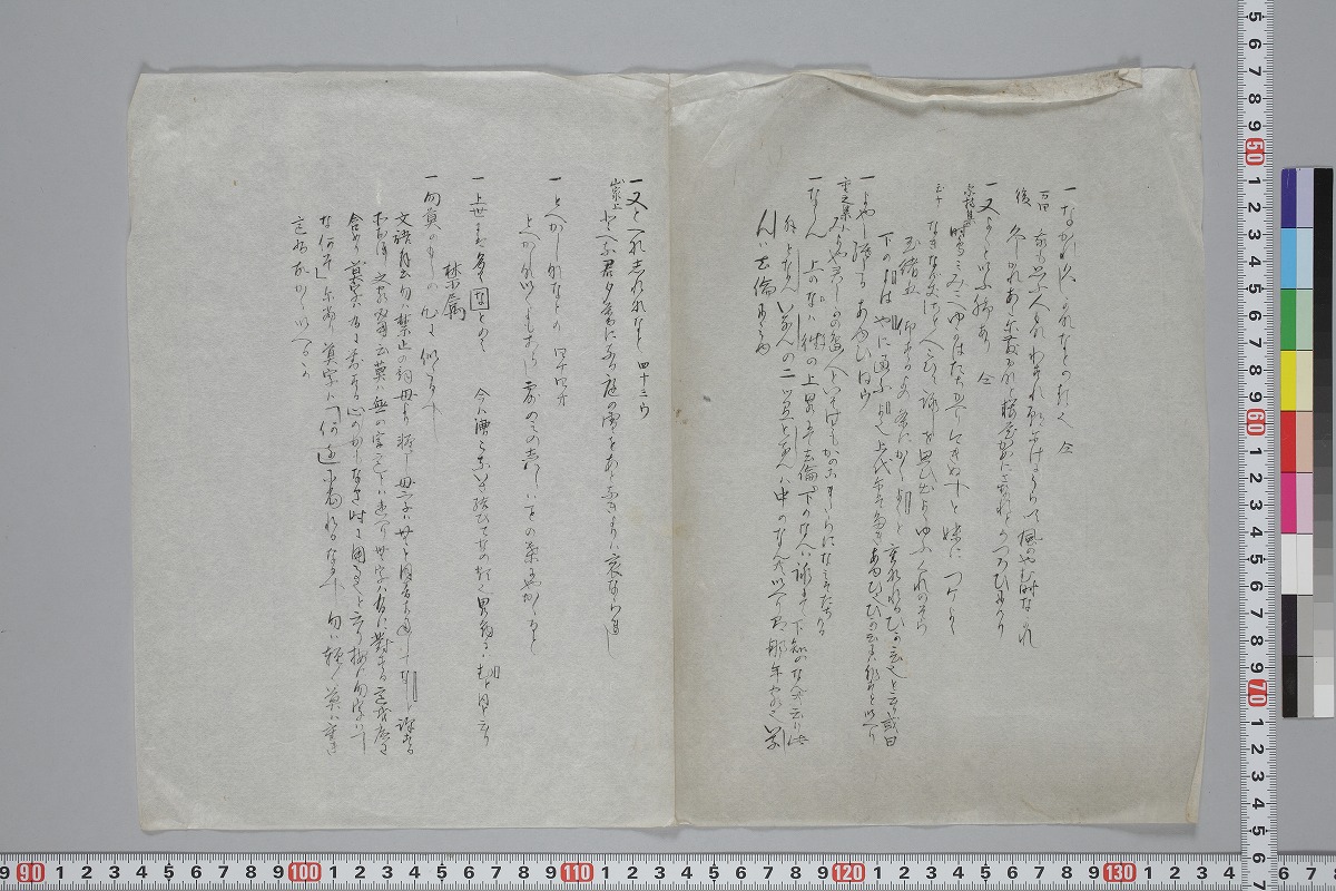 - 未製本のまま「(生/漉)志ろいし便箋」の箱入り[1]踋結抄考巻之二五属のうち四誂属末尾―禁属の部分1丁、巻之三全巻11丁、[2]同言異意抄あの部より五十音順でふの部まで凡例1丁、本文14丁