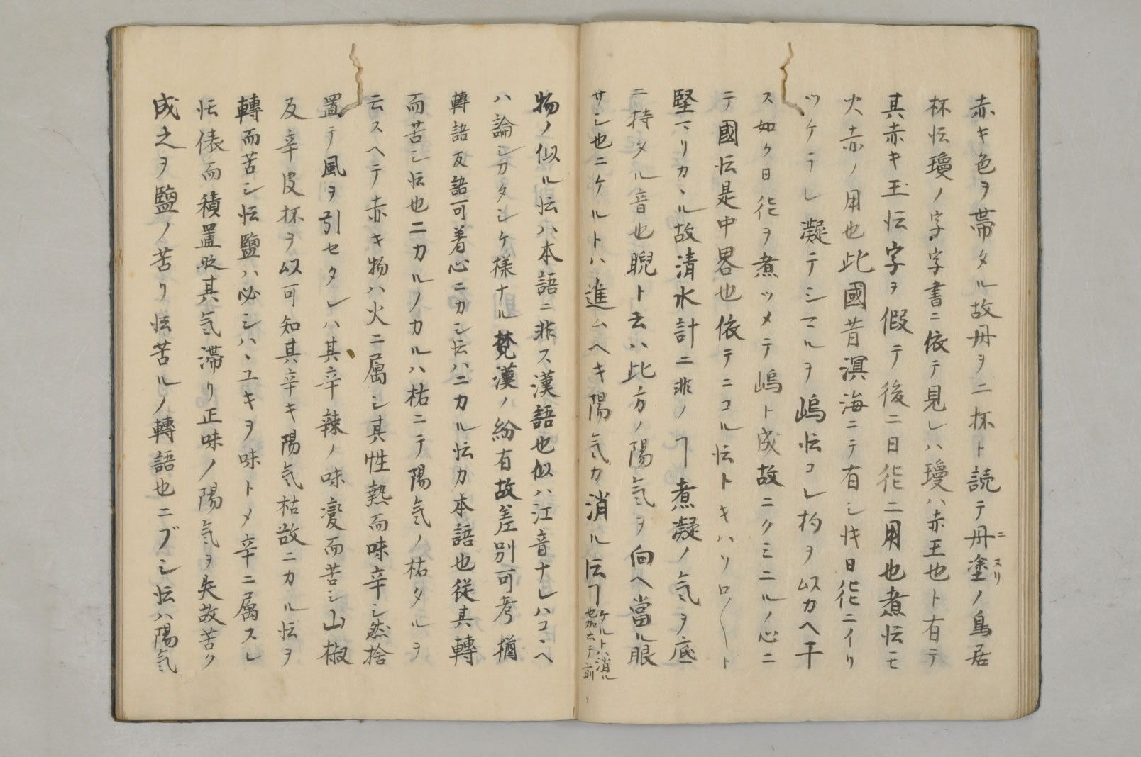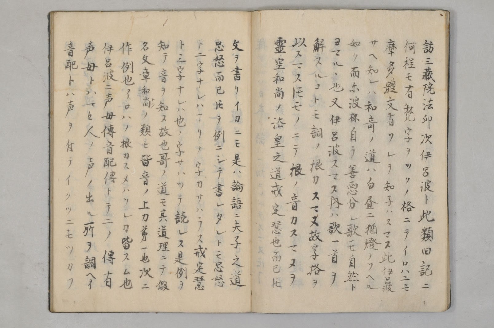 - 奥書:「右以呂波声母傳者官家芝山/宰相廣豊卿極秘之口傳也日夲/古今之記録以是考合為初之/定所也甚雖為秘事因門人小/林氏強請不能固辞筆授之漫/不許他見矣/于時文化二年九月上旬」印記:「濱田氏」「□上永辻」
