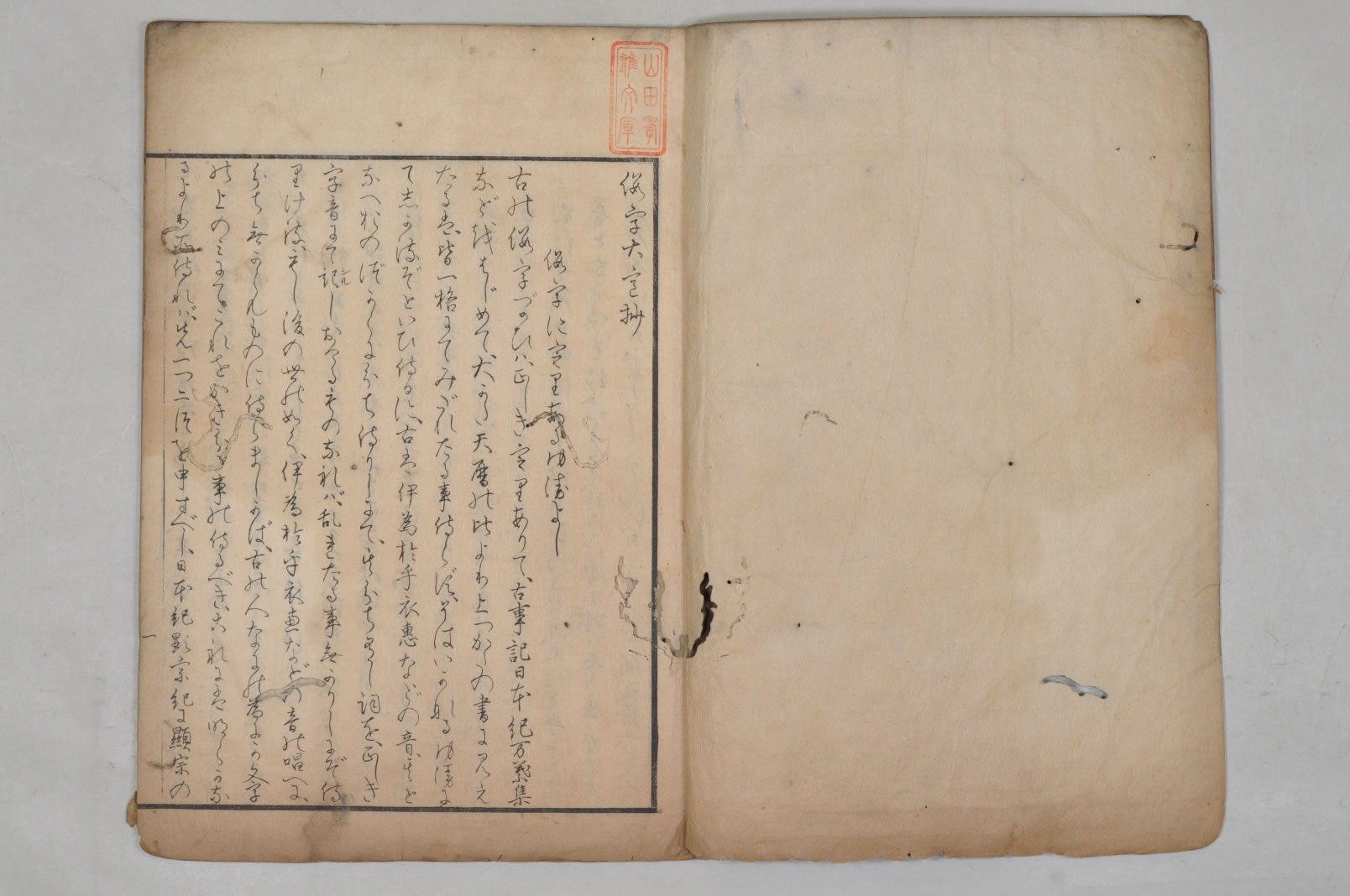 - 本文末:「享和元年八月廿八日平春海上」自跋:「文化の四とせといふ年のふつきにしこりのやの主人」巻末:「附録一巻/音便假字例/答鈴木長温書/右嗣刻/錦織齋蔵板」
