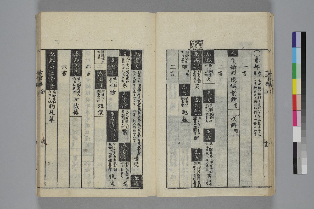 - 序:「明和二のとし四月藤原の宇万伎かいふ」本文末:「明和のはじめのとしの八月にあつめ終ぬ/下つ総の國なる楫取魚彦/千賀の真恒をくにの浅つら/よみかうかへつ」跋:「賀茂/真淵云」