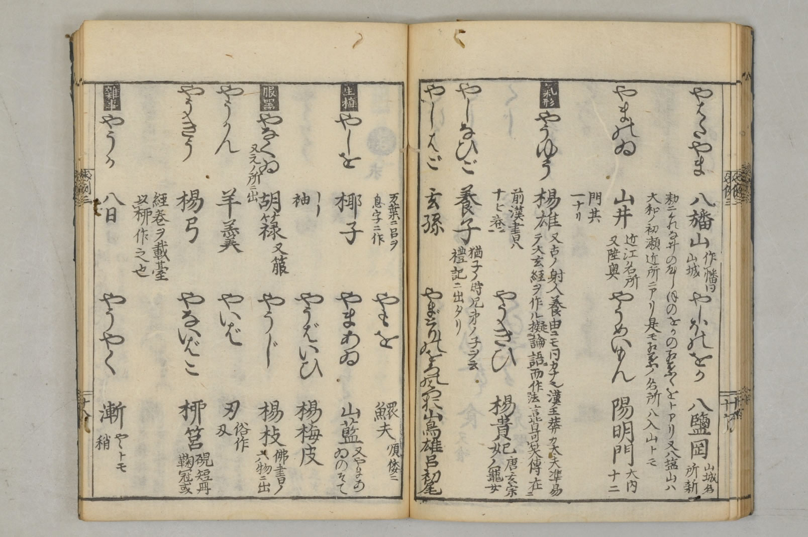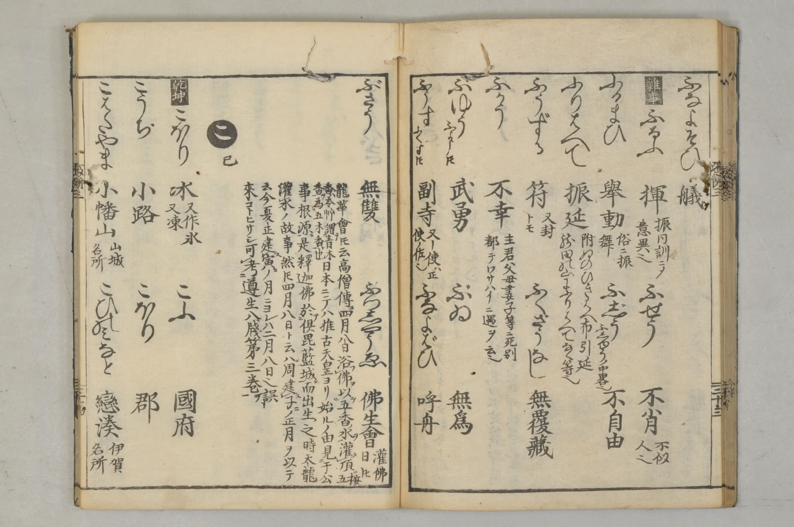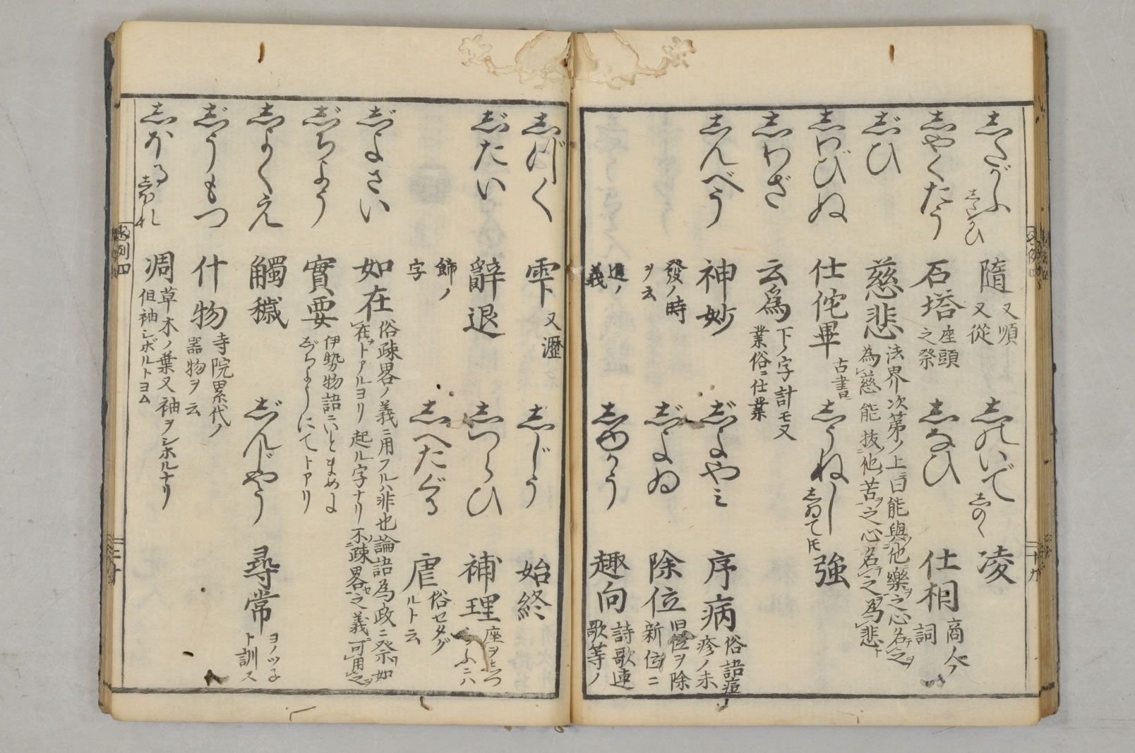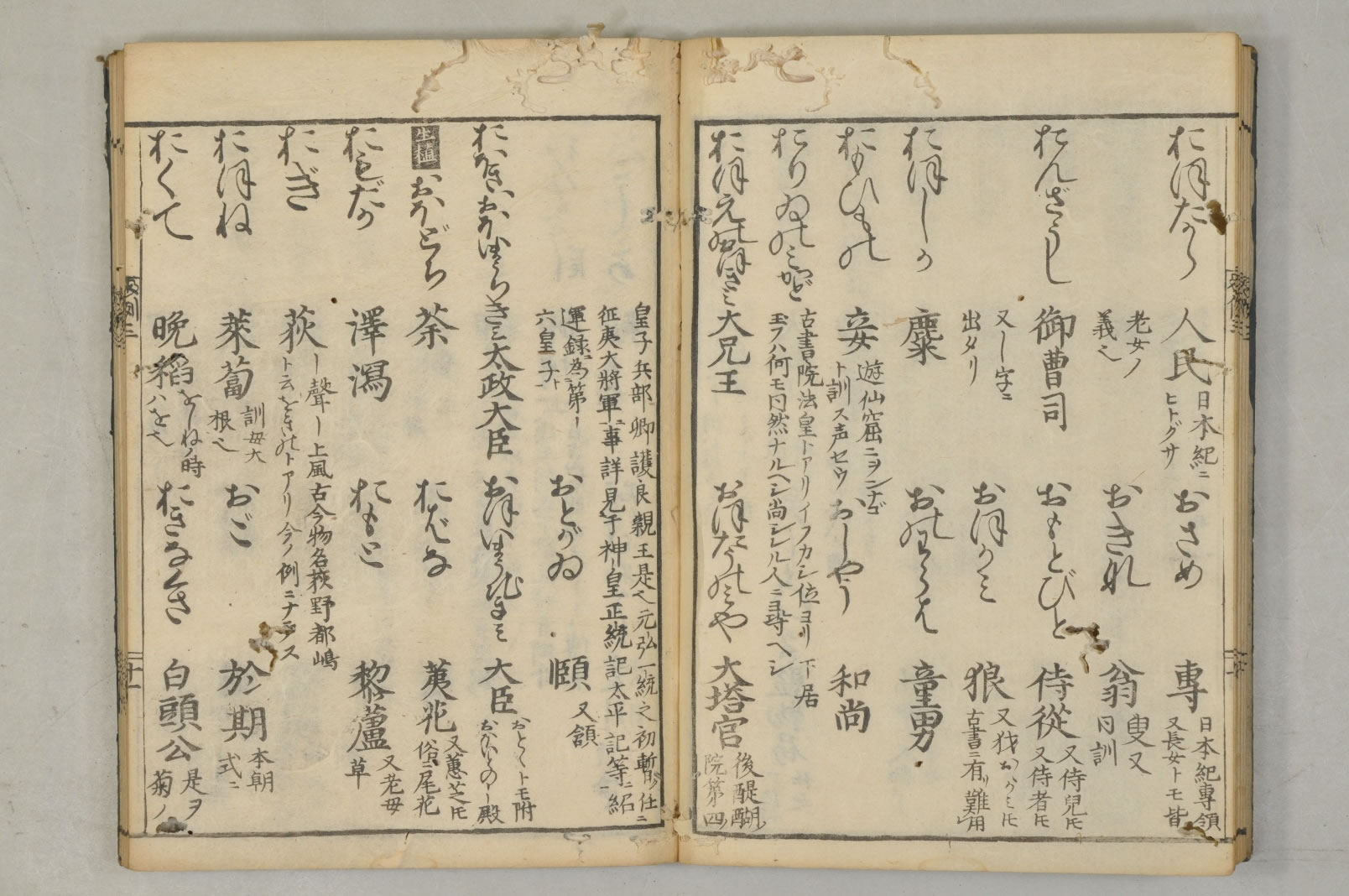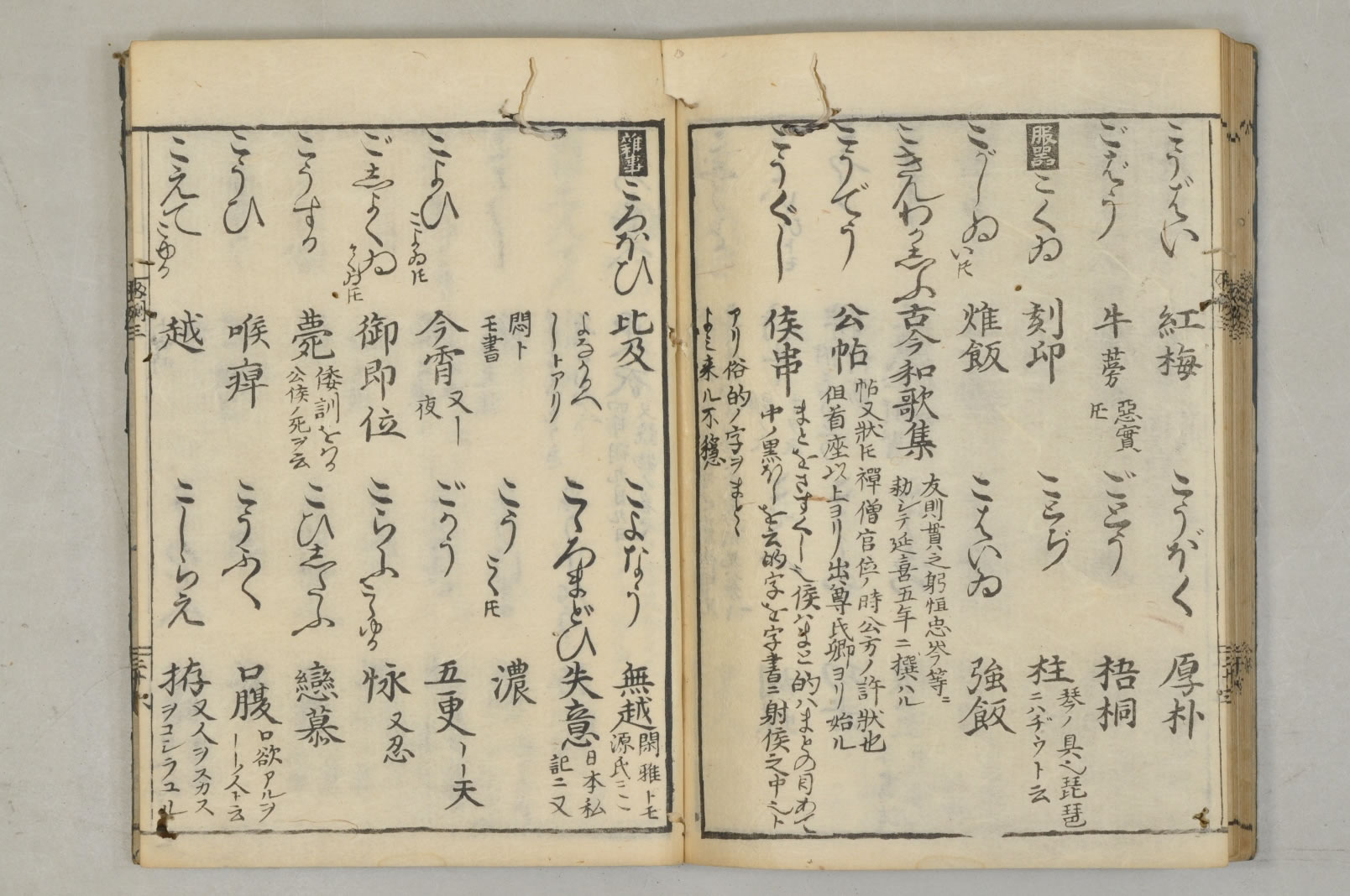 - 序:「延寶四年の秋むさし野の/露をしたひて芝の陋巷/貉睡堂のあるし山崎吉里/志るすものなり」跋:「延寶丙辰秋/九月上弦橘保春書」刊記:「延寶六戌午天二月吉日江戸通本石町本屋吉兵衛開板」印記:「江□藏書」巻一:22丁、巻二:29丁〔裏表紙見返にも本文あり〕、巻三:31丁〔裏表紙見返にも本文あり〕、巻四:32丁