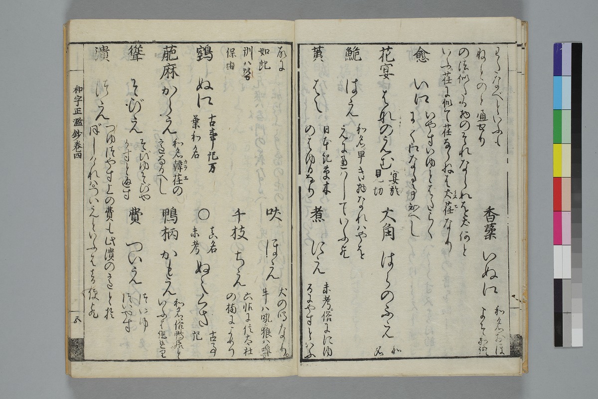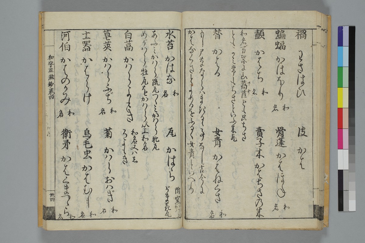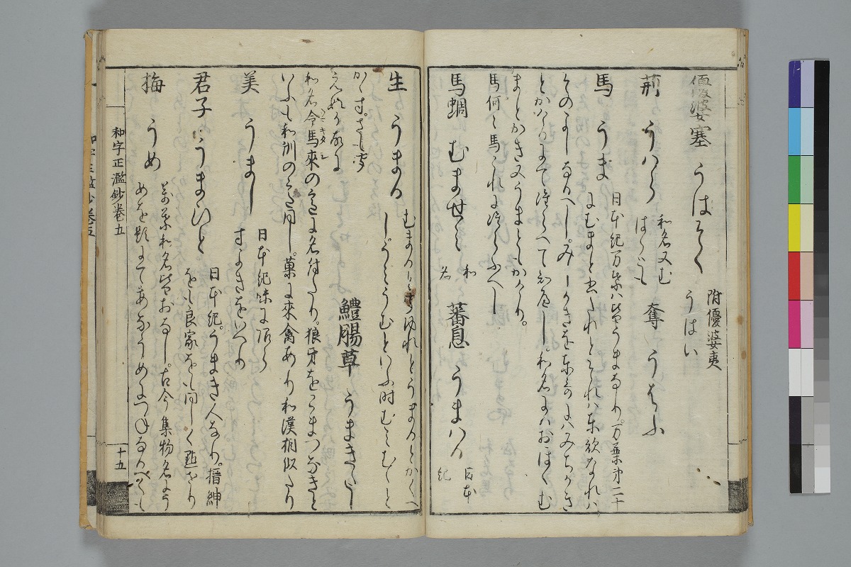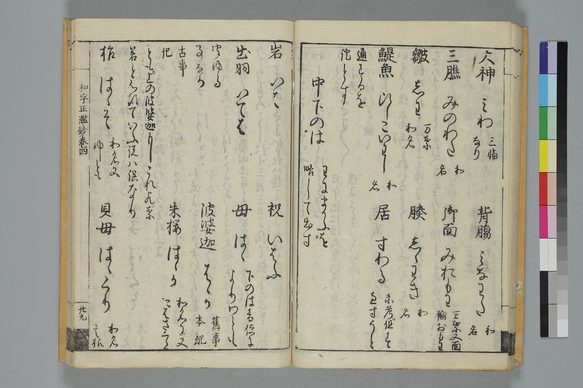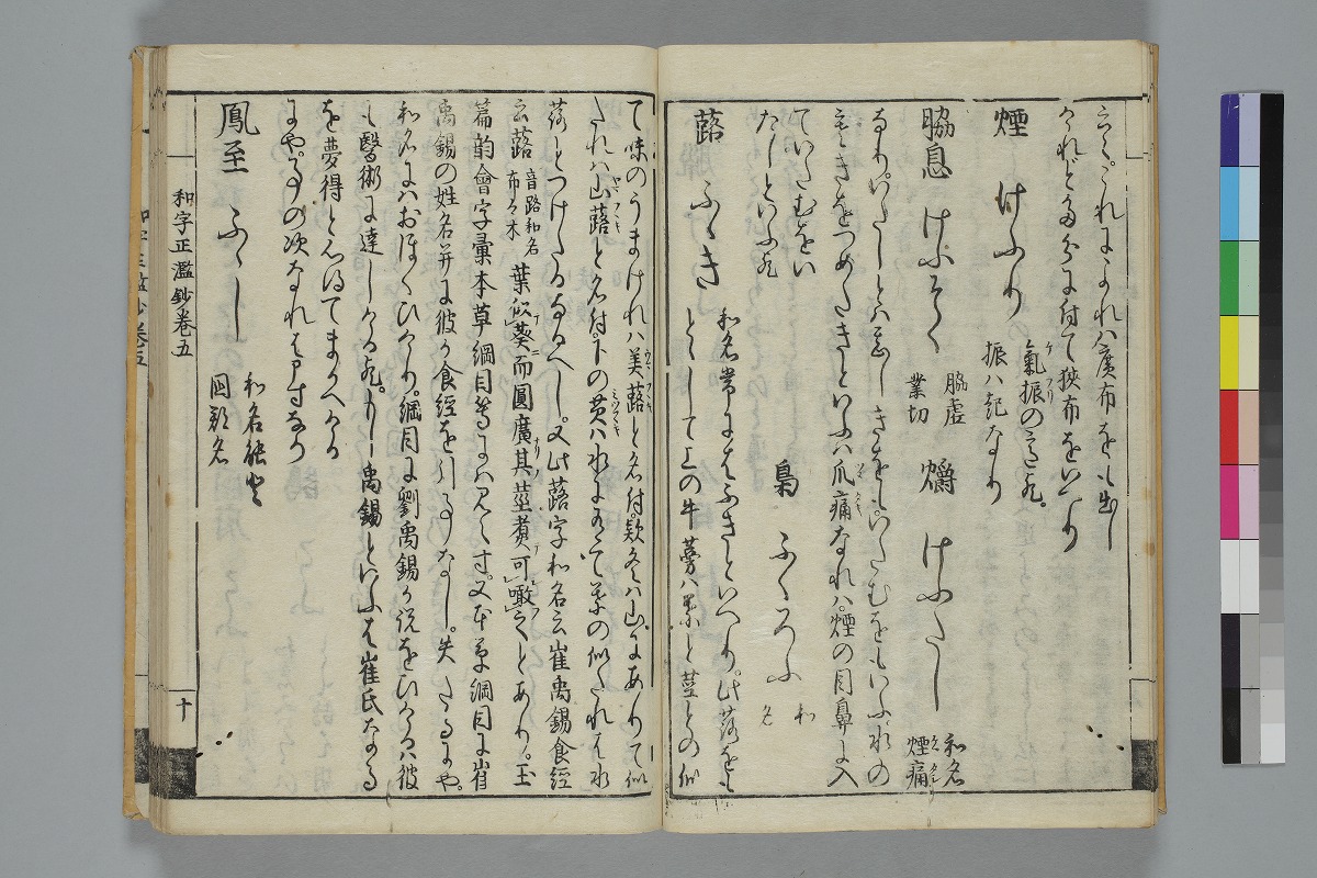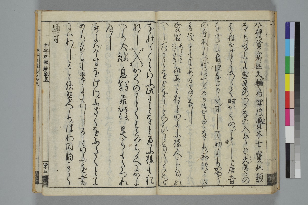 - 闕本巻一を欠く奥附:「元文四己未歳正月吉旦求版/書林/大坂心齋橋筋順慶町柏原屋澁川清右衛門/同與市」印記:「萬香文庫」「内家文庫」巻二:41丁、巻三:41丁、巻四:56丁、巻五:48丁
