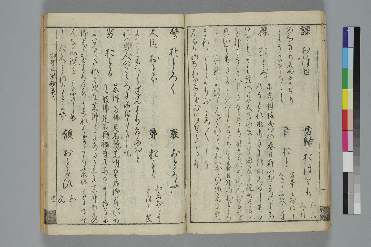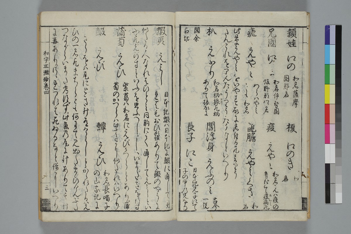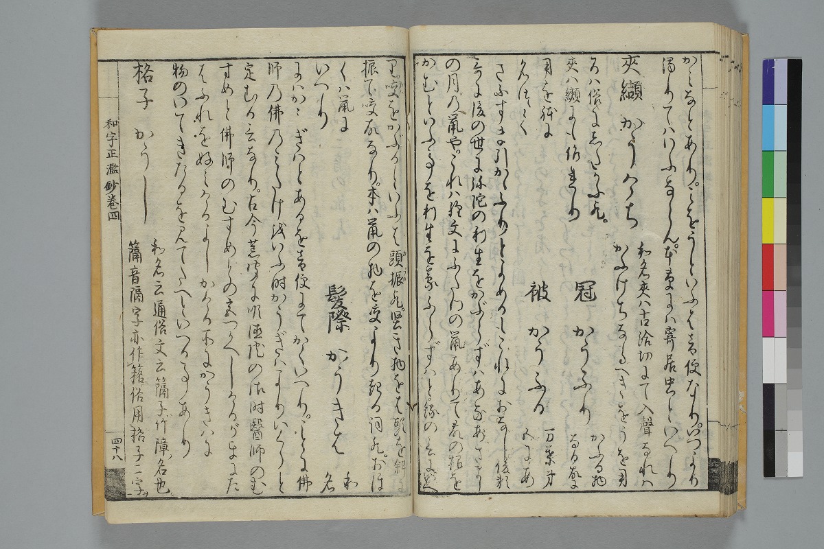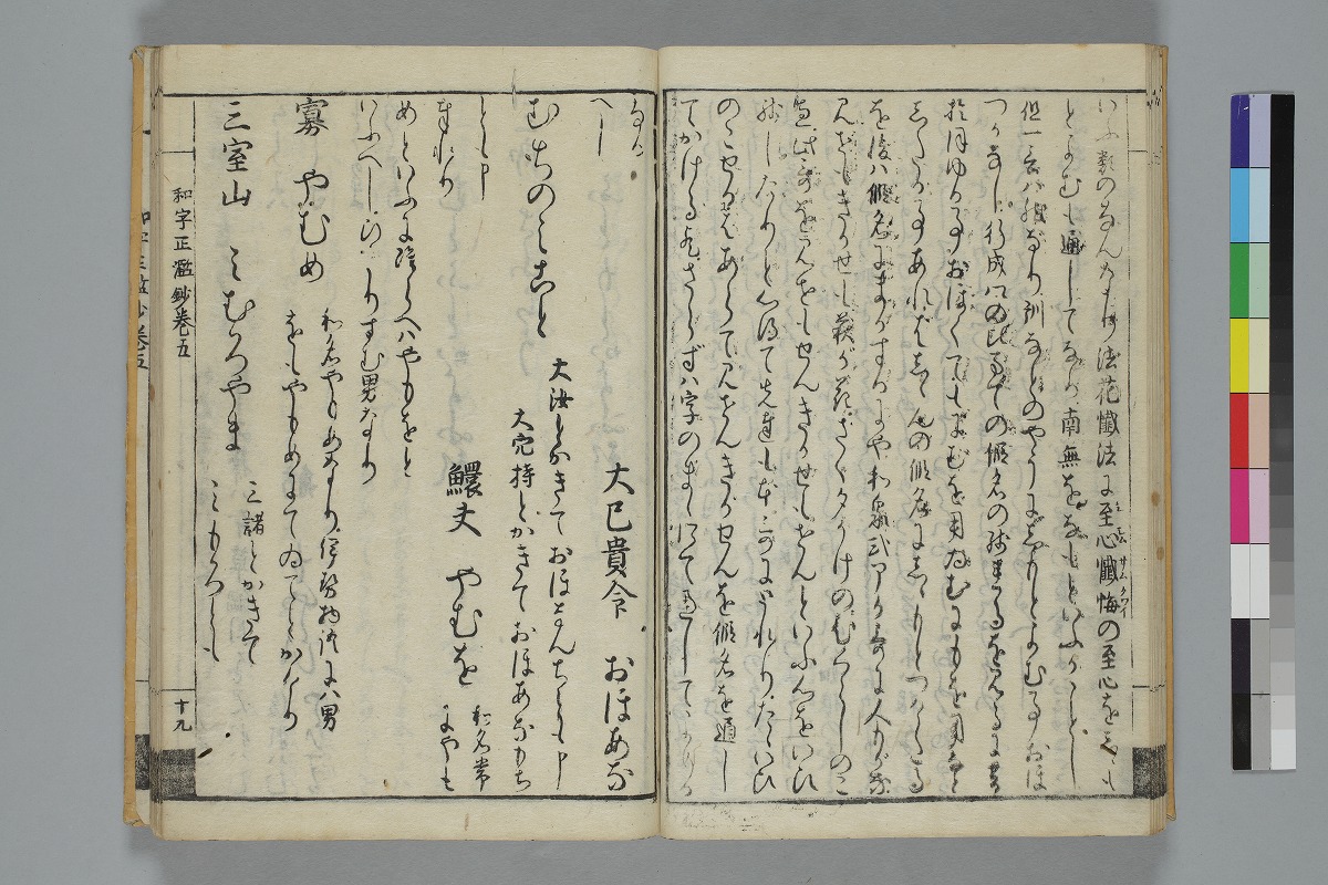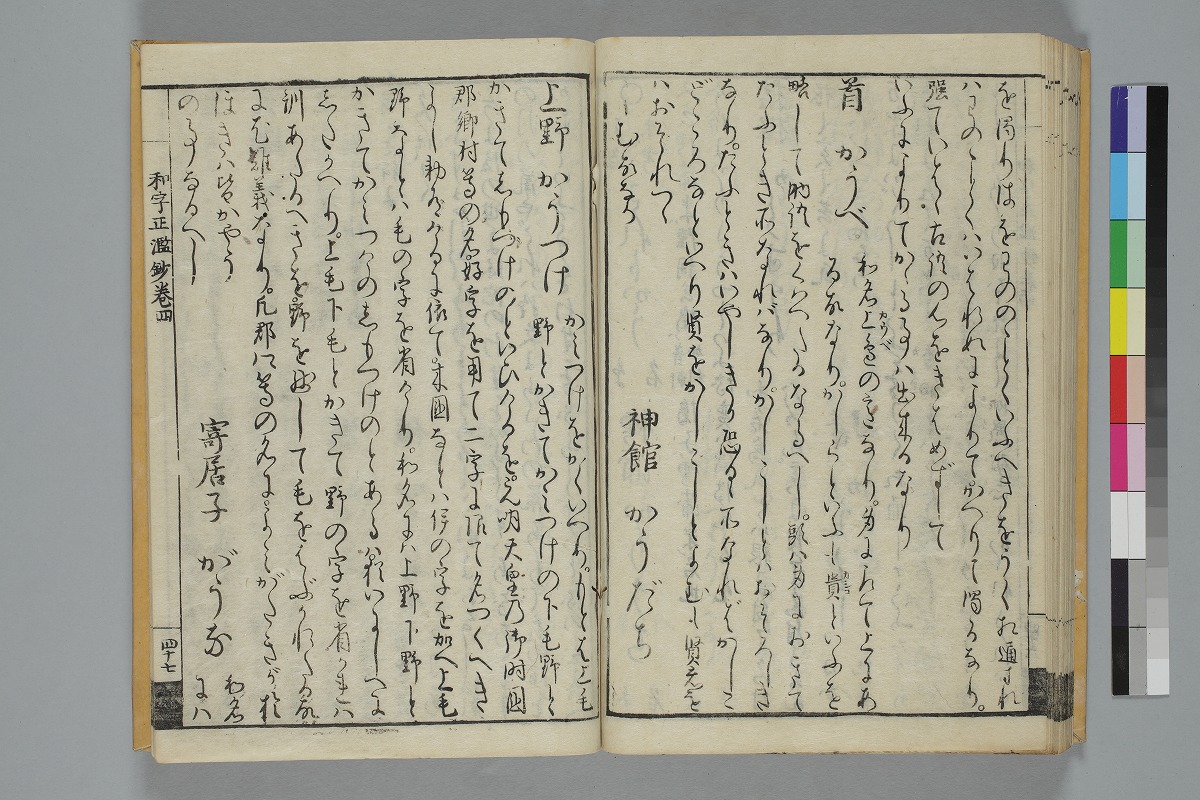 - 闕本巻一を欠く奥附:「元文四己未歳正月吉旦求版/書林/大坂心齋橋筋順慶町柏原屋澁川清右衛門/同與市」印記:「萬香文庫」「内家文庫」巻二:41丁、巻三:41丁、巻四:56丁、巻五:48丁
