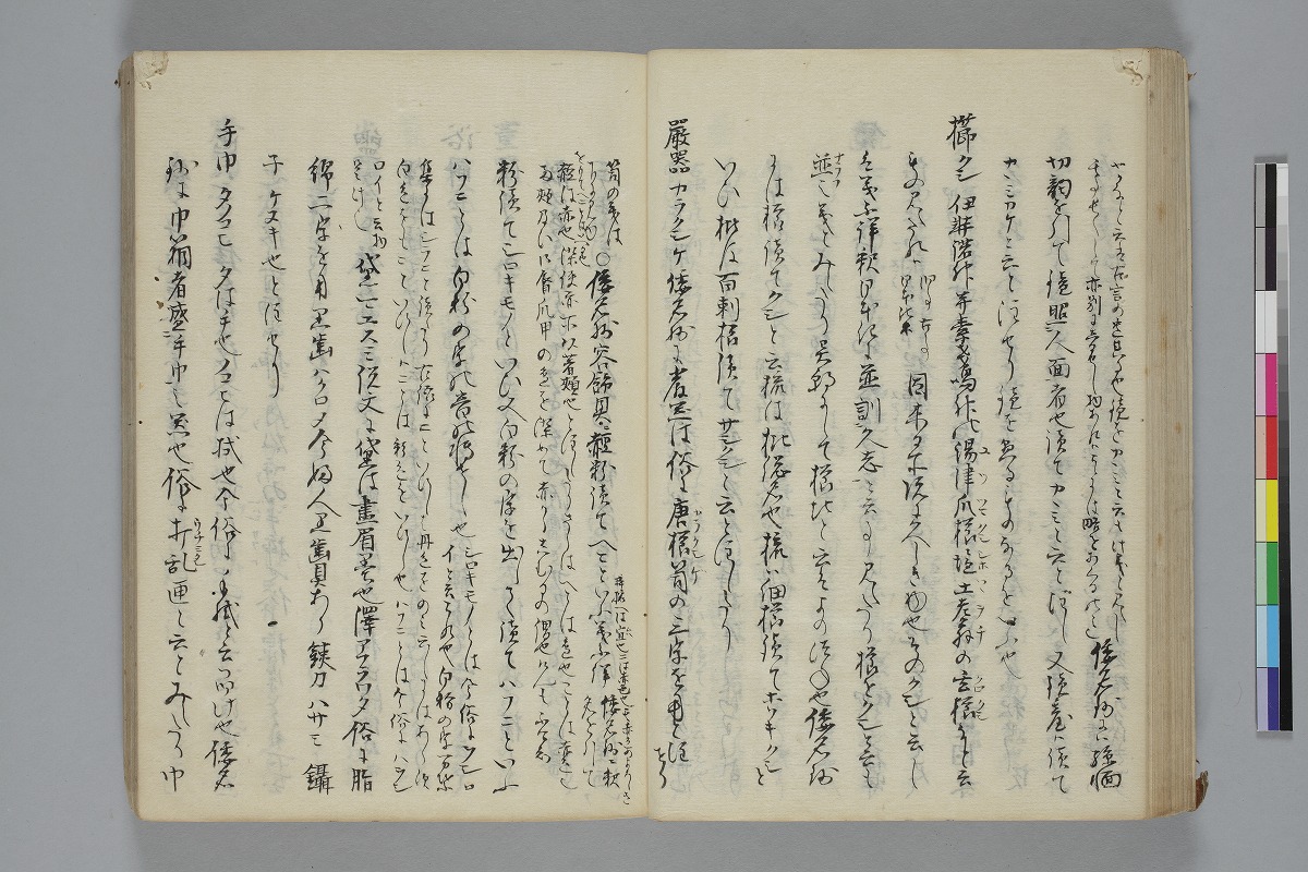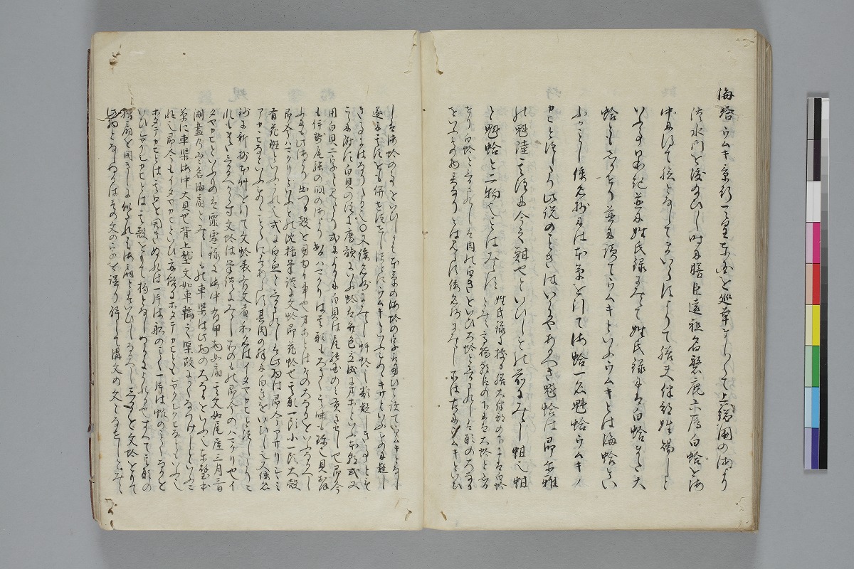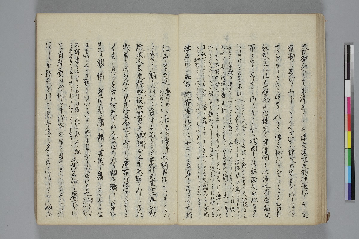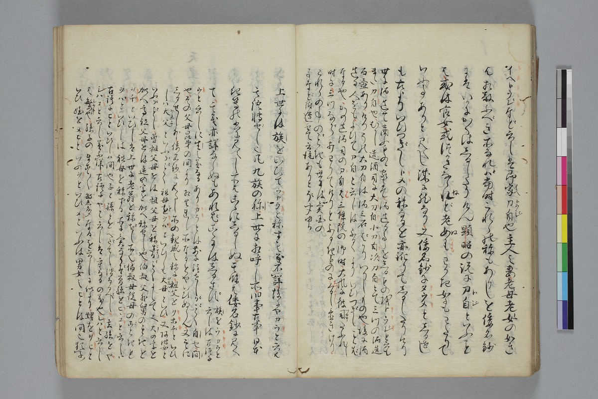 - 序:「享保己亥夏四月初八日英賀室直清書」巻之一―巻之五:124丁〔裏表紙見返にも本文あり〕、巻之六―巻之十三:150丁、巻之十四―巻之二十:160丁