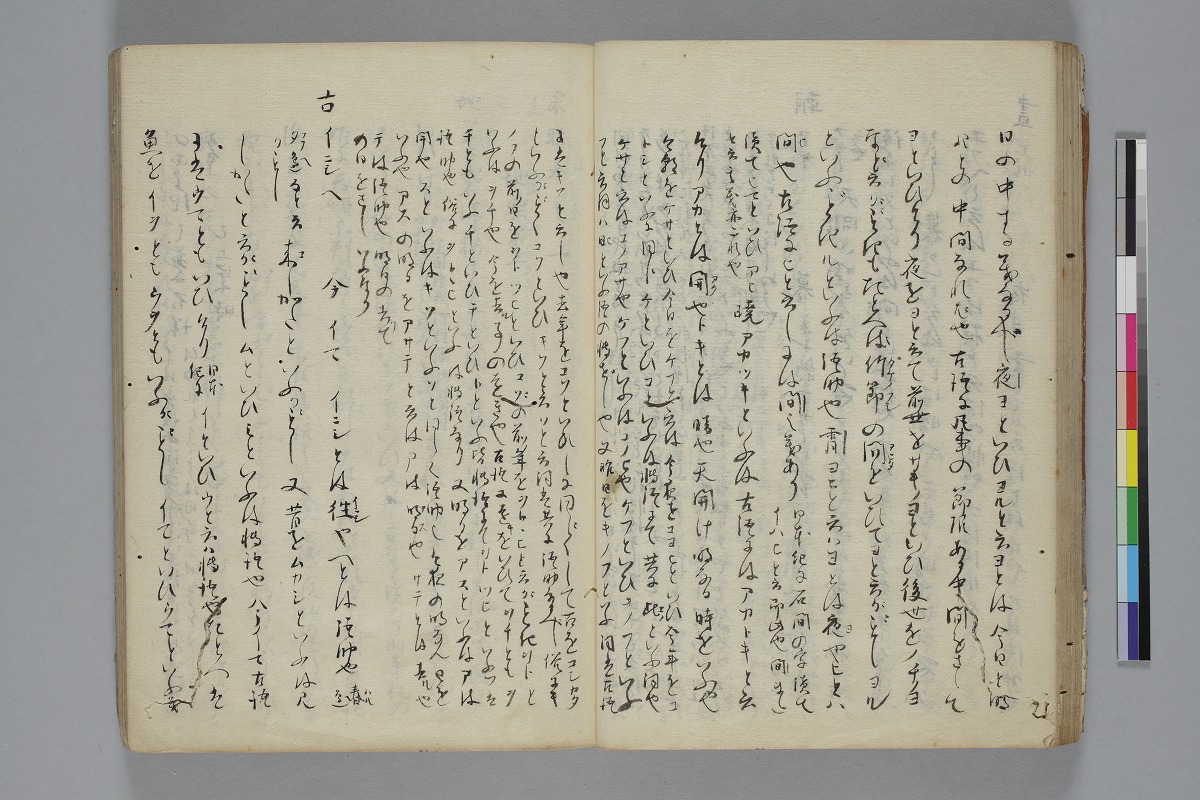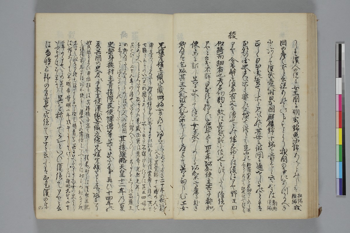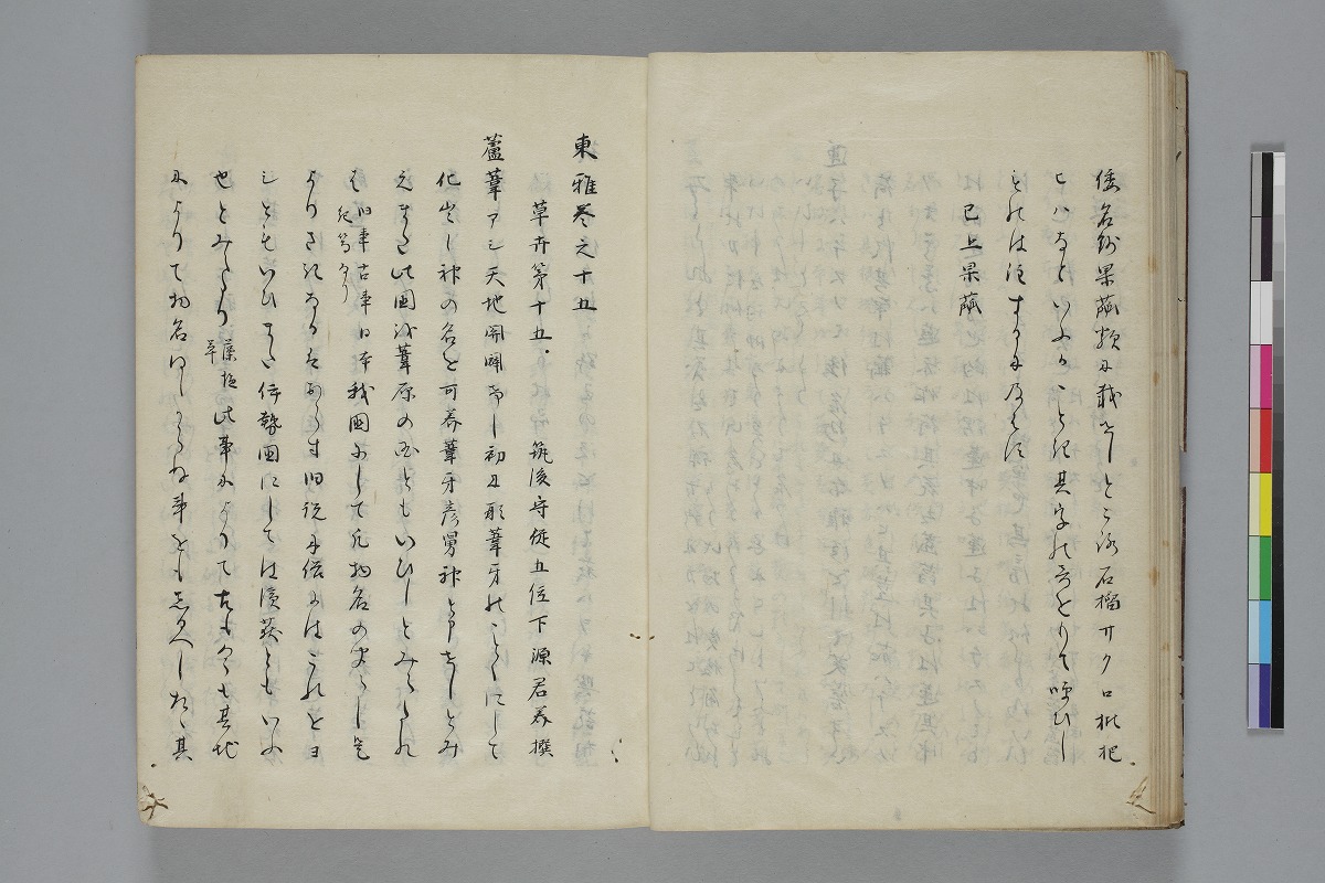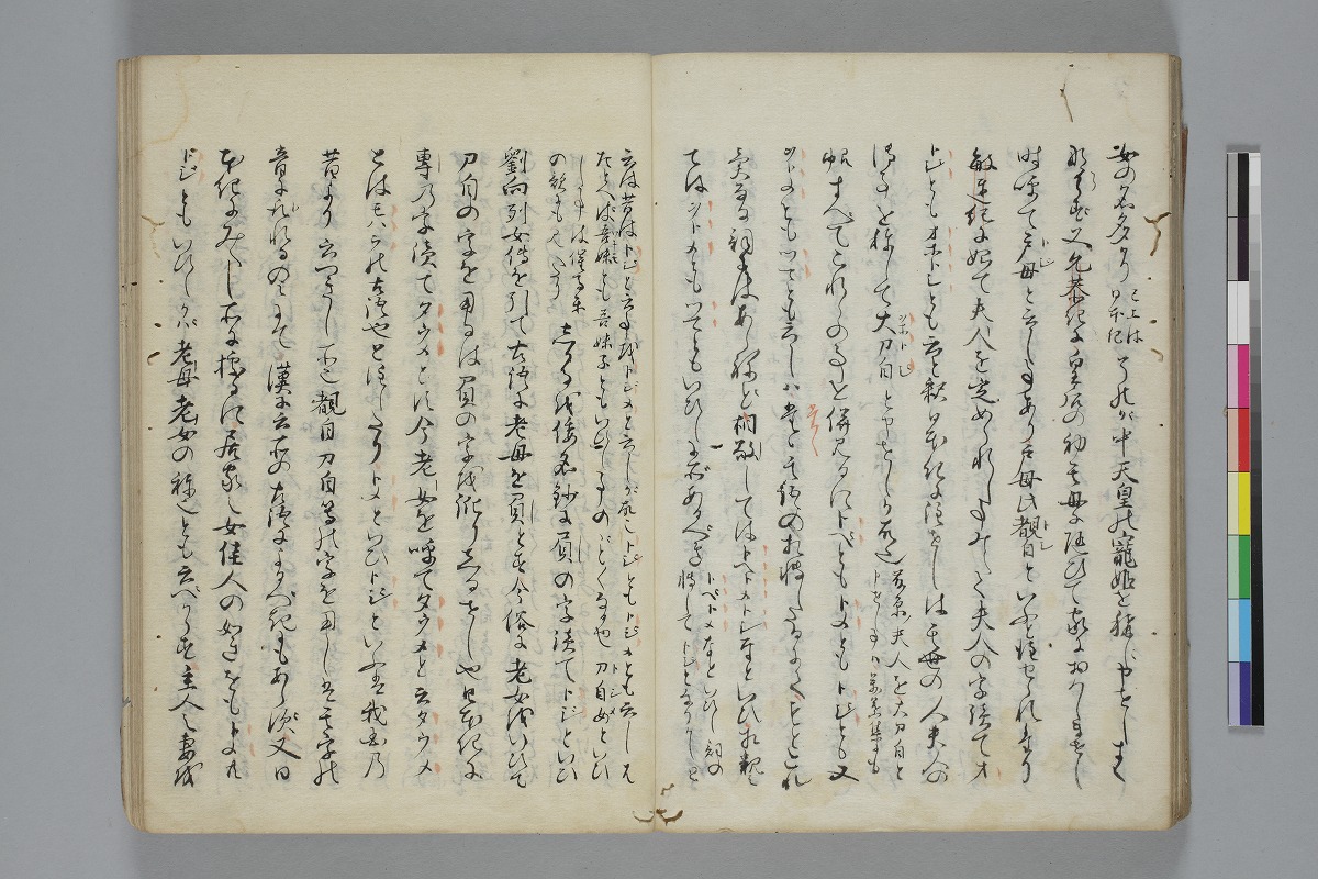 - 序:「享保己亥夏四月初八日英賀室直清書」巻之一―巻之五:124丁〔裏表紙見返にも本文あり〕、巻之六―巻之十三:150丁、巻之十四―巻之二十:160丁