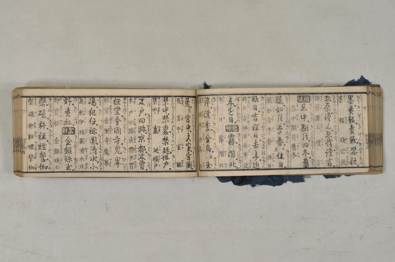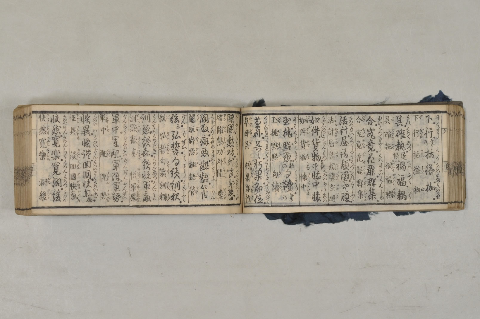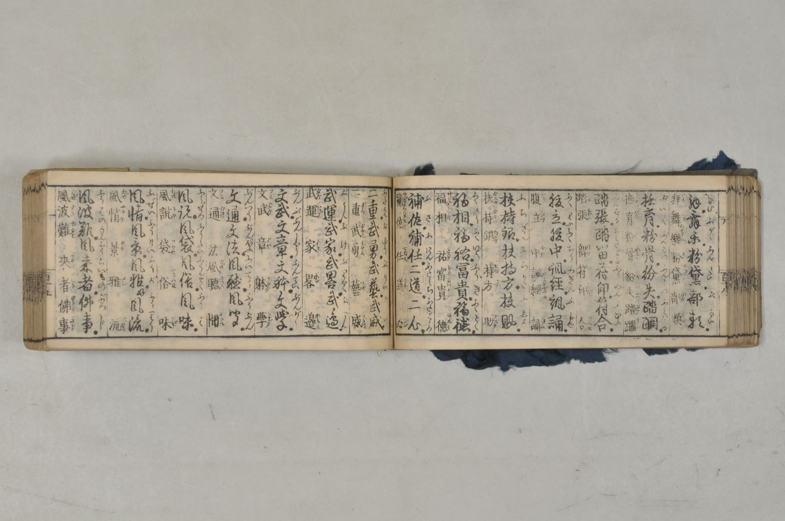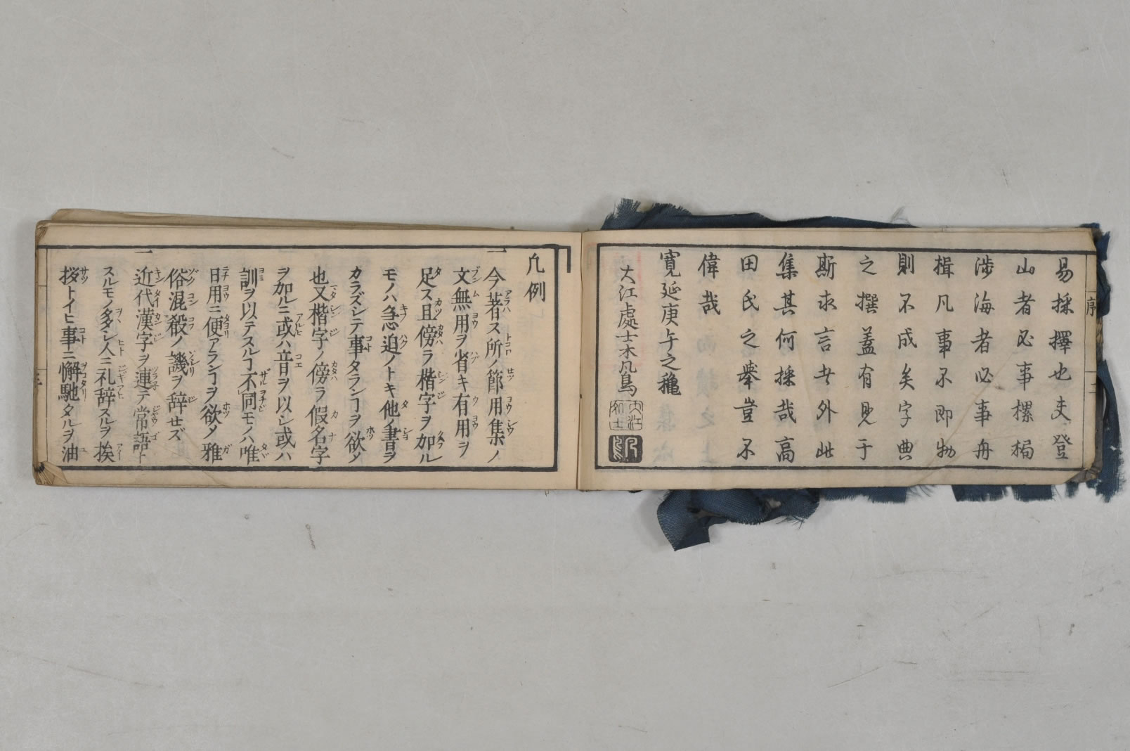 - 序:「寛延庚午之穐/大江處士木凡鳥」刊記:「高田政度選/文化十四丁丑年再刻/大阪書林心齋橋南四丁目吉文字屋市右衞門/同讃岐屋町西横堀西入檜皮屋善七」巻末広告:「耕耘堂藏版目録/文化十四年丁丑五月/大阪書林讃岐屋町西横堀西え入檜皮屋善七」