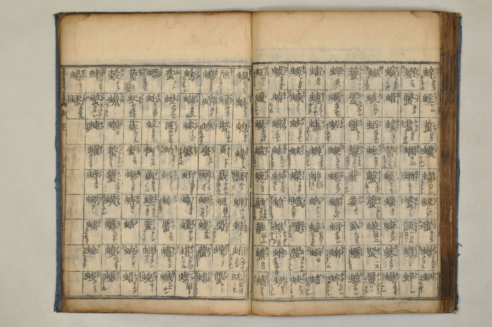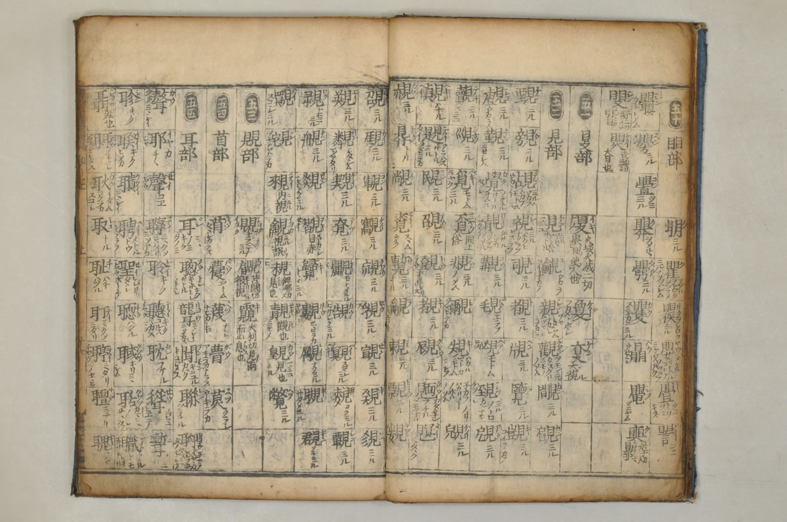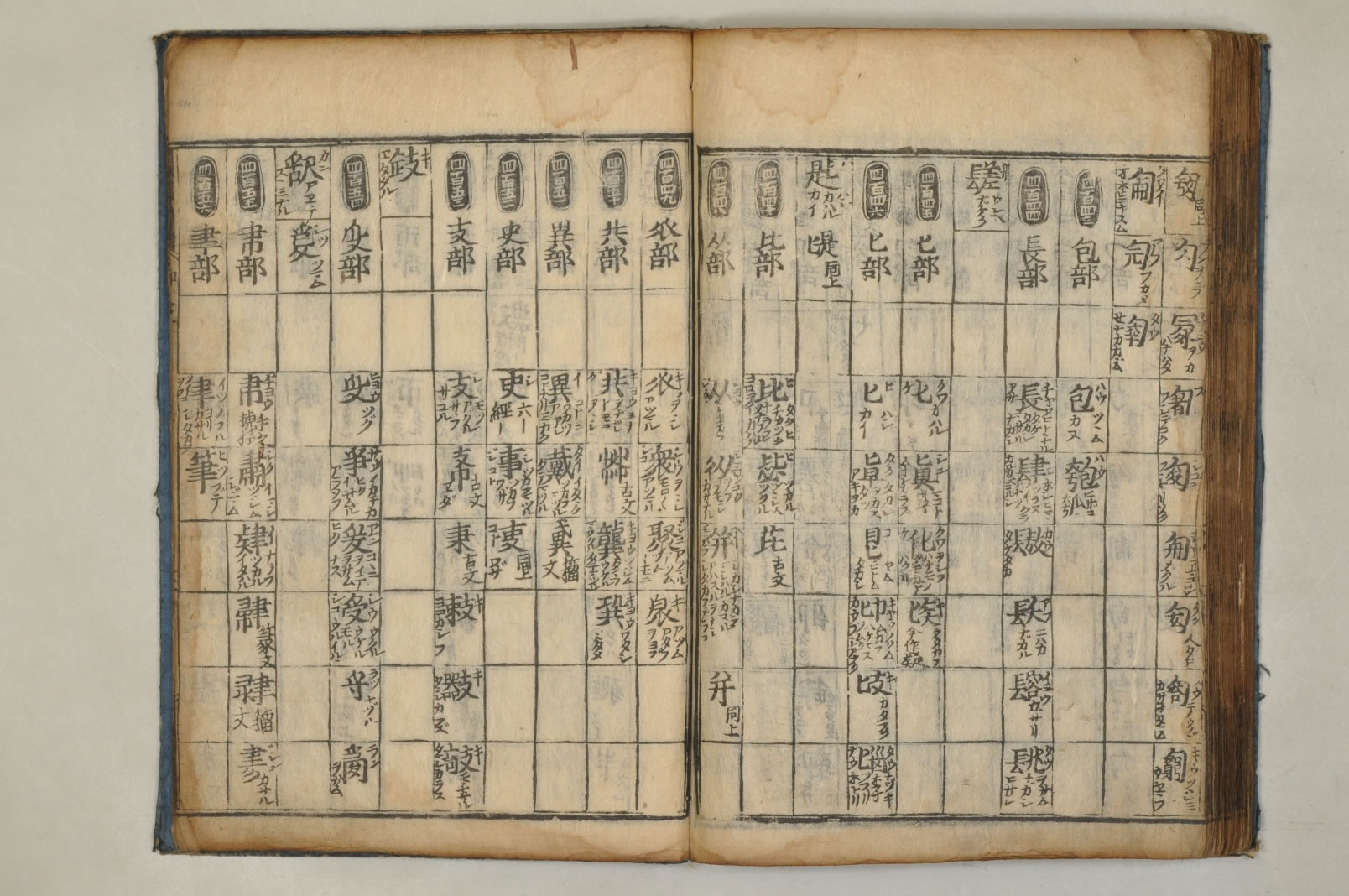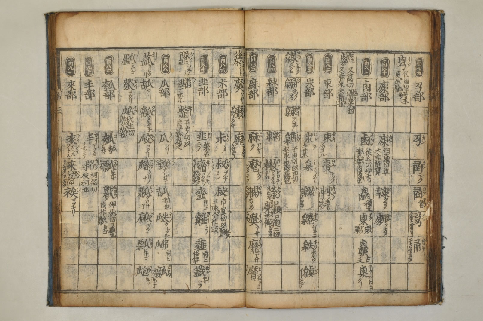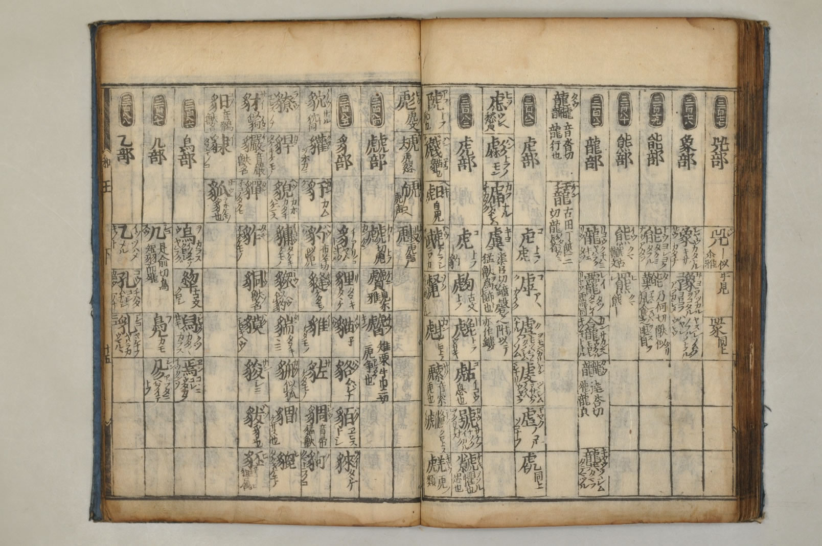 - 刊記:「此玉篇三冊者蓋改古/為新而益鳥跡川補不/□字乃壽捧者/〔以下蓮牌木記〕慶安五暦初春/新開板/書林余氏同梓」裏表紙見返識語:「文政四年巳江戸増上寺御防方/半年番之首元四日市ニテ求之者也/此主也荒井甚右エ門/其後主佐久間左門持用/文政十三年寅年三月日」丁数:38、39、36丁
