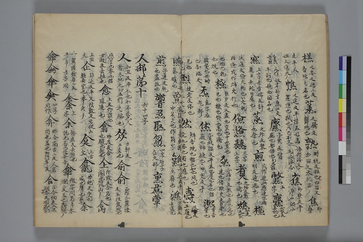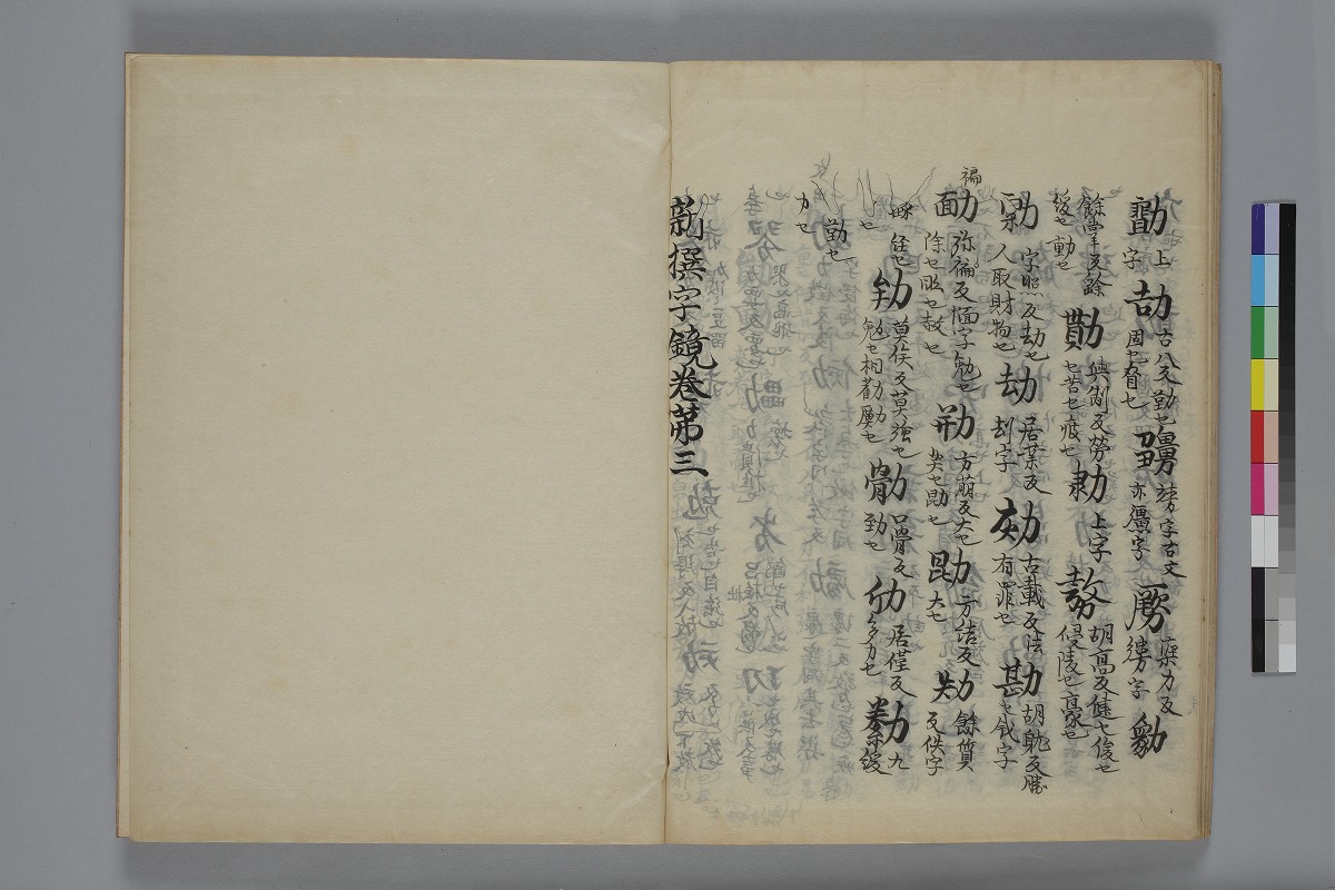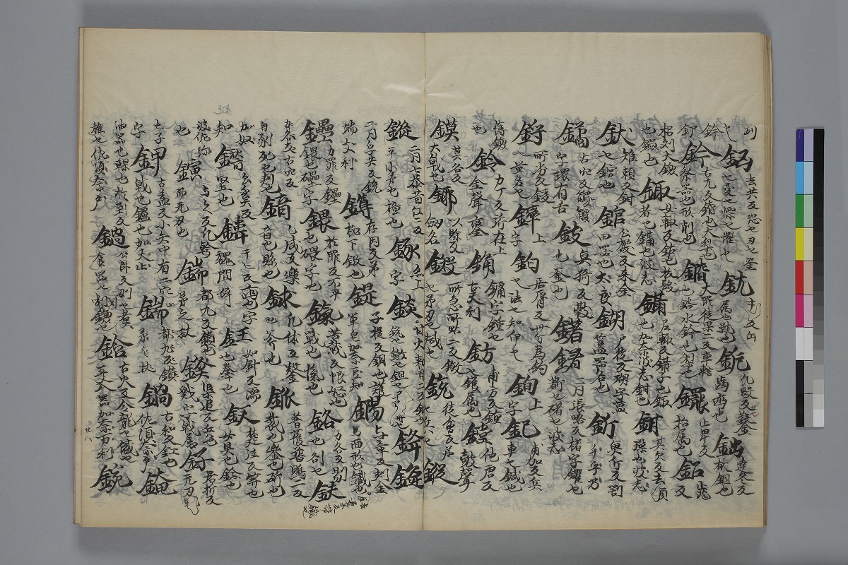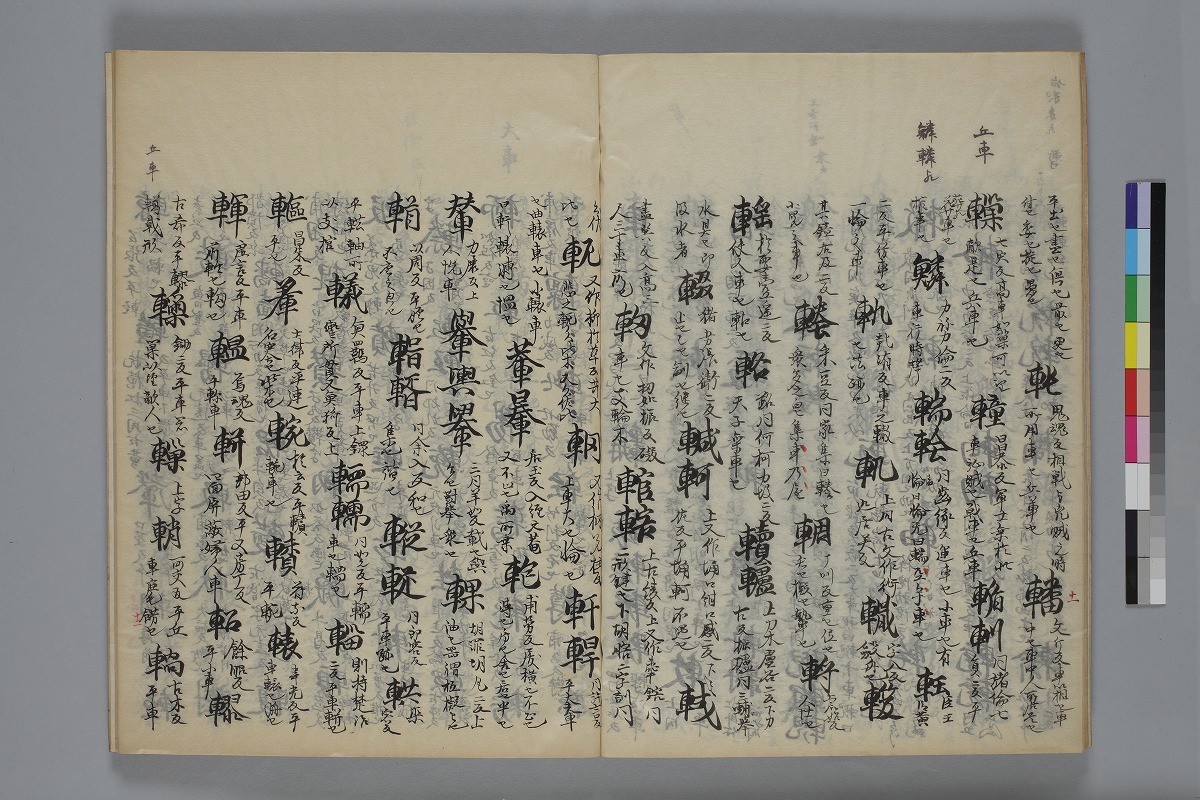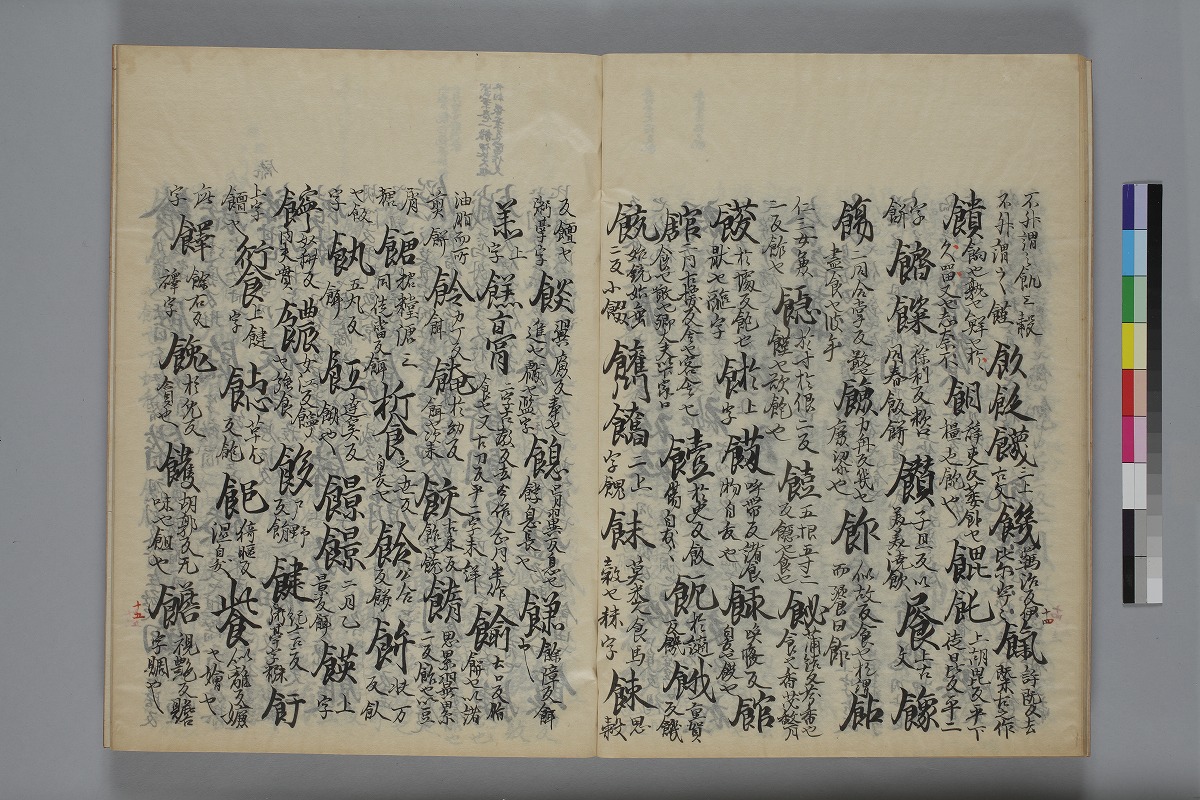 - 巻第一奥書:「天治元年(甲/辰)五月下旬書冩之畢/法隆寺一切経書冩之次為字決諸人各一巻書冩之中/此巻是五師静因之分以矇筆所冩了/[以下小字]安政四年四月念二日以禿筆摸冩了藤原春村」巻第二奥書:「天治元年(甲/辰)五月二日(戊/寅)書冩畢法隆寺一切/經音義䉼也為自他法界平等利益勸進僧林幸/文政七年甲申三月以天治真夲摸冩拠藏本比校之岡正武/天保三年正月以岡氏本謄冩之黒河春村/[以下朱書]同十三年十一月據伴信友所影冩之真本令一校了」巻第四奥書:「天保十三年壬寅八月十六日以伴信友夲影冩/六十九老人螢澤齋岡正武/同年十月以岡氏本令摸冩了黒河春村」巻第五奥書:「[以下小字]天治元年四月廿九日為今法久住法隆寺一切經蔵利書冩執筆任覺□之/一校了」巻第七奥書:「一交了/天治元(才次/甲辰)五月十九日交了」巻第一:1、36丁、巻第二:1、30丁、巻第三:1、28丁、巻第四:1、27丁、巻第五:1、27丁、巻第六:1、33丁、巻第七:37、1丁