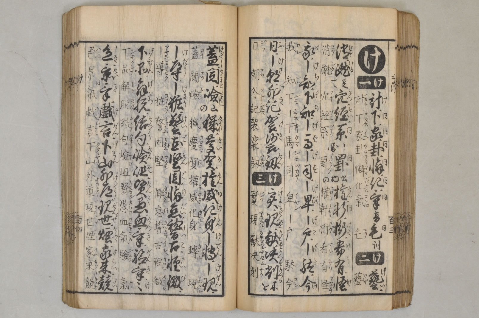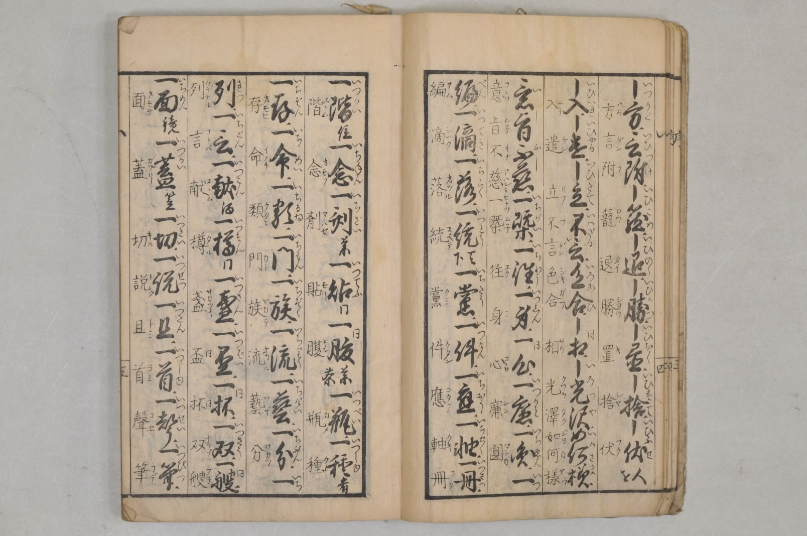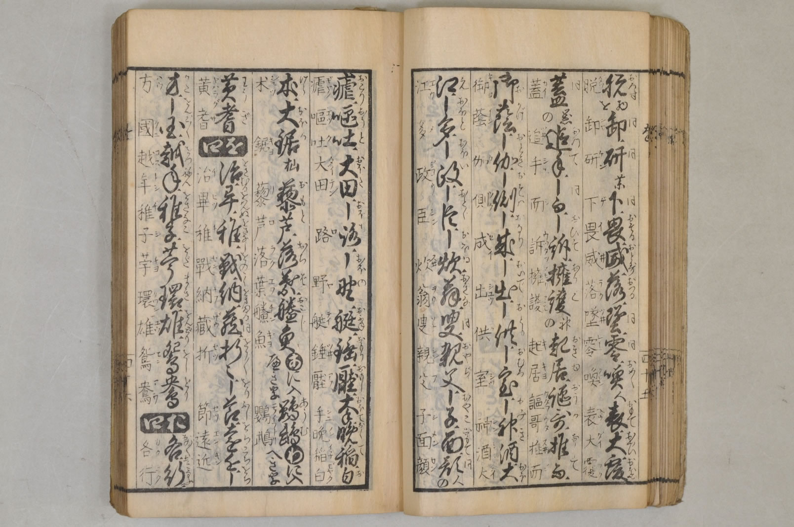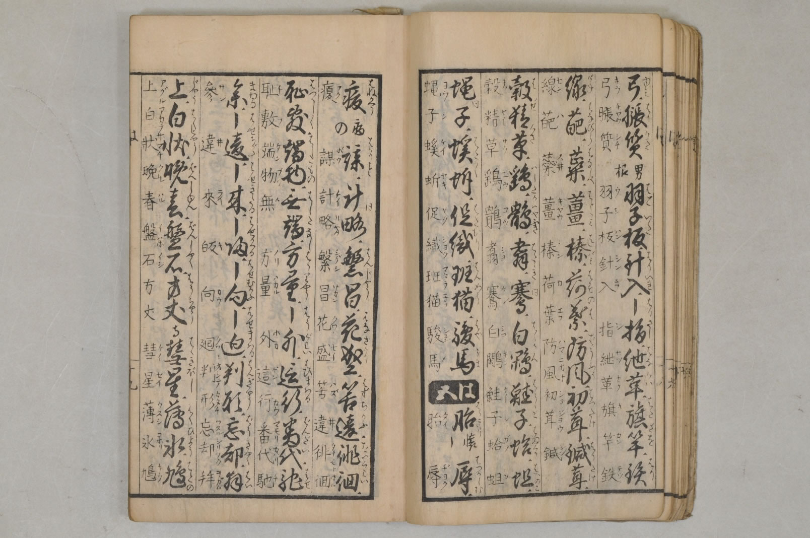 - 見返:「林良材校正/田中御蔭校合/文政壬午新刻/(真草/兩点)早字引大正全/平山文友集書/會藩秦喜之藏板」序:「文政五年といふ/としの水無月の十日余りの五日の日かく/いふははやしの良材」