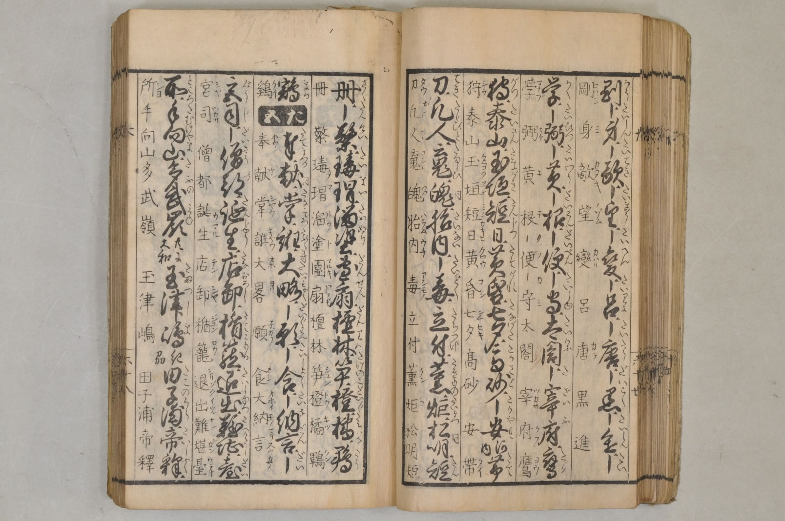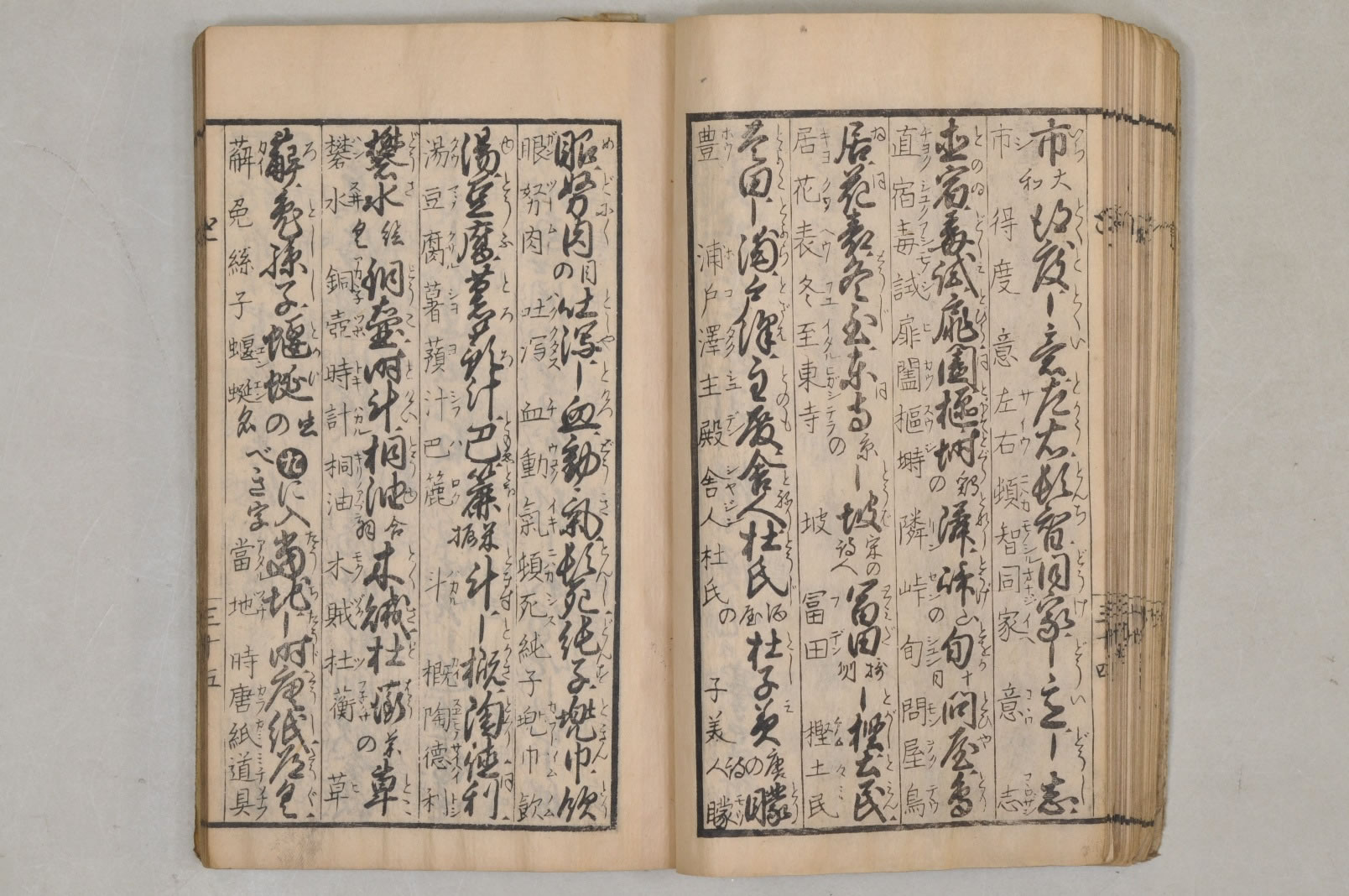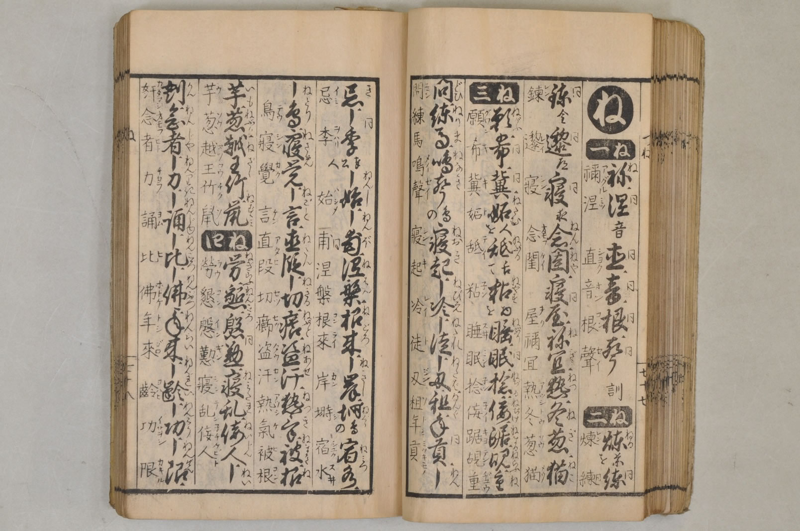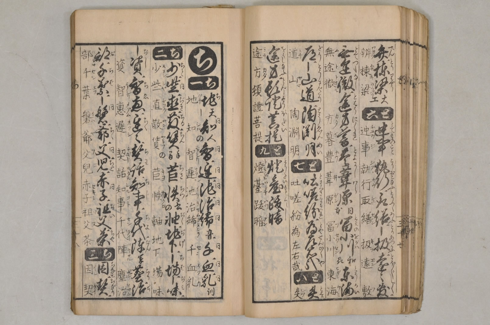 - 見返:「林良材校正/田中御蔭校合/文政壬午新刻/(真草/兩点)早字引大正全/平山文友集書/會藩秦喜之藏板」序:「文政五年といふ/としの水無月の十日余りの五日の日かく/いふははやしの良材」