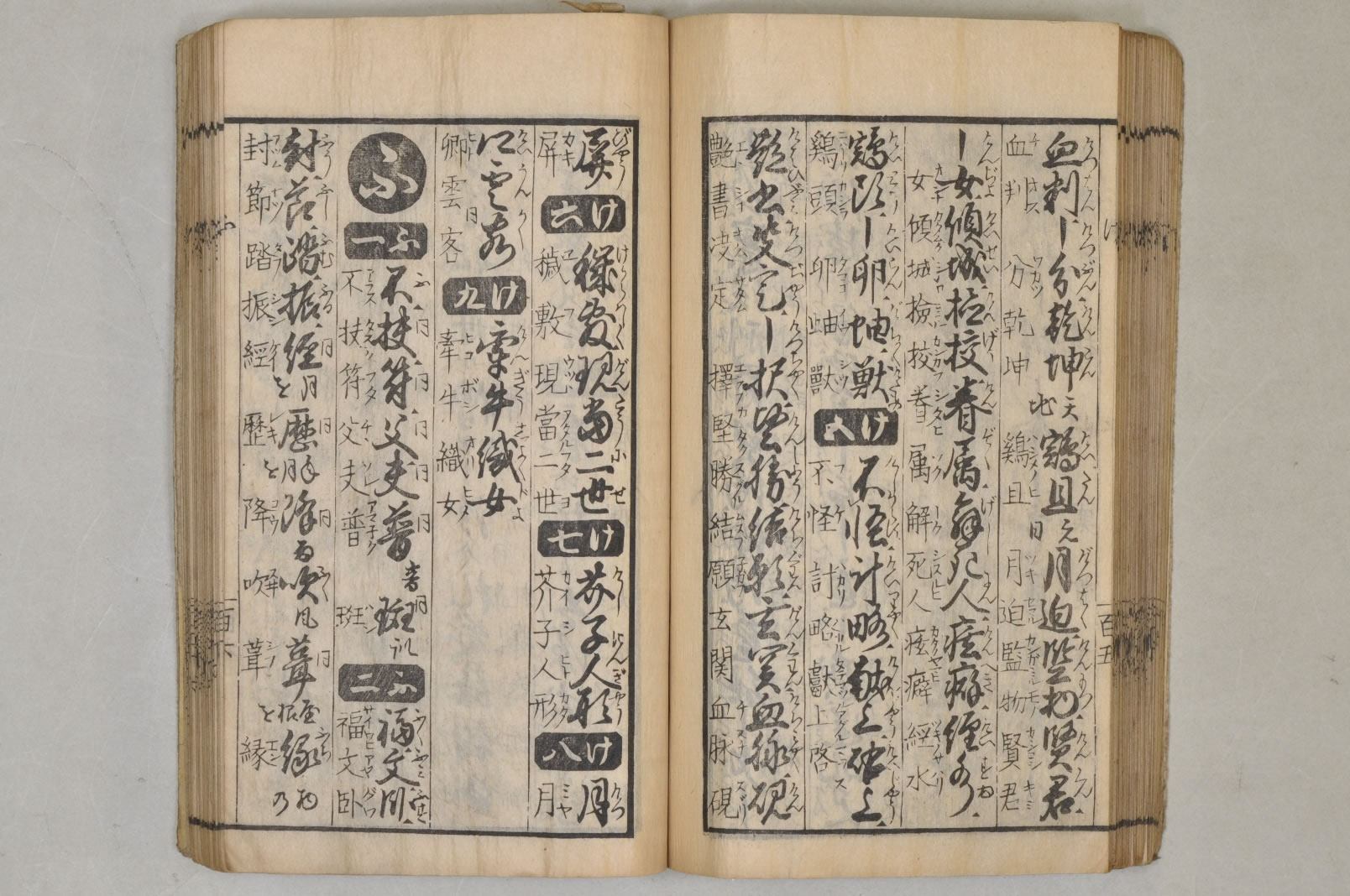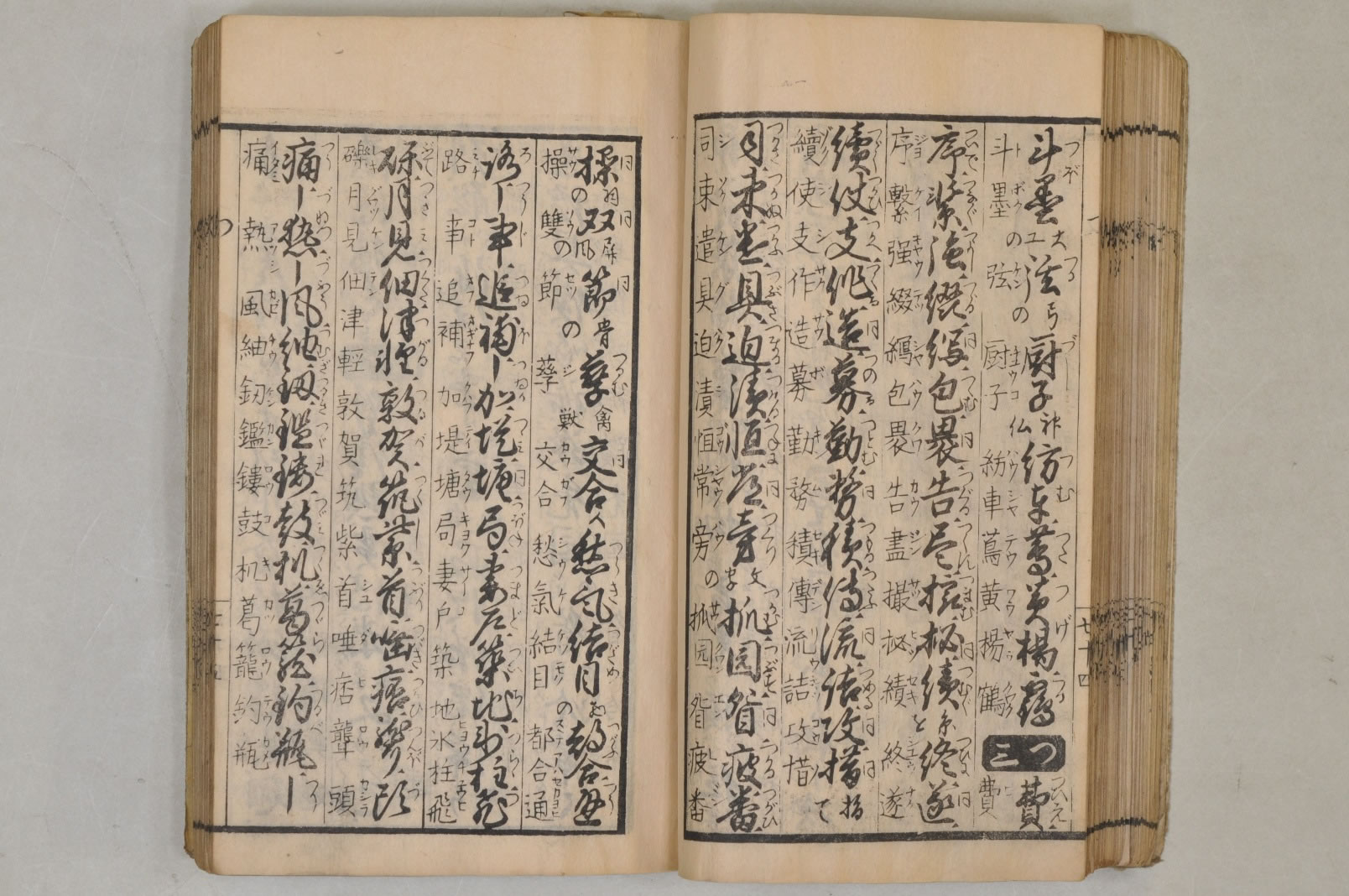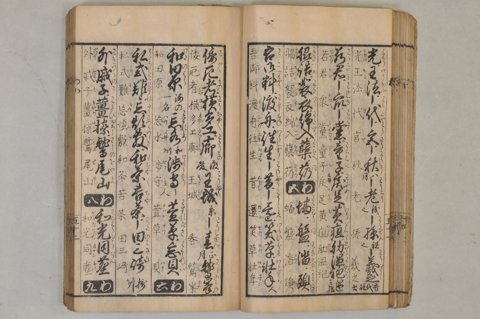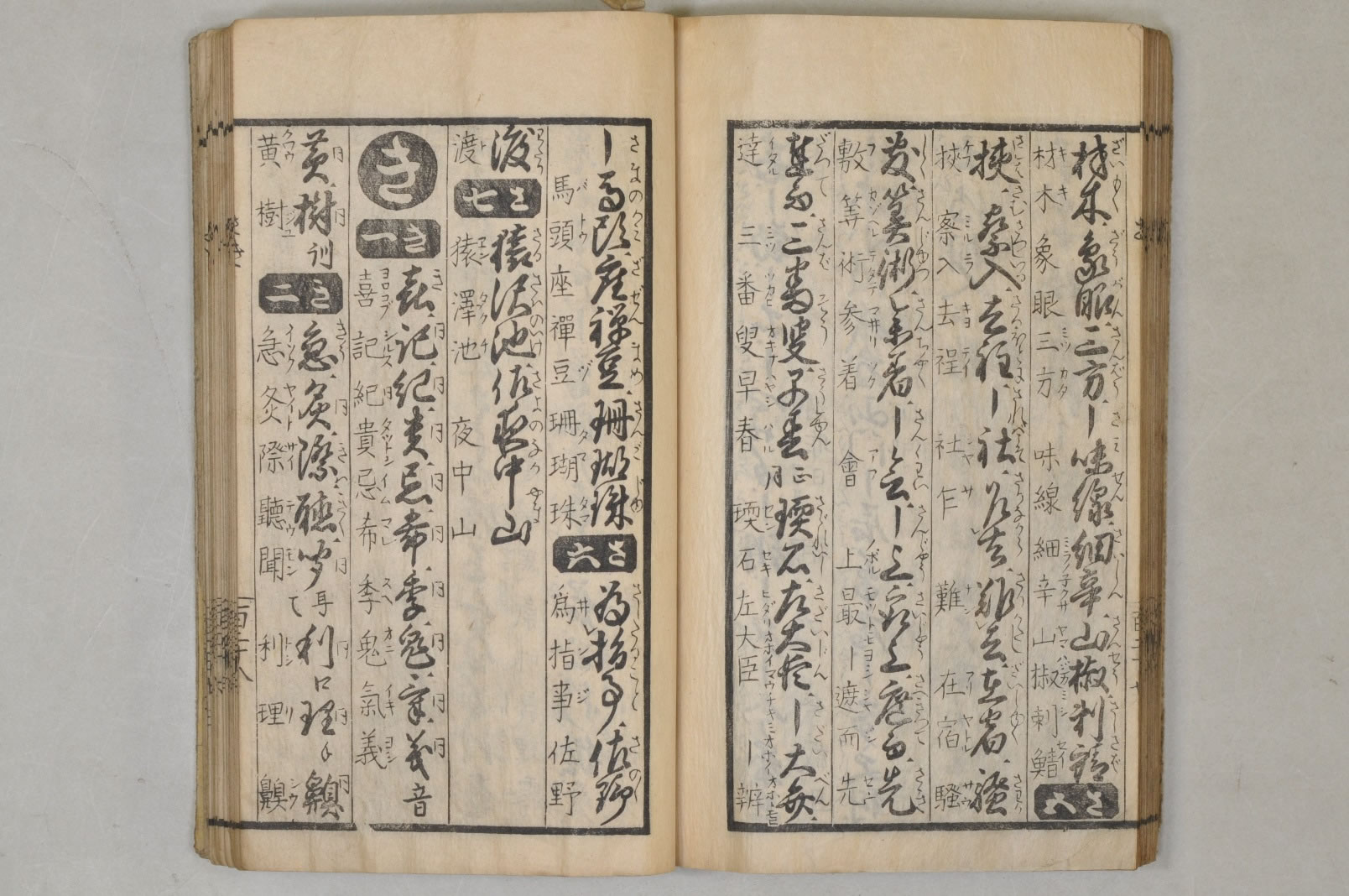 - 見返:「林良材校正/田中御蔭校合/文政壬午新刻/(真草/兩点)早字引大正全/平山文友集書/會藩秦喜之藏板」序:「文政五年といふ/としの水無月の十日余りの五日の日かく/いふははやしの良材」