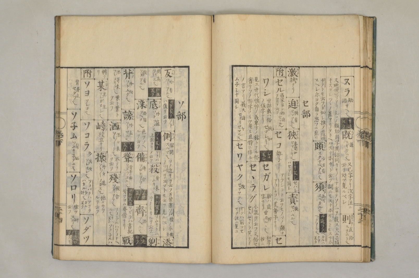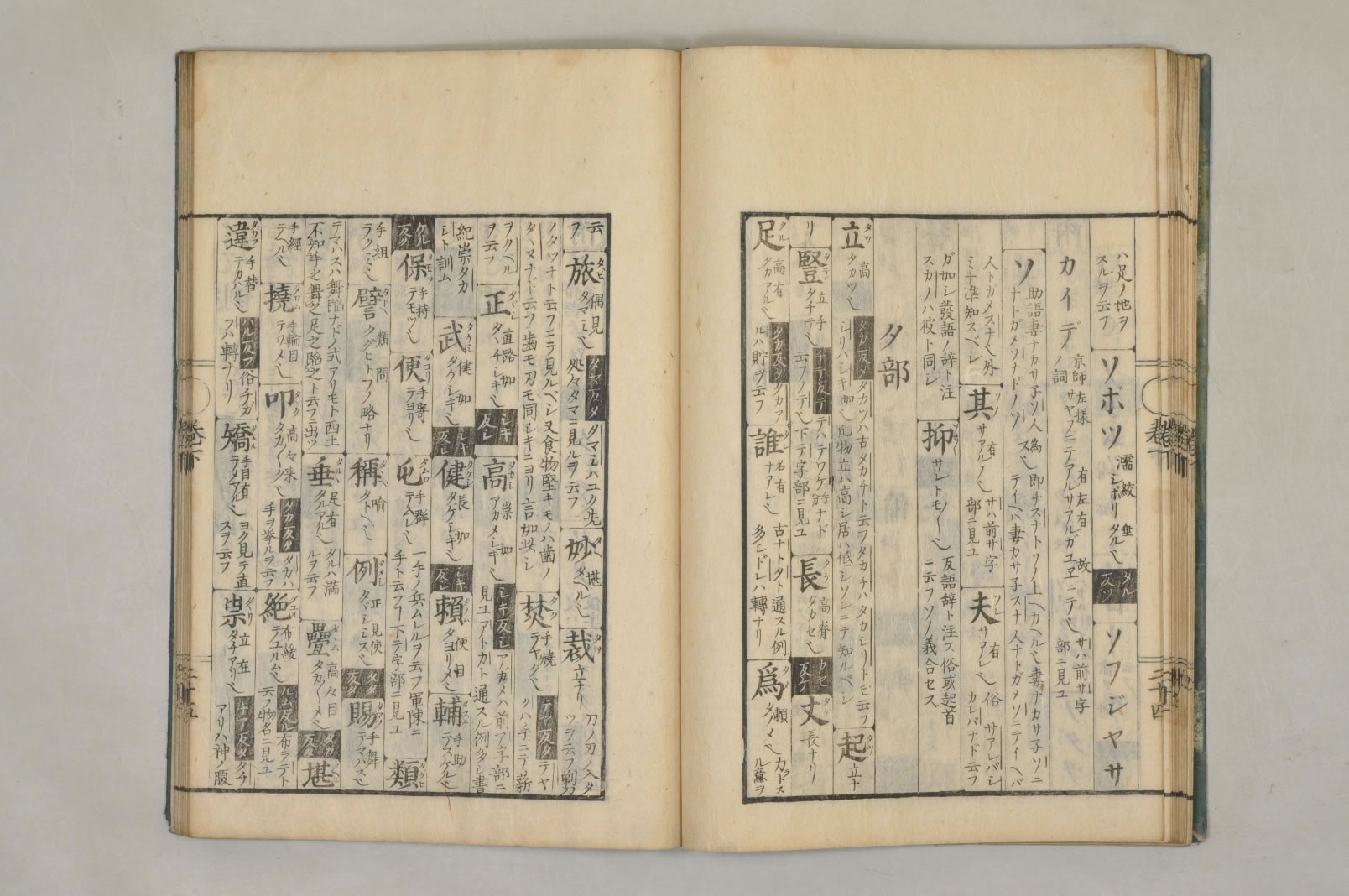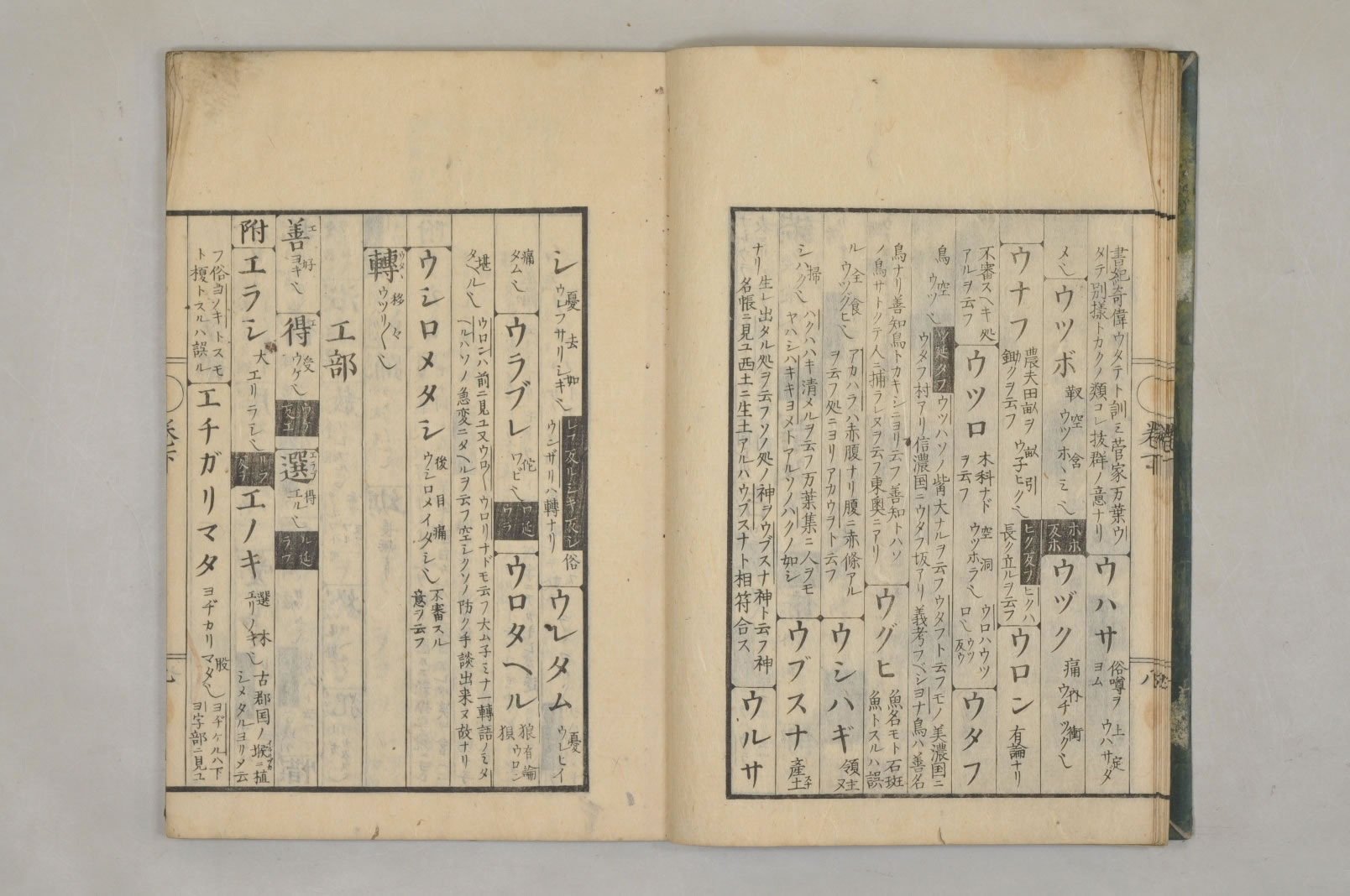 - 見返:「服部先生著/和訓六帖全二冊/東都書林名山閣繍梓」序:「癸巳孟夏/松崎復撰」凡例:「乙未仲春/宜識」巻頭の著者表示:「信濃服部宜著/男厚校」奥附:「弘化三年丙午季春完刻/書房/京都三条通舛屋町出雲寺文次郎/大坂心齋橋通安堂寺町秋田屋太右衛門/同心齋橋通北久太郎町河内屋喜兵衛/同心齋橋通博勞町同茂兵衛/江戸日本橋通一丁目須原屋茂兵衛/同日本橋通二丁目山城屋佐兵衛/同芝神明前岡田屋嘉七/同同所和泉屋吉兵衛梓/同本町三丁目同善兵衛/同槫正町同半兵衛」 上:3、2、47丁、下:53丁
