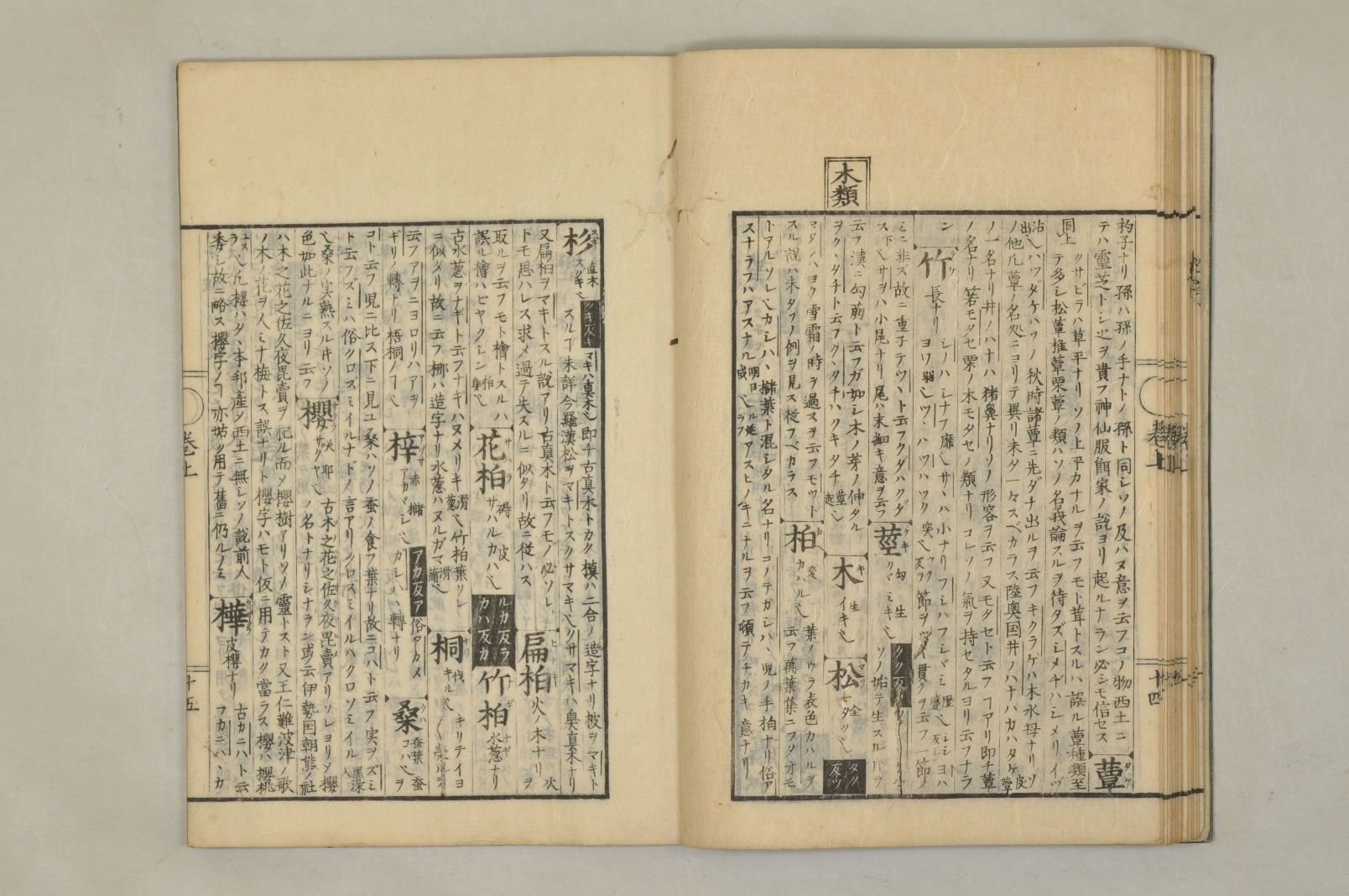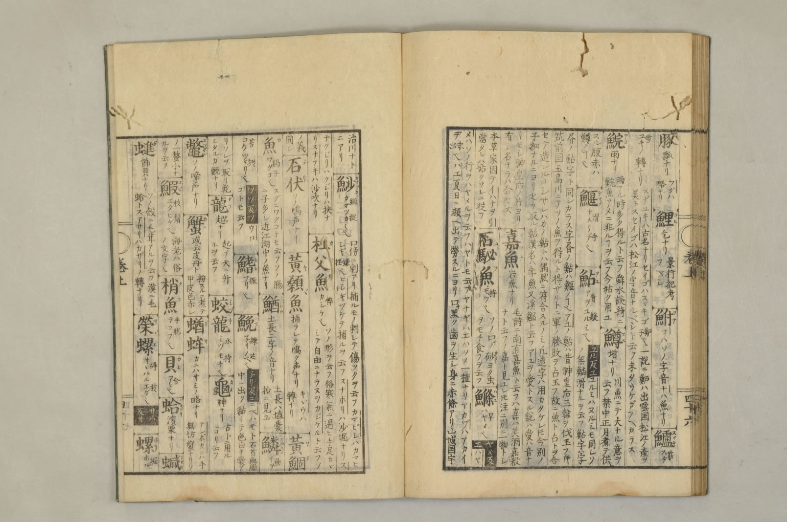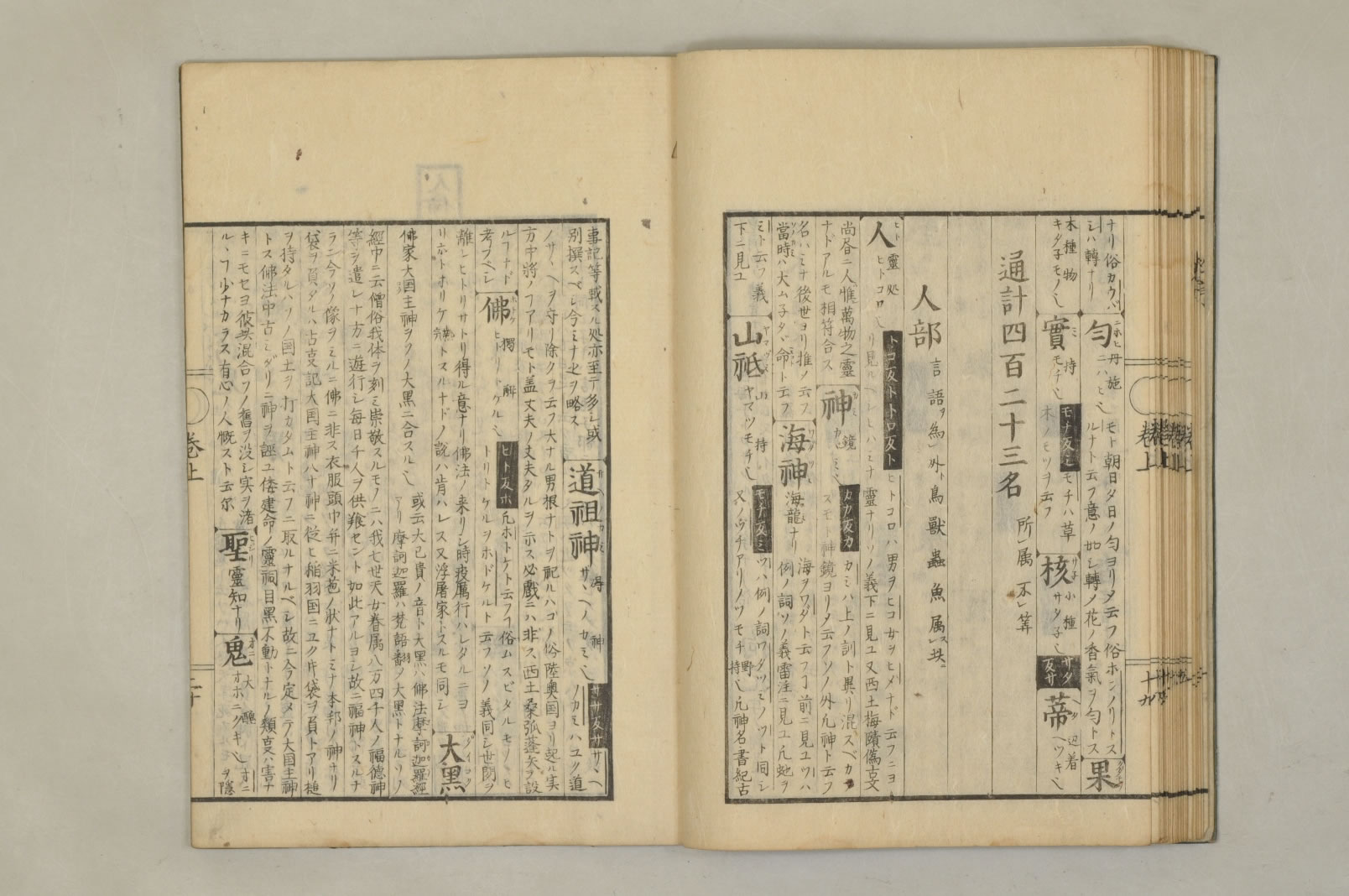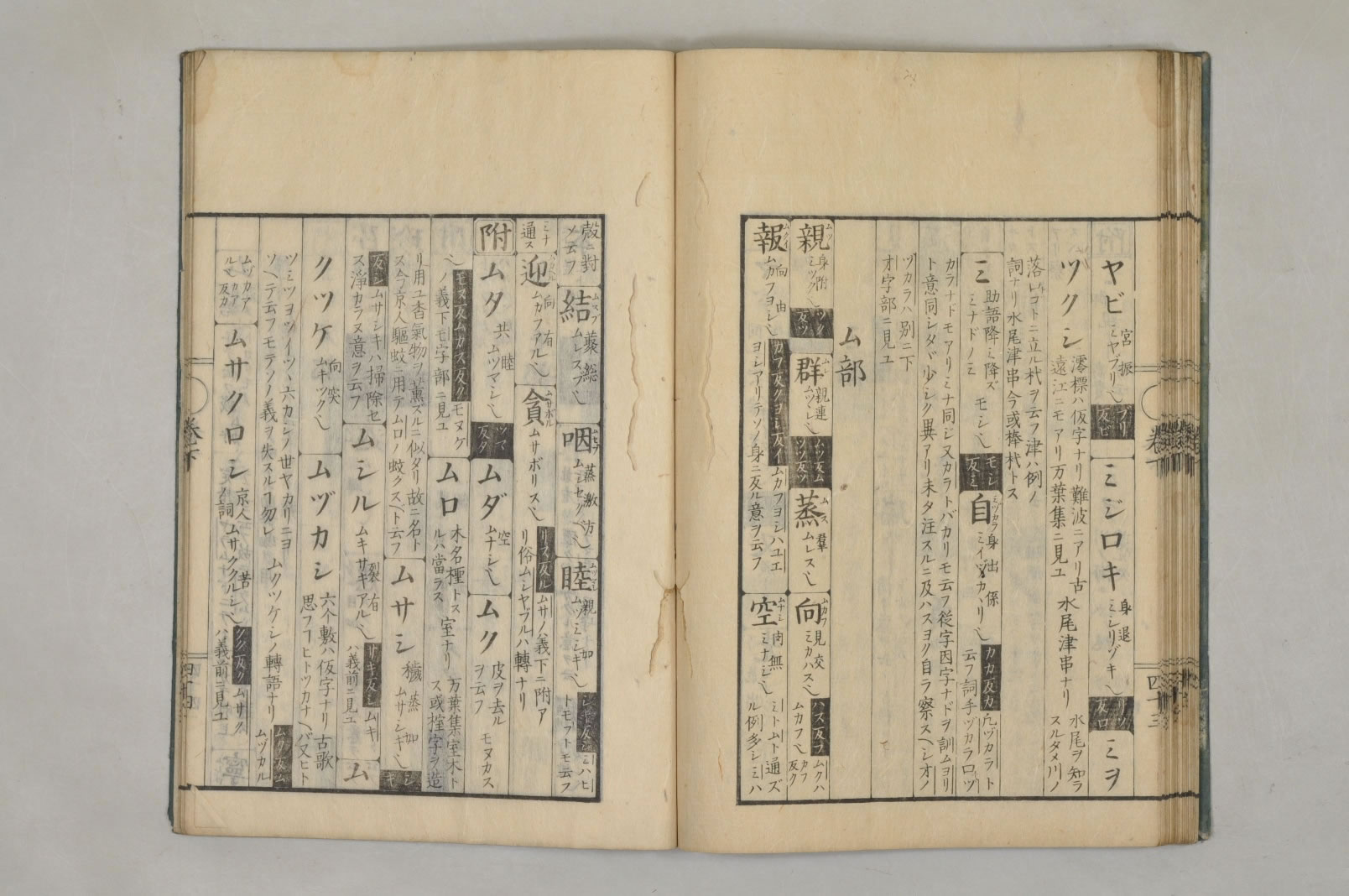 - 見返:「服部先生著/和訓六帖全二冊/東都書林名山閣繍梓」序:「癸巳孟夏/松崎復撰」凡例:「乙未仲春/宜識」巻頭の著者表示:「信濃服部宜著/男厚校」奥附:「弘化三年丙午季春完刻/書房/京都三条通舛屋町出雲寺文次郎/大坂心齋橋通安堂寺町秋田屋太右衛門/同心齋橋通北久太郎町河内屋喜兵衛/同心齋橋通博勞町同茂兵衛/江戸日本橋通一丁目須原屋茂兵衛/同日本橋通二丁目山城屋佐兵衛/同芝神明前岡田屋嘉七/同同所和泉屋吉兵衛梓/同本町三丁目同善兵衛/同槫正町同半兵衛」 上:3、2、47丁、下:53丁