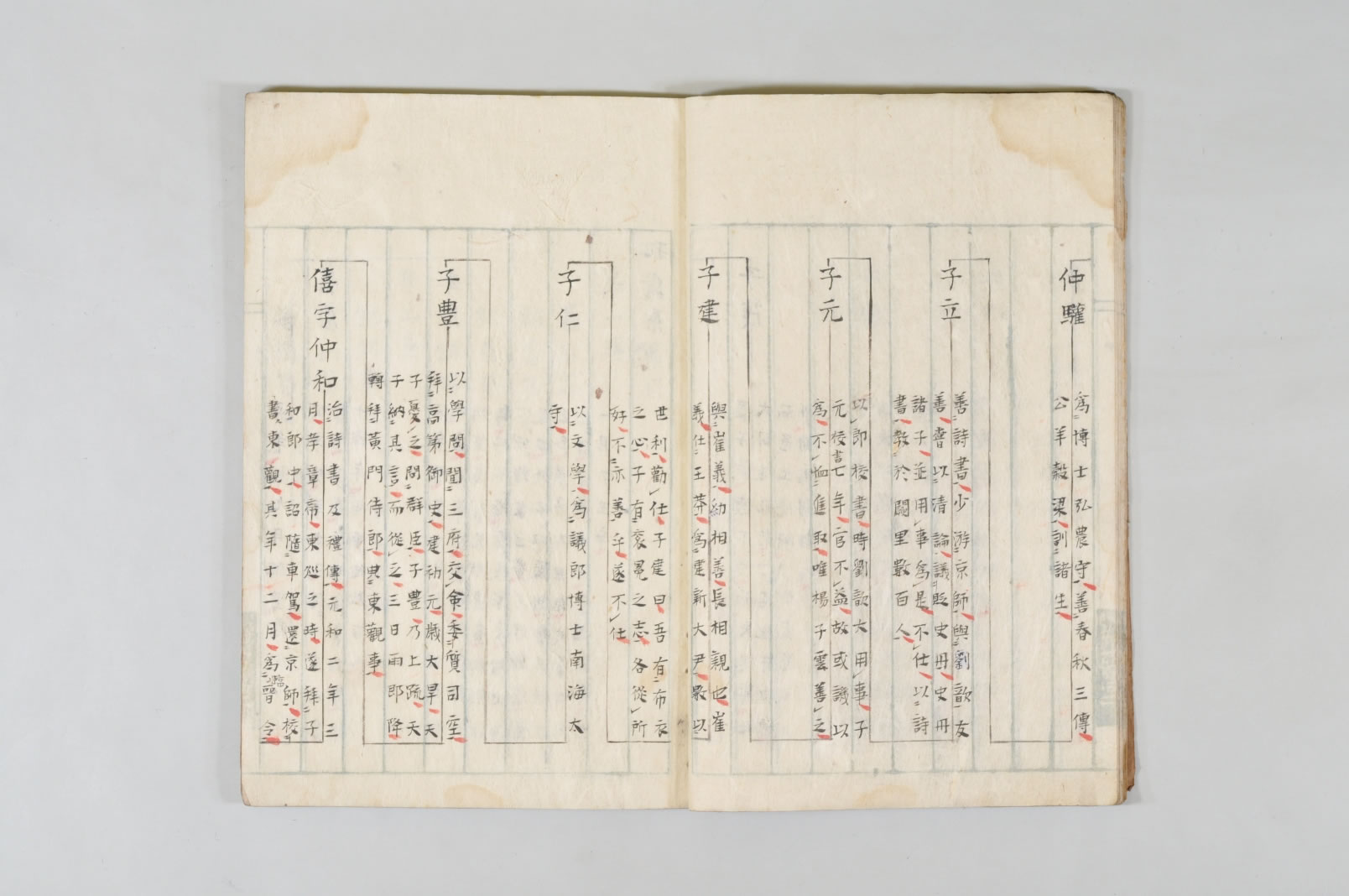 - 享和2年齋藤高壽序、寛政9年枩本孝序好古堂製罫紙に書写凡例、巻頭に「寺本十三郎」「寺本直道之印」朱印あり巻一:〔45〕丁、巻二:〔28〕丁、巻三:〔39〕丁、巻四:〔27〕丁、巻五:〔16〕丁、巻六:〔27〕丁
