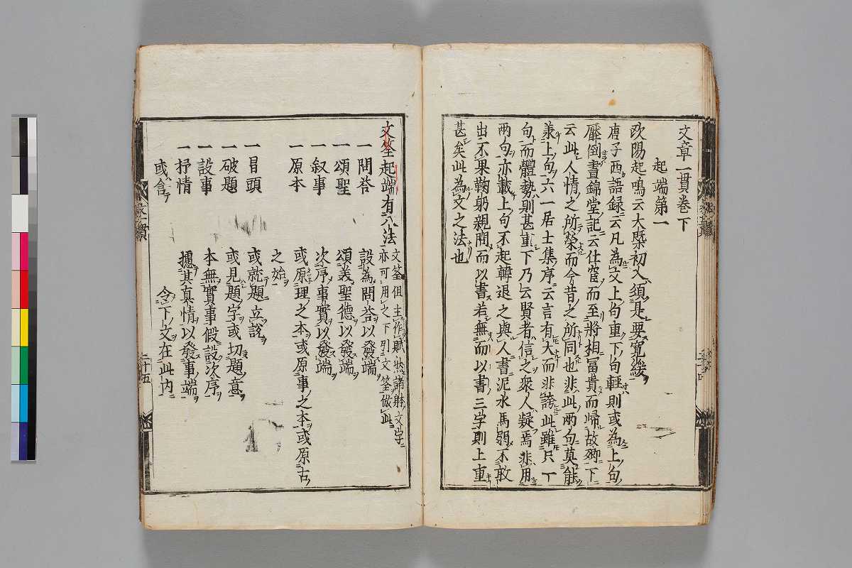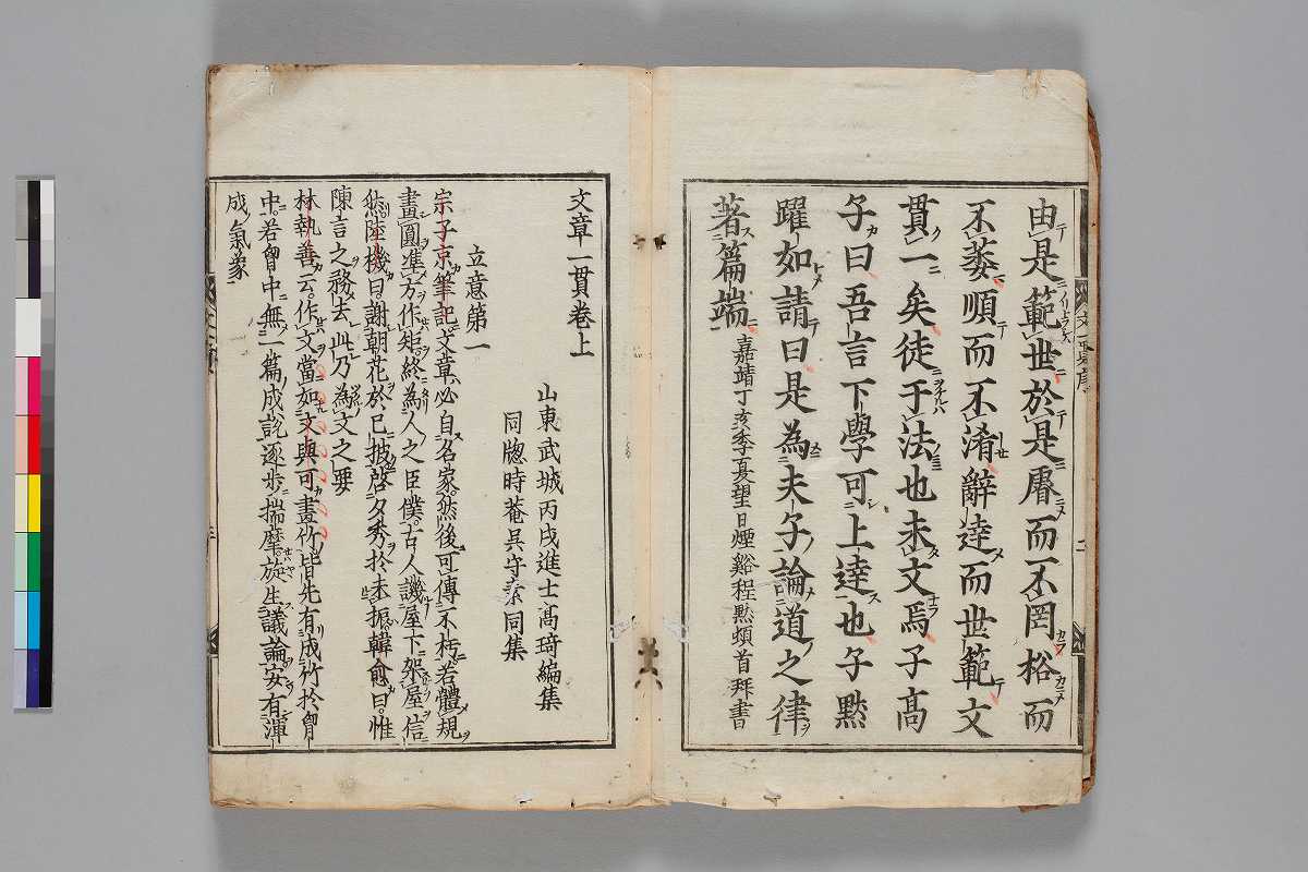 - 序:「嘉靖丁亥季夏望日煙谿程黙頓首拝書」巻頭の著者表示:「山東武城丙戌進士高琦編集/同牎時菴呉守素同集」刊記:「寛永廿一(甲/申)歳孟夏吉辰/二條通觀音町風月宗智刊行」印記:「月易高氏」「香竹堂圖書記」