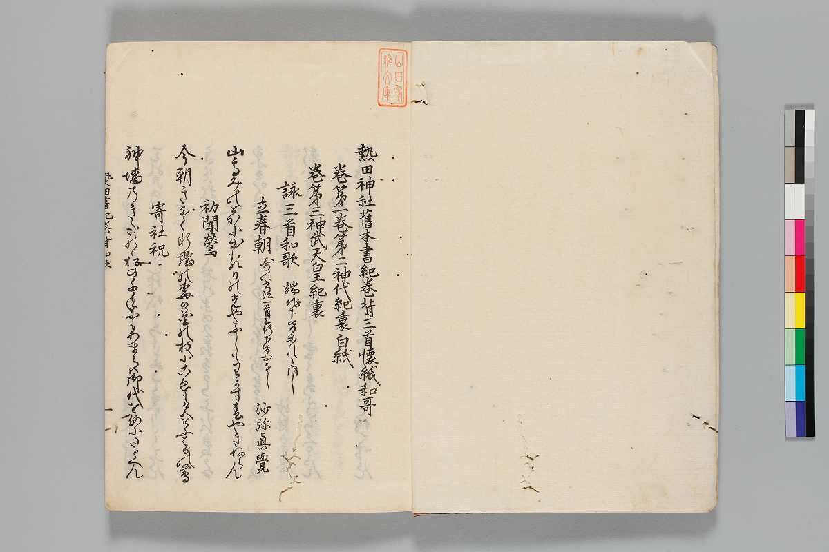 首題:熱田神社舊本書記巻背三首懐紙和哥