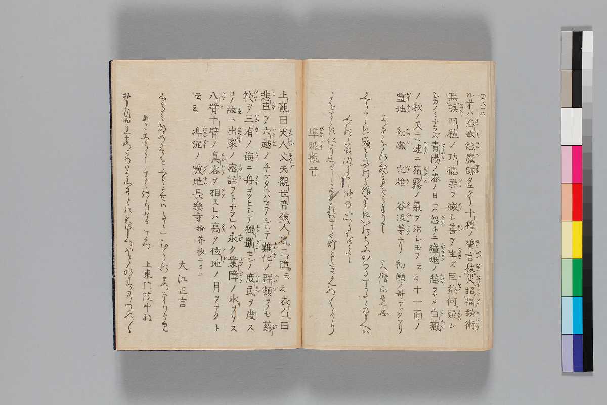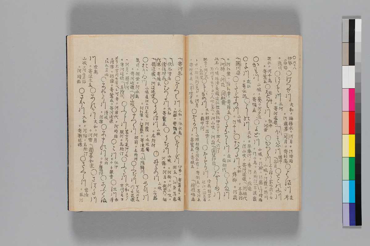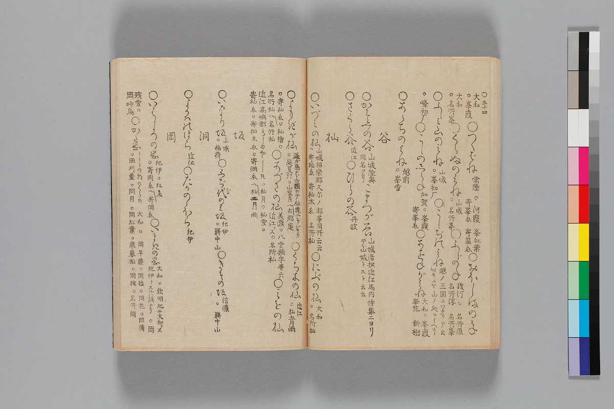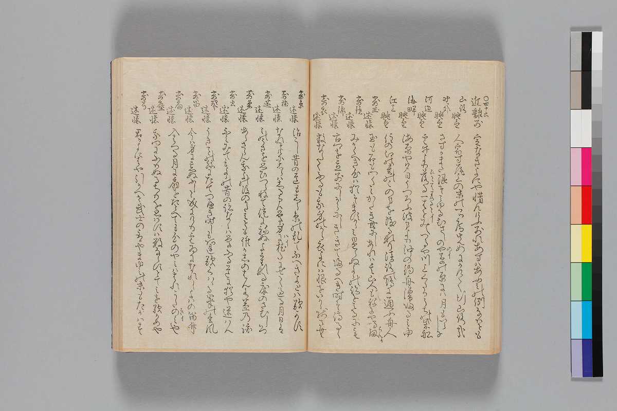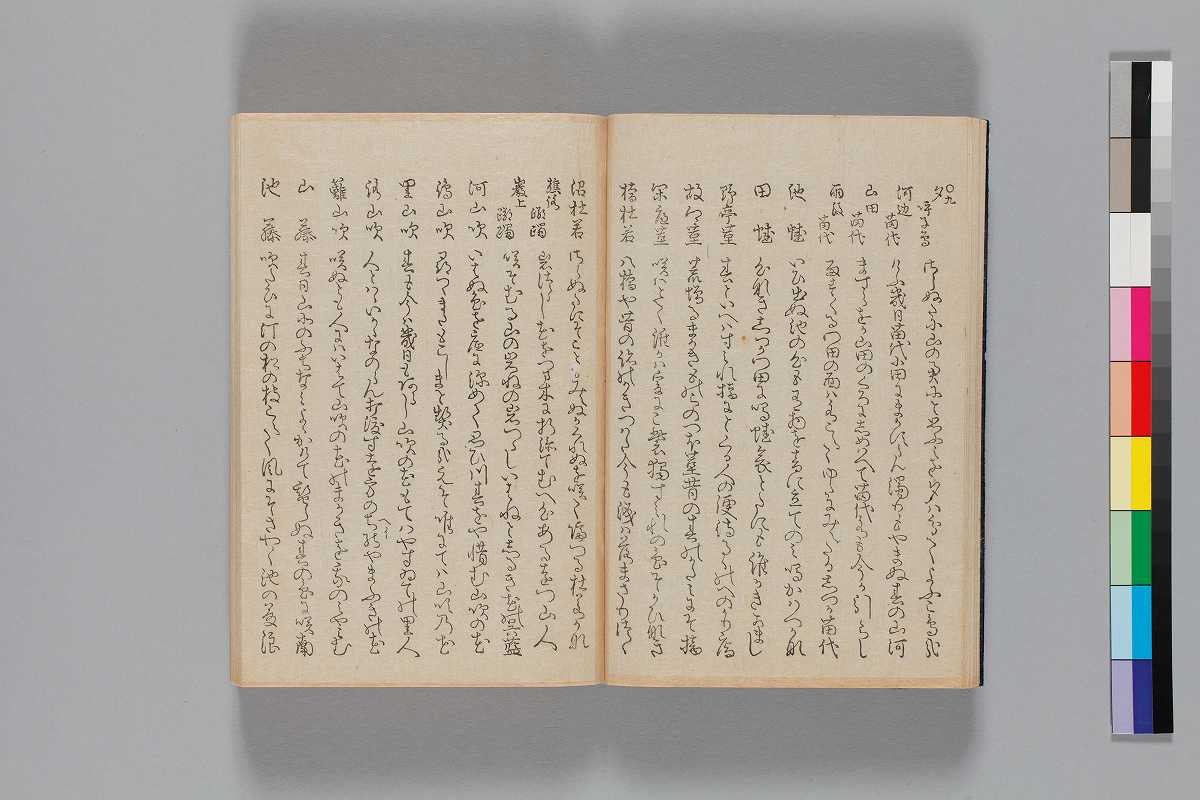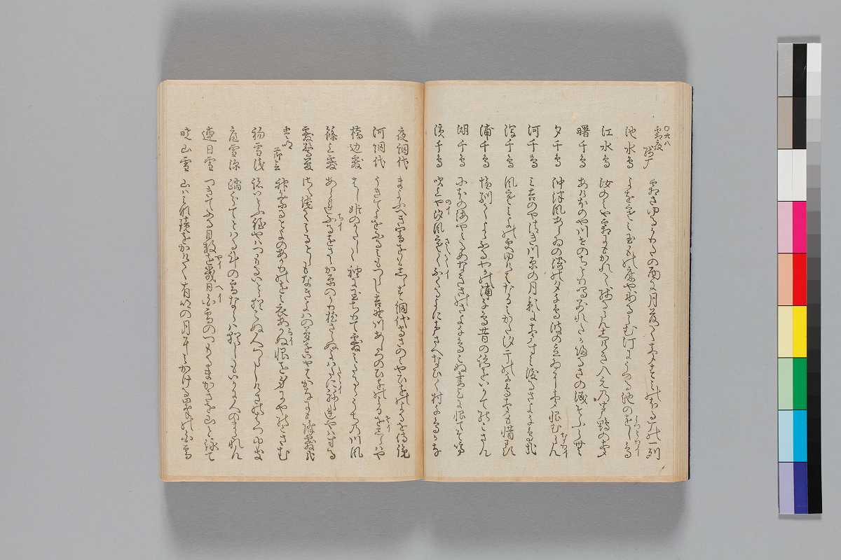 - 目録題:「師兼卿千首」「師兼卿千首和歌」序:「文化四丁夘年四月松本柳齊」巻頭の著者表示:「正二位行権大納言兼春宮大夫大学頭藤原朝臣師兼」奥附:「玉藻舘藏/文化八辛未歳正月刻成/三条通高倉東入町出雲寺文次郎/二条通富小路東入町吉田四郎右衞門」