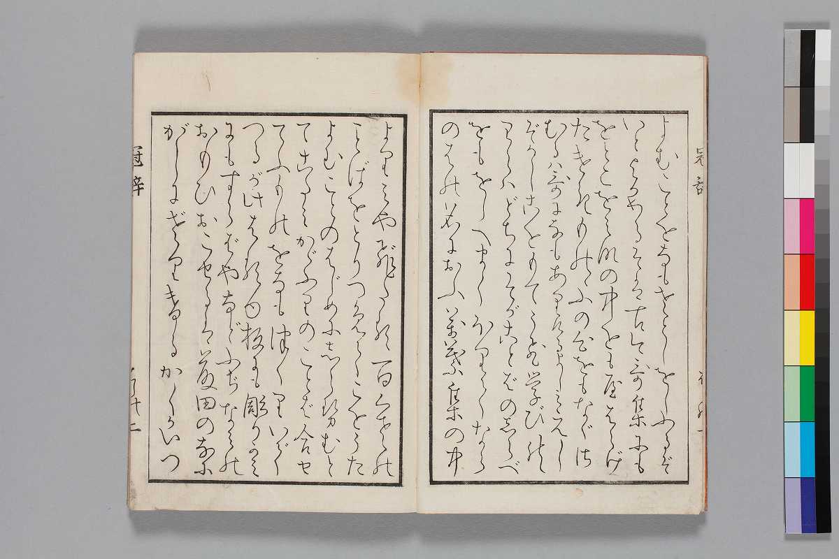 版心:「冠辞」序:「文政といふとしの十まり/ひととせむ月のはじめになも」刊記:「文政十一戌年睦月/京江堂藏版」朱書入あり