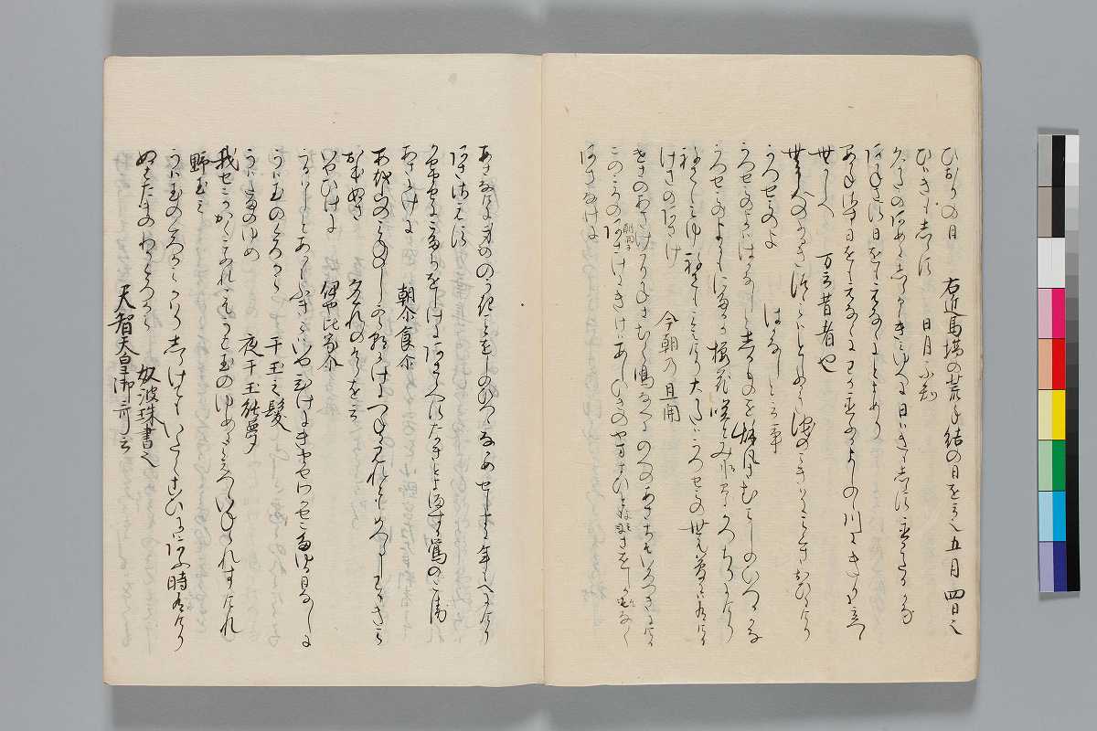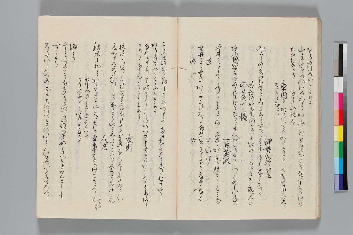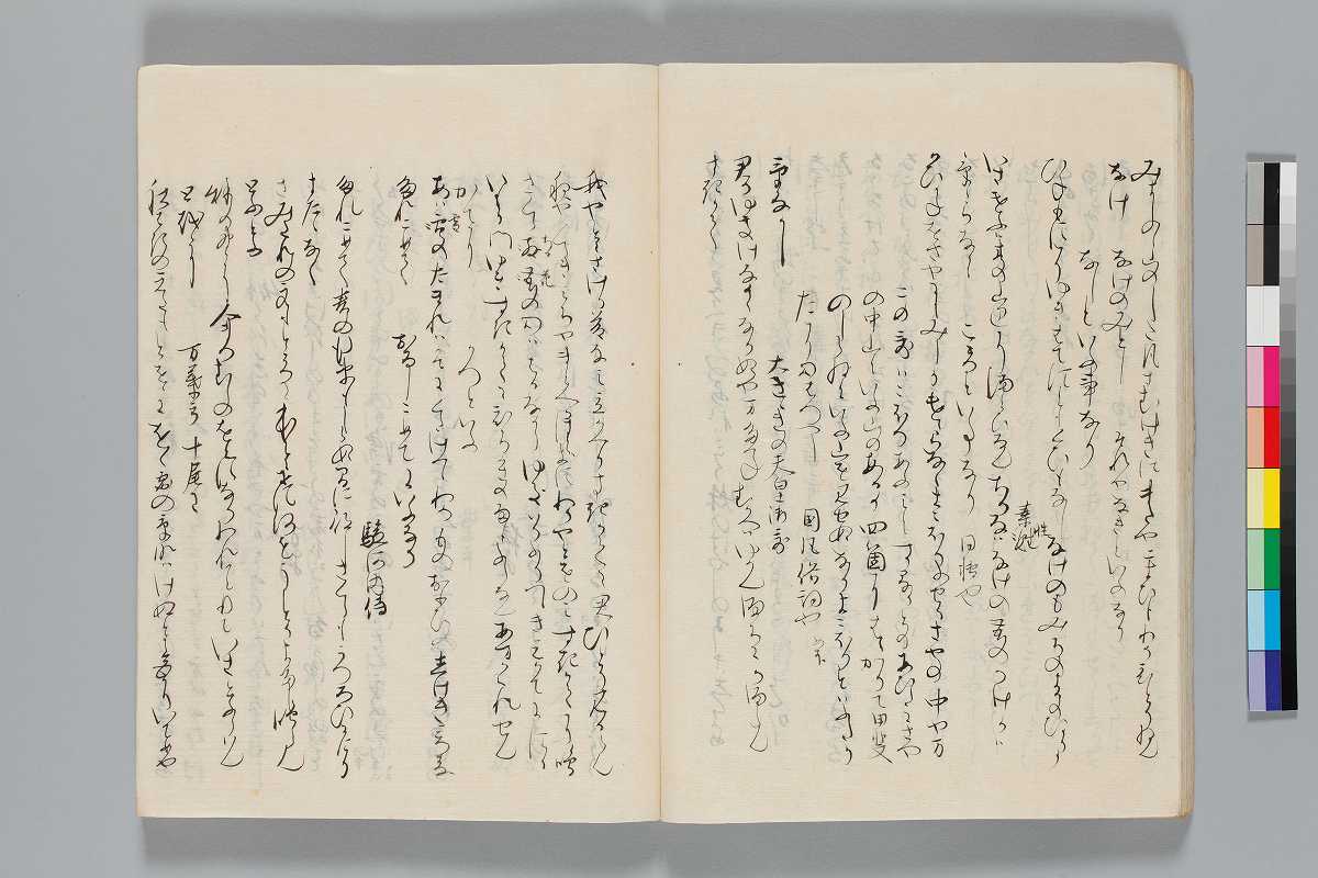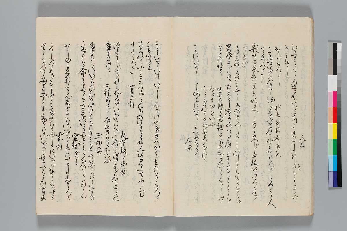 - 識語:「此綺語抄者正二位大納言藤原/仲實卿撰之/五家髄悩之第一也」「正二位権大納言藤原為家卿/以自筆之本書写之畢」「寛政五年十月中旬以権中納言雅威卿本冩之右中辨均光」印記:「日野柳原秘府圖書」