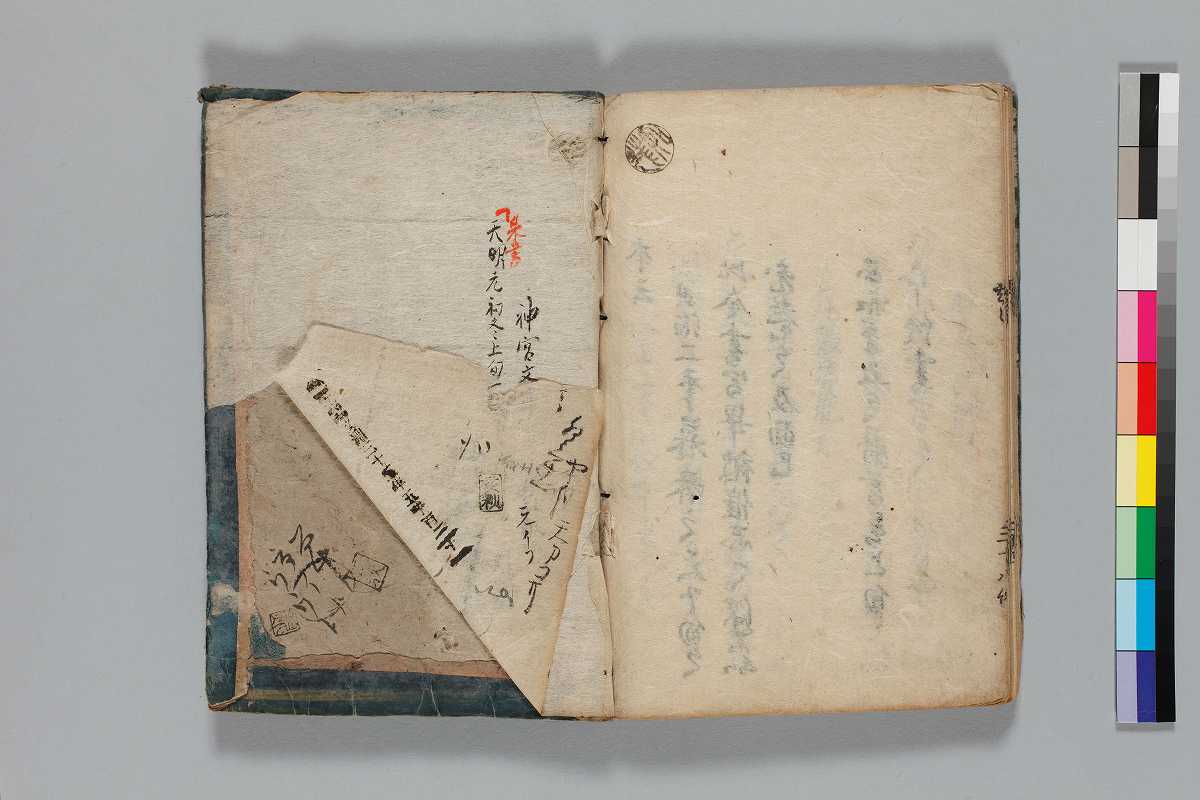 刻奥書:「本云/寳治二年暮春之天下旬之/比令書写畢被催志之深不知/老耄之及而已/正和第五之暦暮春上旬之依/令終書写之」巻末識語:「神宮文庫朱書ヲ写セリ〔以上朱筆〕」
