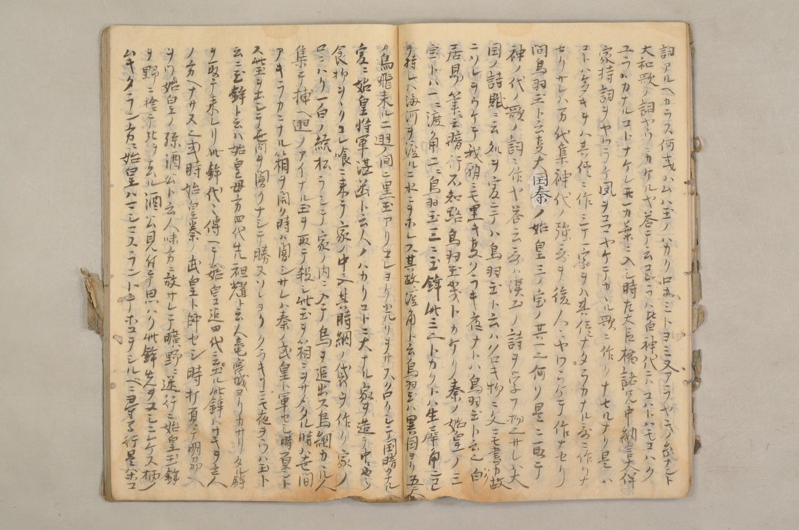 - 冒頭:「古今ニ三流アリ一ニハ定家二ニハ家隆三ニハ行家也」中巻奥書:「以為家卿之秘注書写之也依二条家之秘書不可/過之細々不可被外見應永十八年十月十六日」印記:「藤原實道□□」