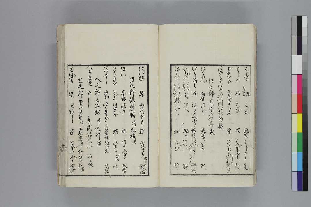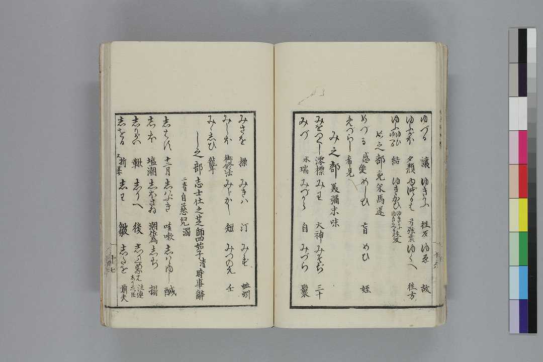 - 序題:「山路栞」見返:「橘千蔭大人著/(古葉/かな遣)山路の栞/松柏堂梓」序:「天保七丙申九月上浣/秋田屈斎三木評」奥附:「京都三条通升屋町出雲寺文次郎/東都横山町壱丁目出雲寺萬次郎/求板」