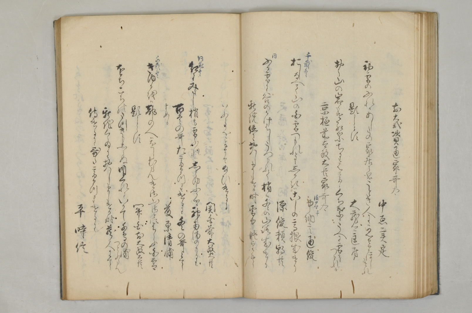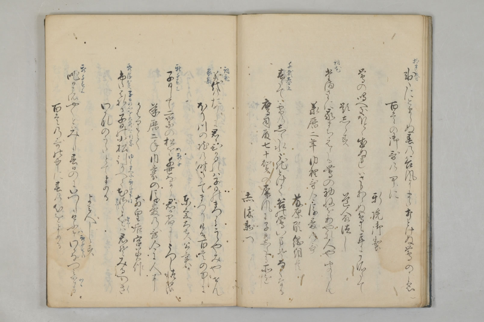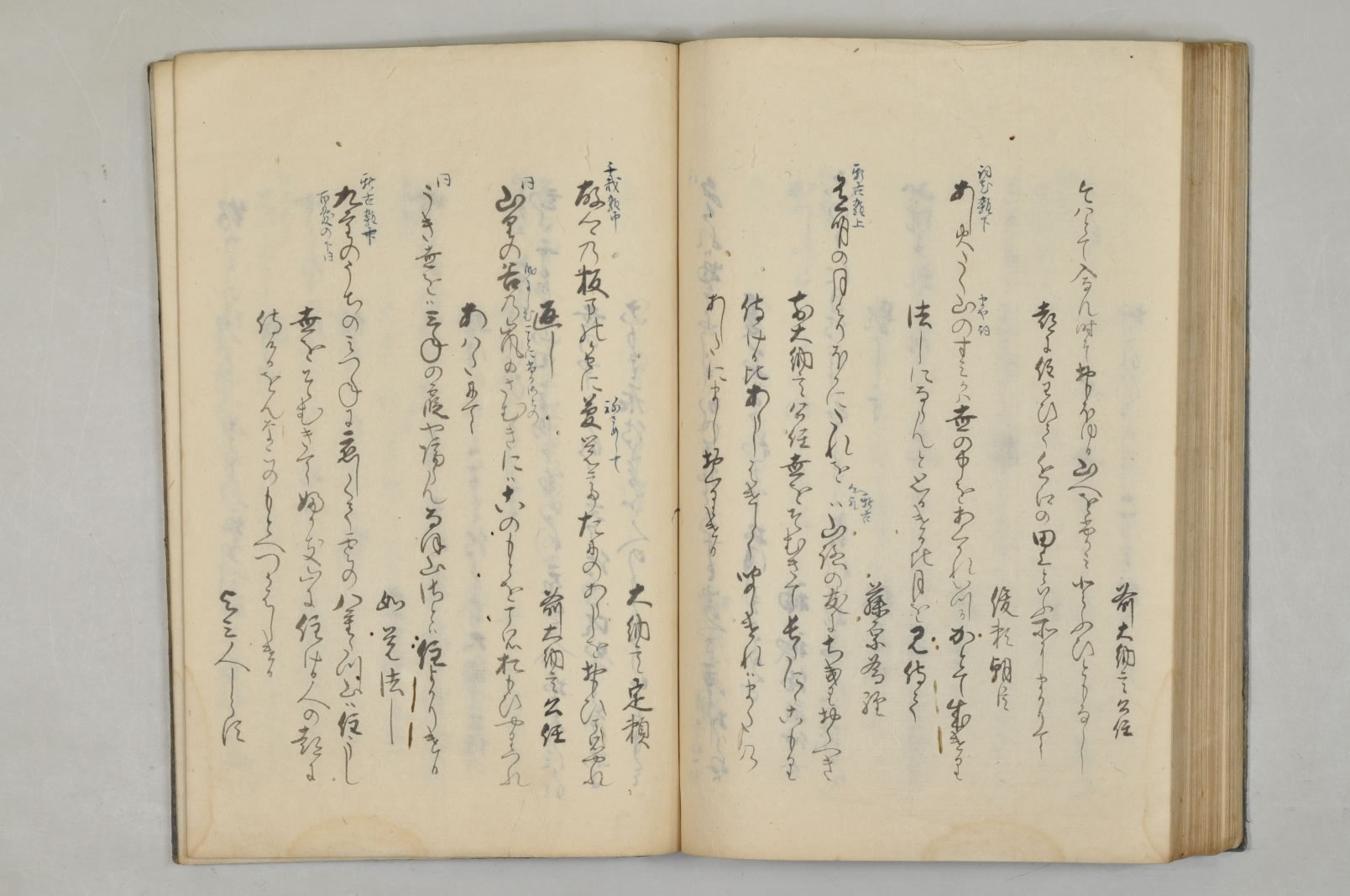 - 闕本巻19―巻20を欠く扉右上識語:「〔以下藍字〕蘆庵所持後葉集/嘉永七寅八月写畢紀直方」藍字書入あり