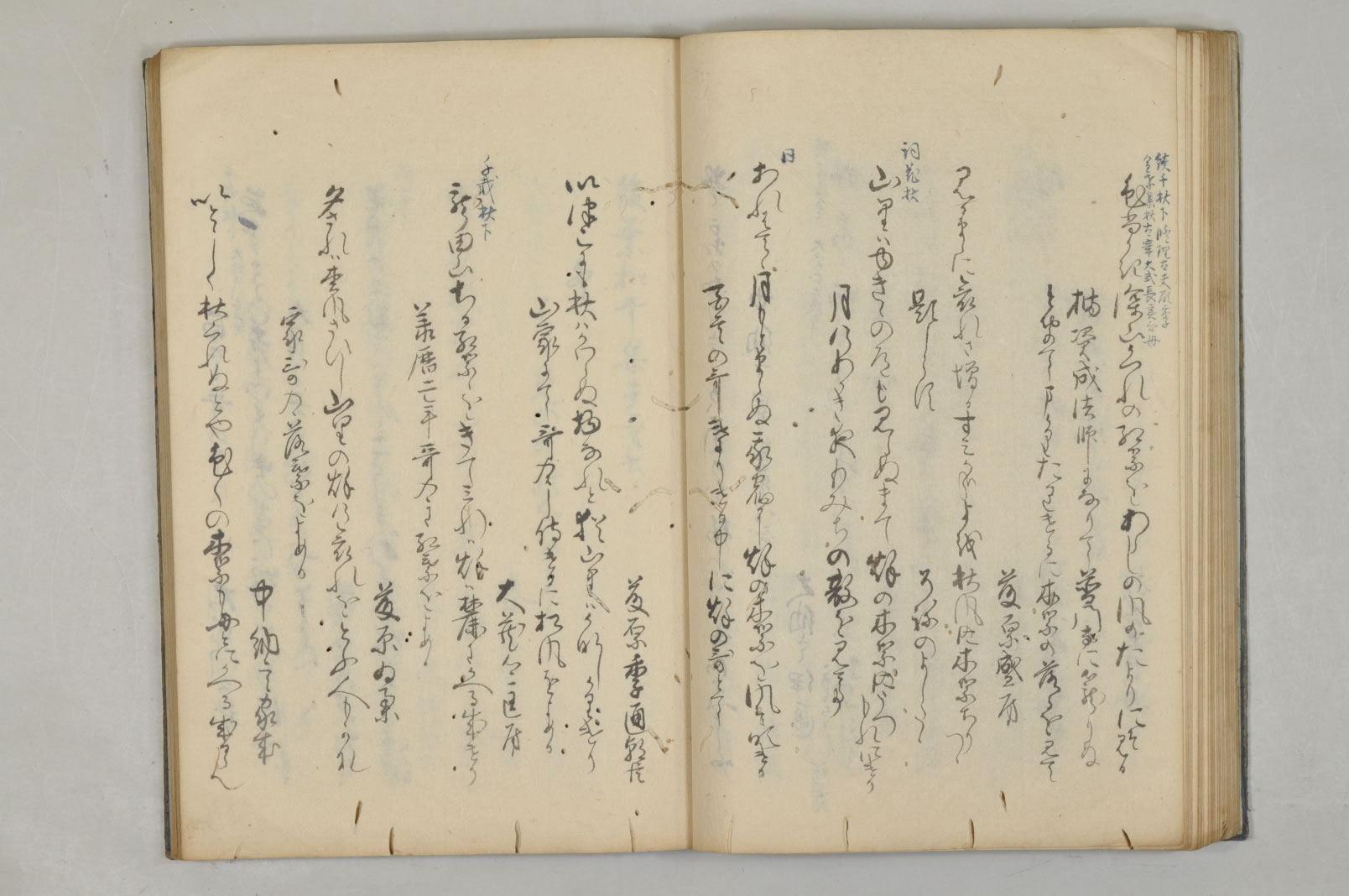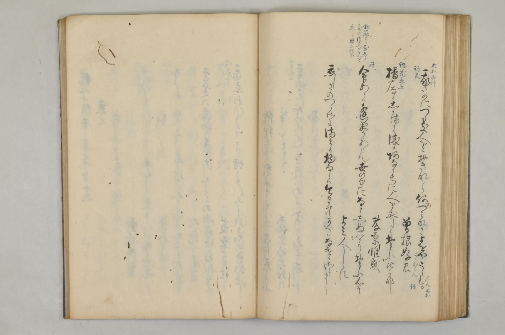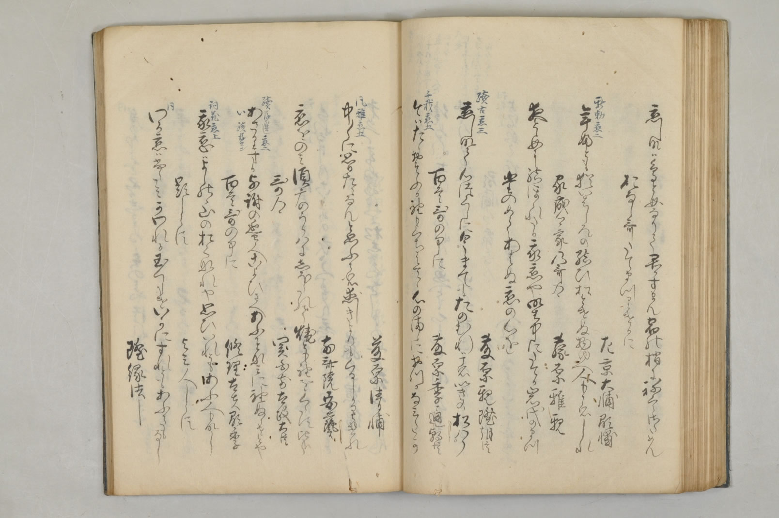 - 闕本巻19―巻20を欠く扉右上識語:「〔以下藍字〕蘆庵所持後葉集/嘉永七寅八月写畢紀直方」藍字書入あり
