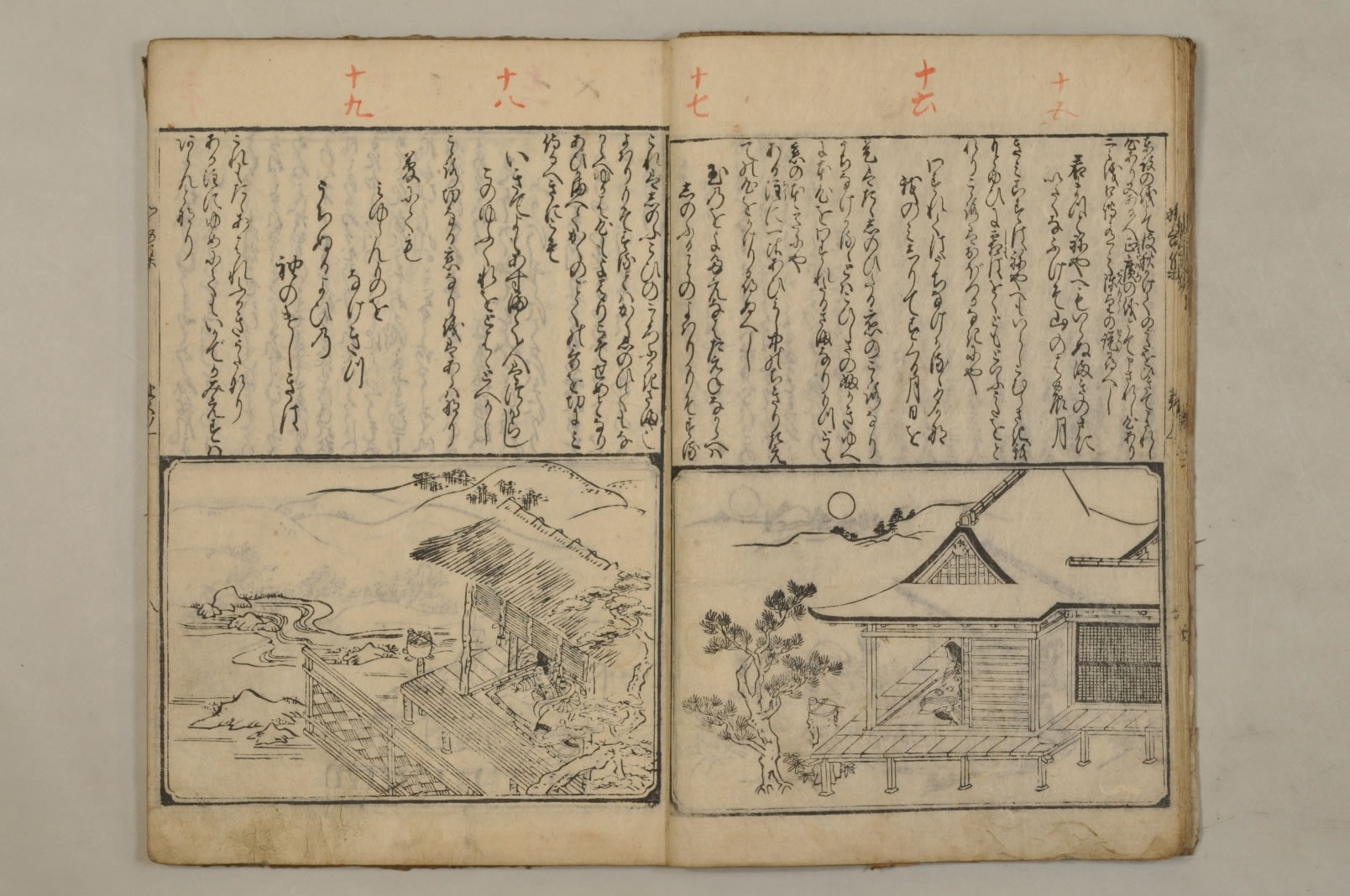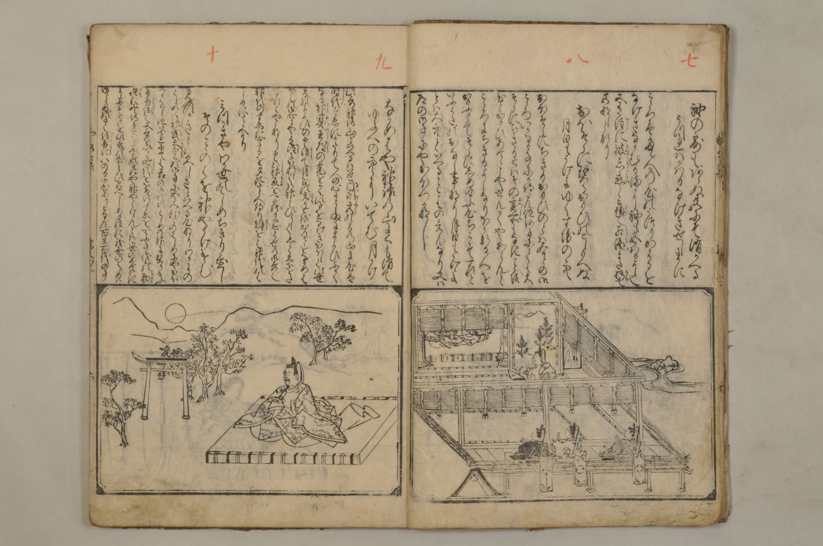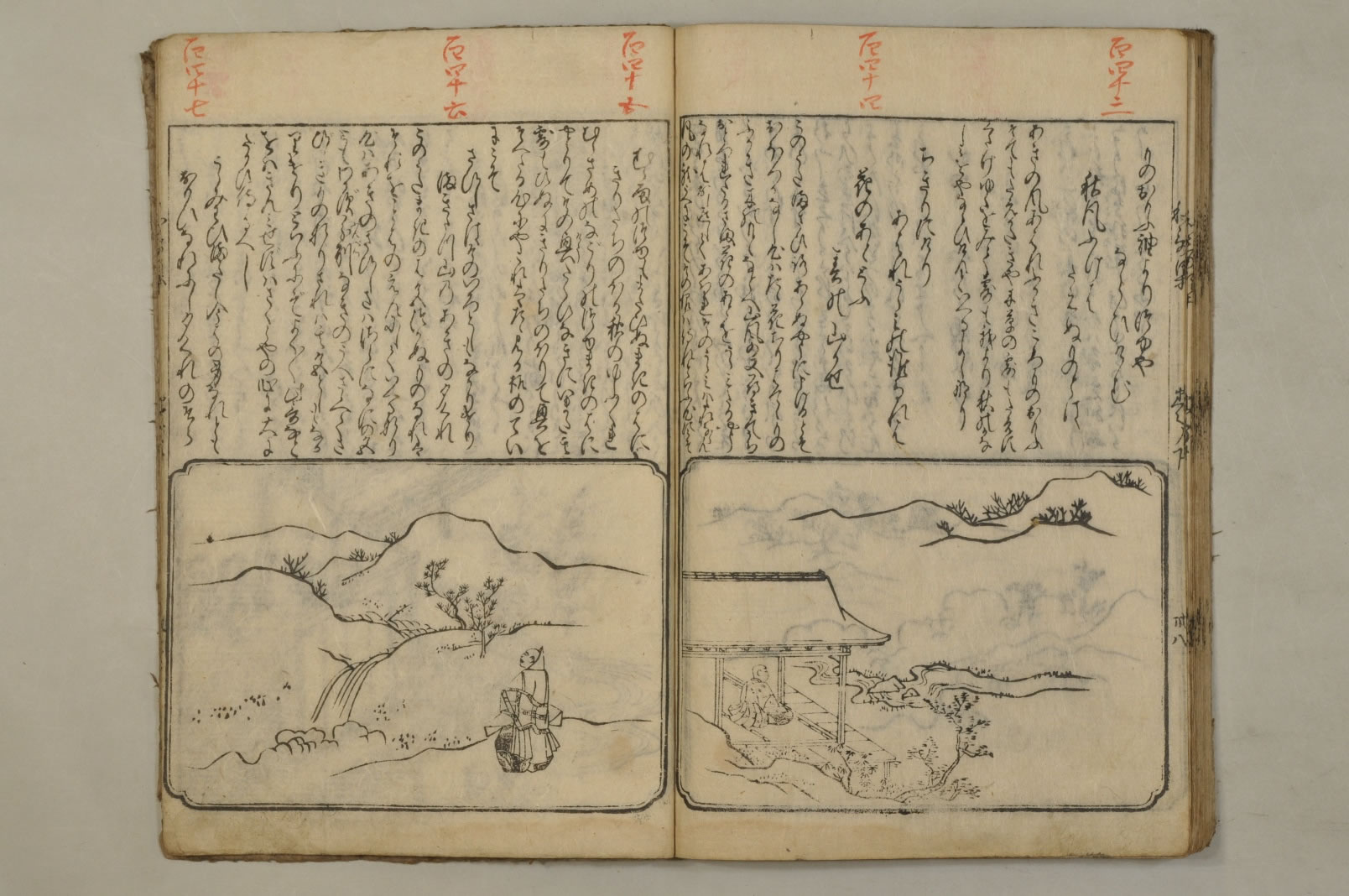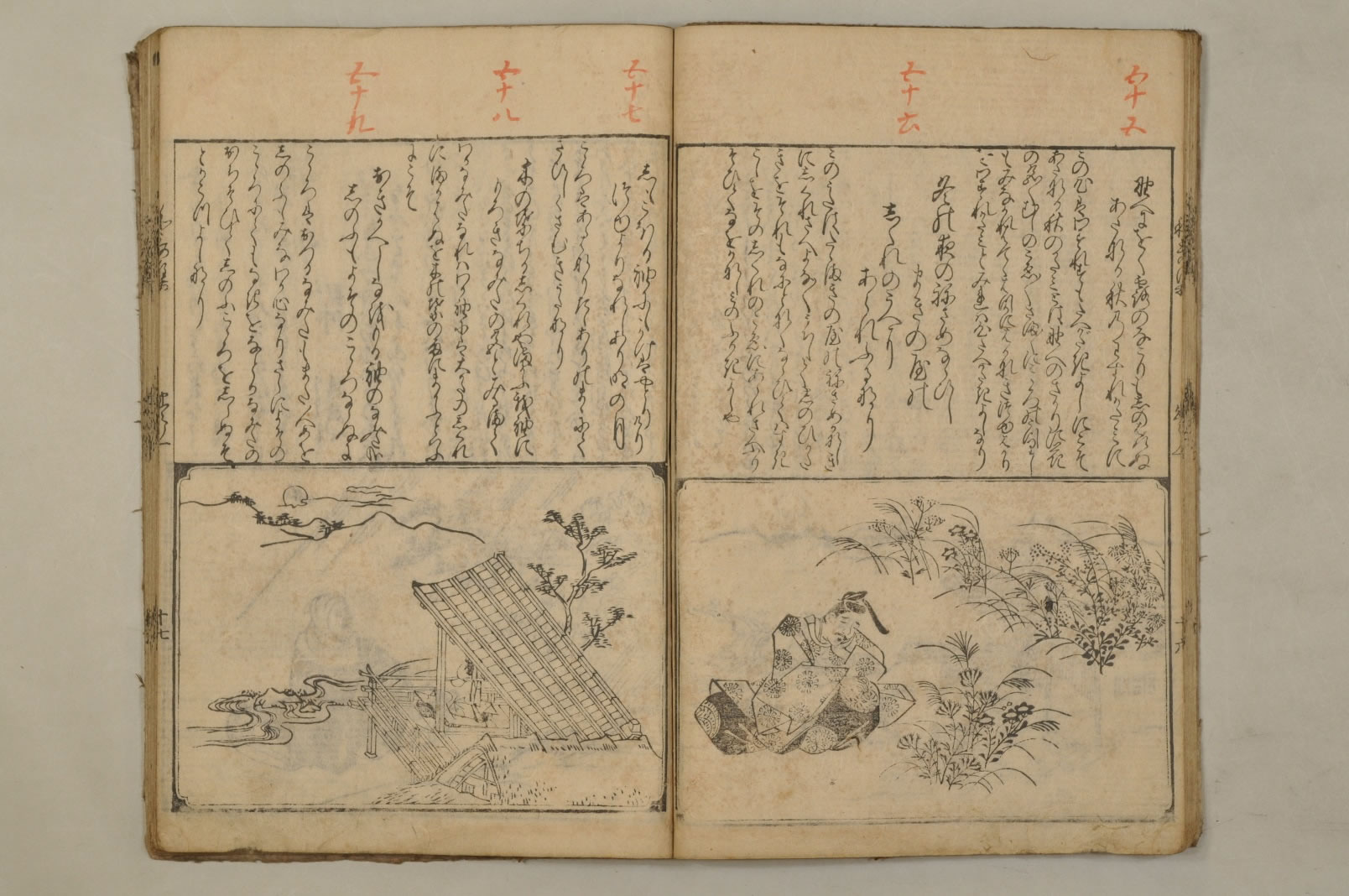 - 絵入本刻奥書:「右一冊はある人文明第十六の天のころほひ予に/懇望し發起し給へりしかも志切にして不淺此和/哥の微旨をたつね給ひ辞しかたく侍り粗これを/註し愚意をのふるなりゆめゆめ外見あるへからす/宗祇在判/文明十六年霜月中旬」版心:「和歌集」刊記:「絵師菱河師宣筆/江府書林日本橋南壹町目須原屋茂兵衛梓」